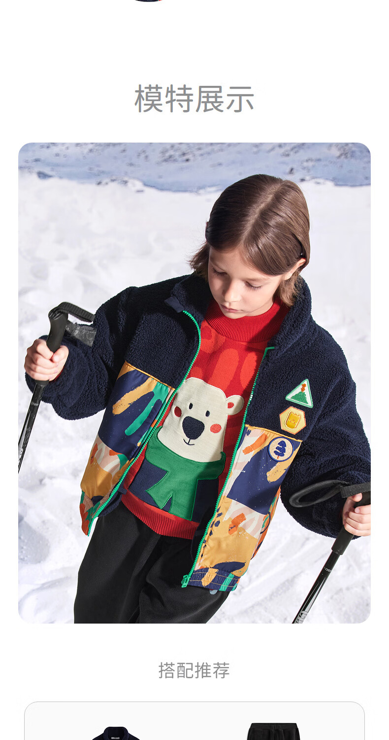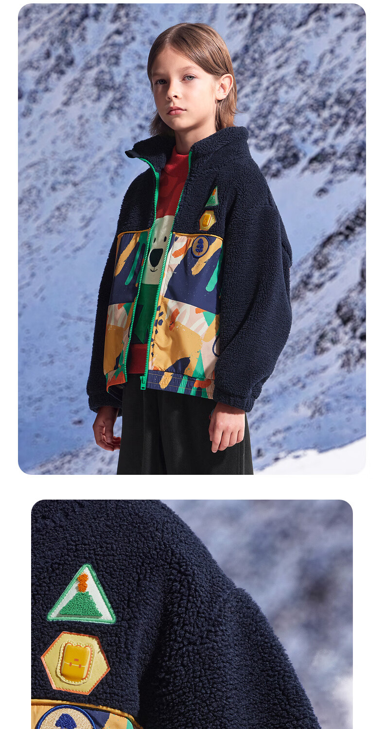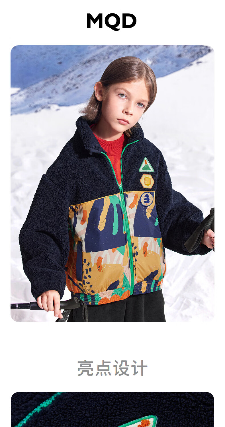 马骑顿(MQD)童装男童满版学院风冬新款内里摇粒绒立领外套 藏青 130