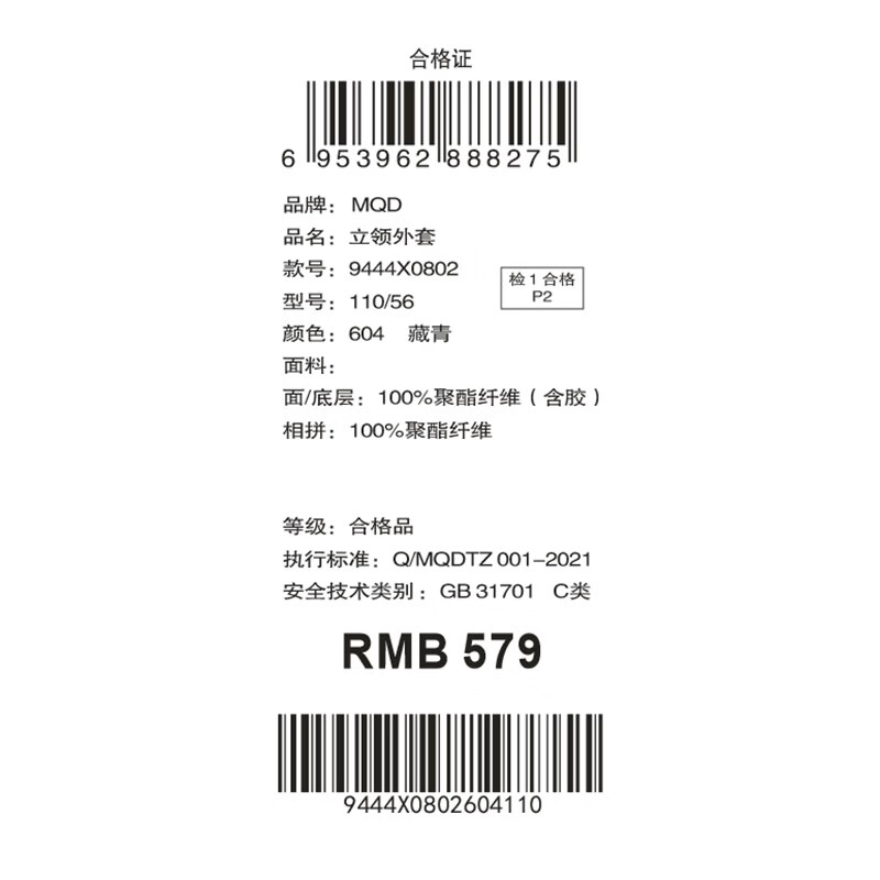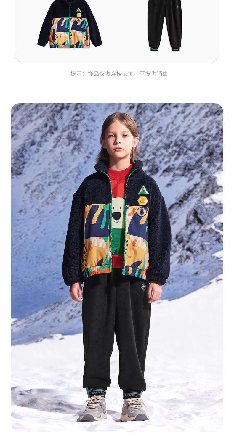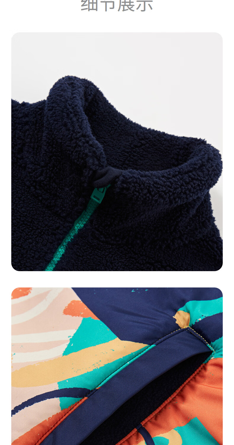 马骑顿(MQD)童装男童满版学院风冬新款内里摇粒绒立领外套 藏青 130