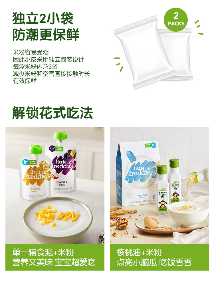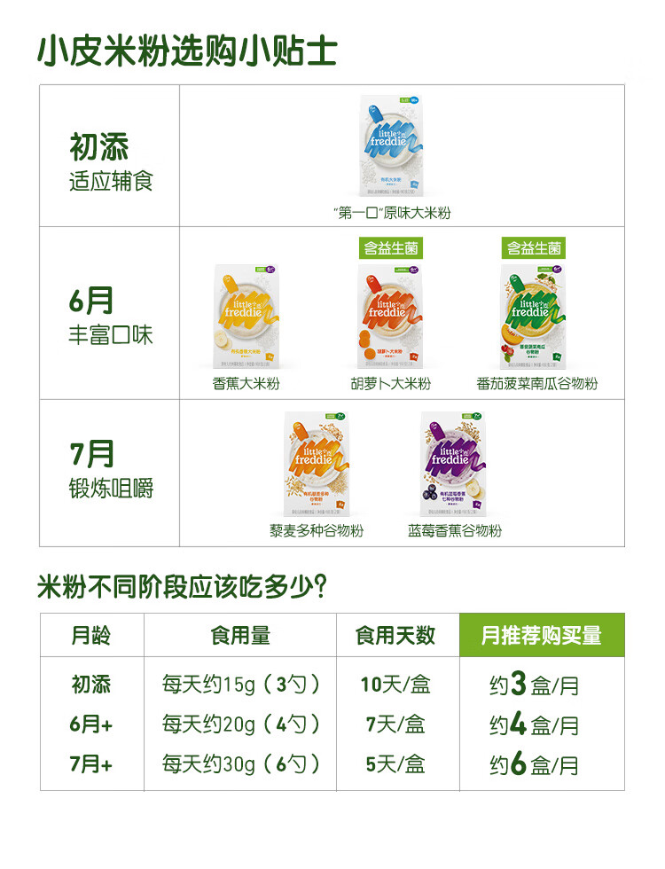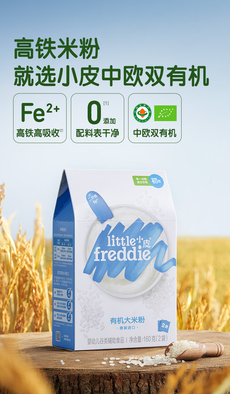 小皮(Little Freddie)高铁米粉婴儿辅食4-12个月以上宝宝米粉辅食混合口味有机米糊 【临期清仓】高铁原味大米粉