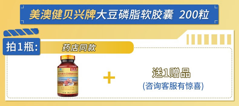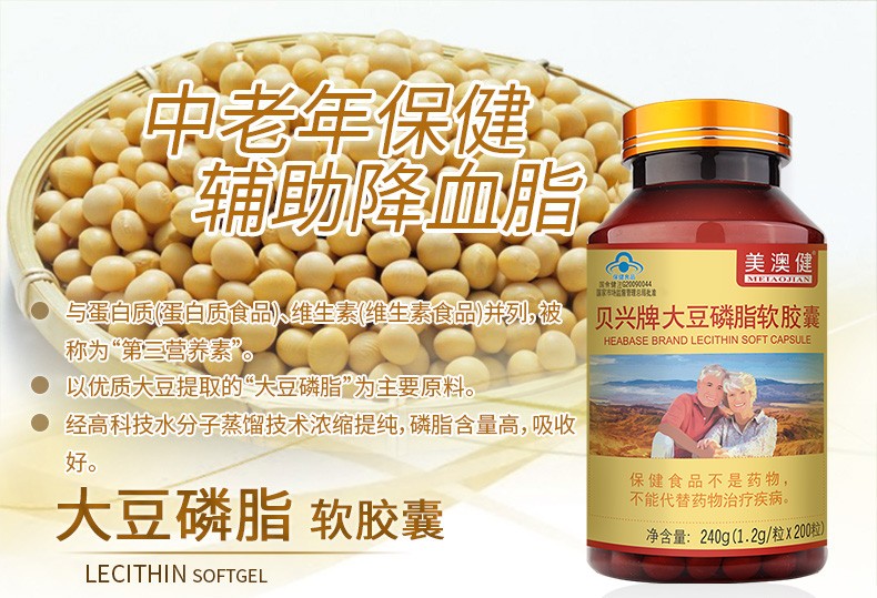 美澳健(MEIAOJIAN)拍1发2大豆磷脂200粒 中老年人辅助降血脂 可搭配鱼油降血压片 降血脂套餐:大豆磷脂 200粒*1瓶 +鱼油200粒
