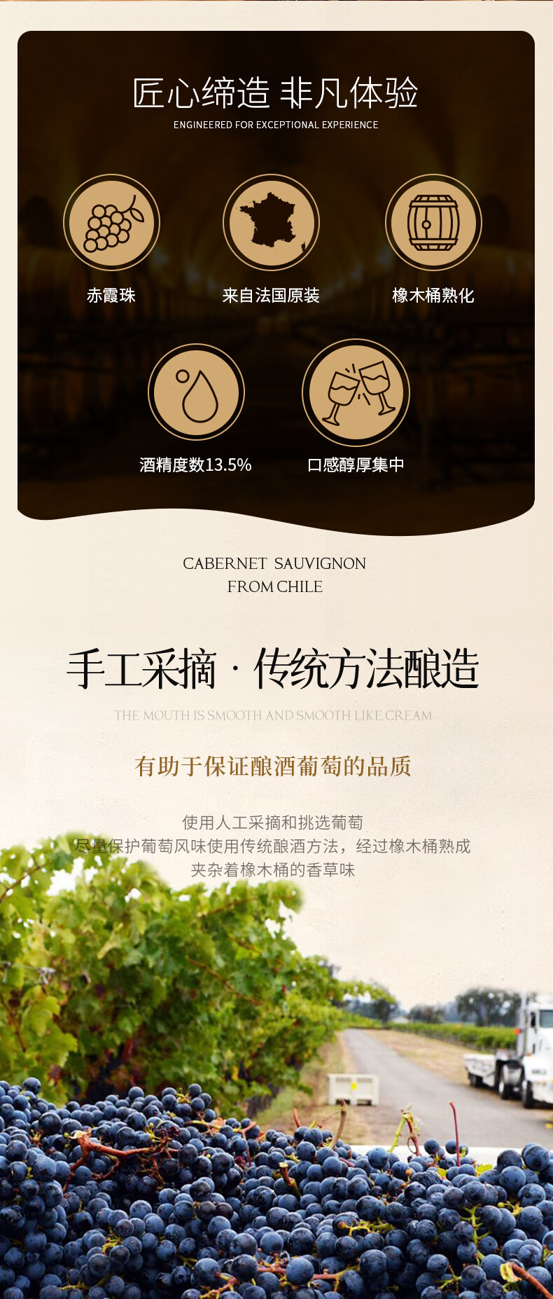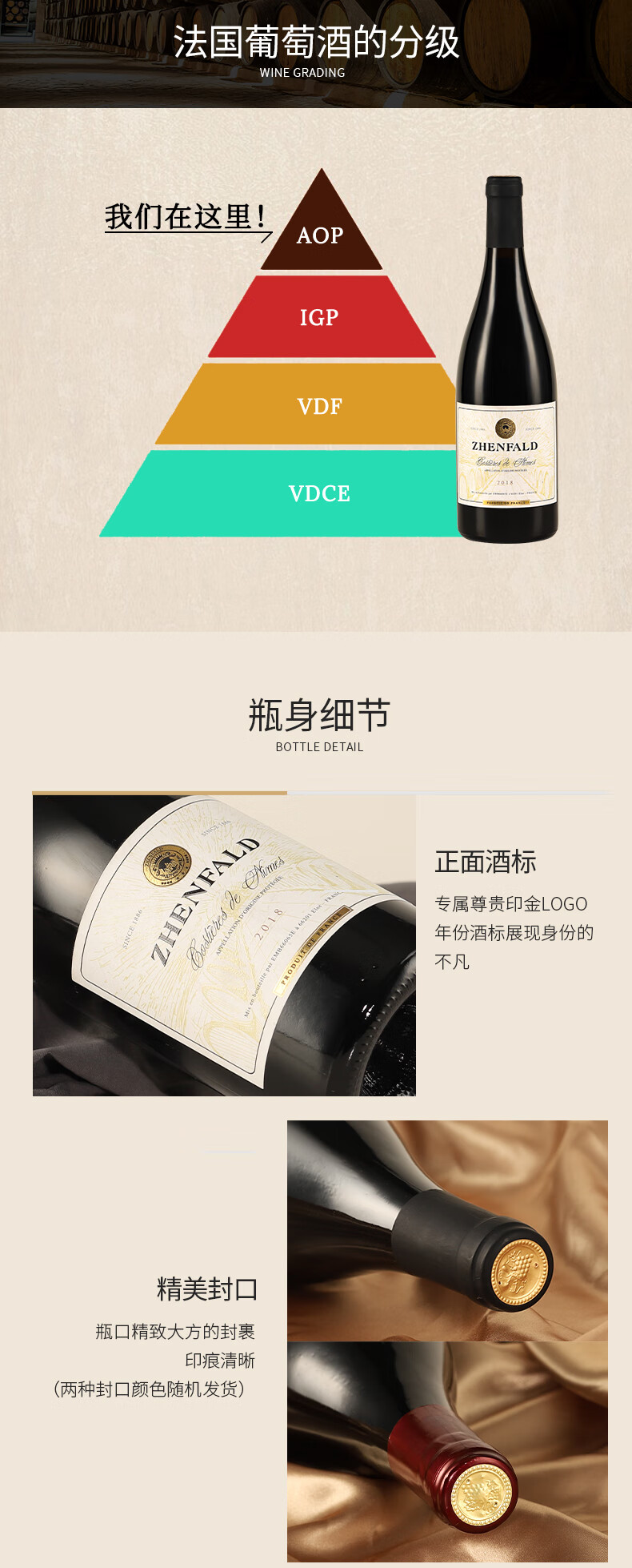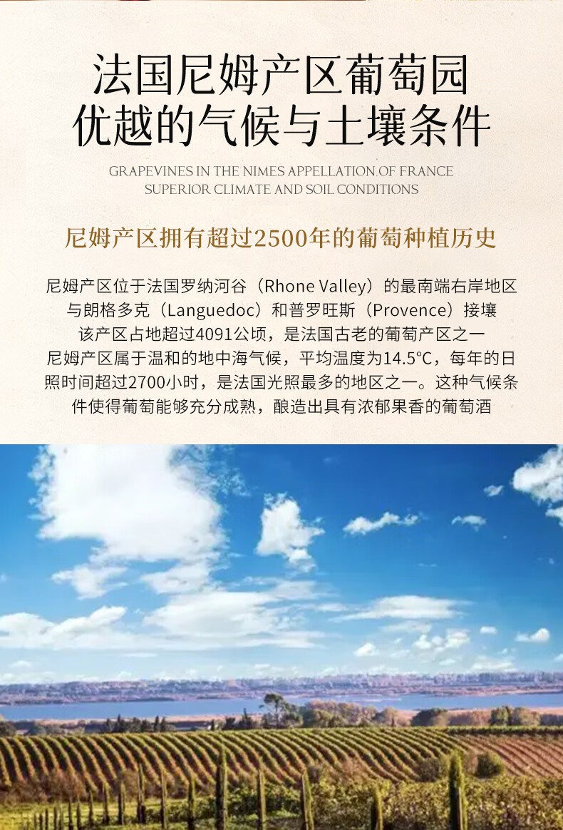 禛富法国尼姆赤霞珠原瓶进口红酒AOP级干红葡萄酒红酒13.5度750ml 整箱