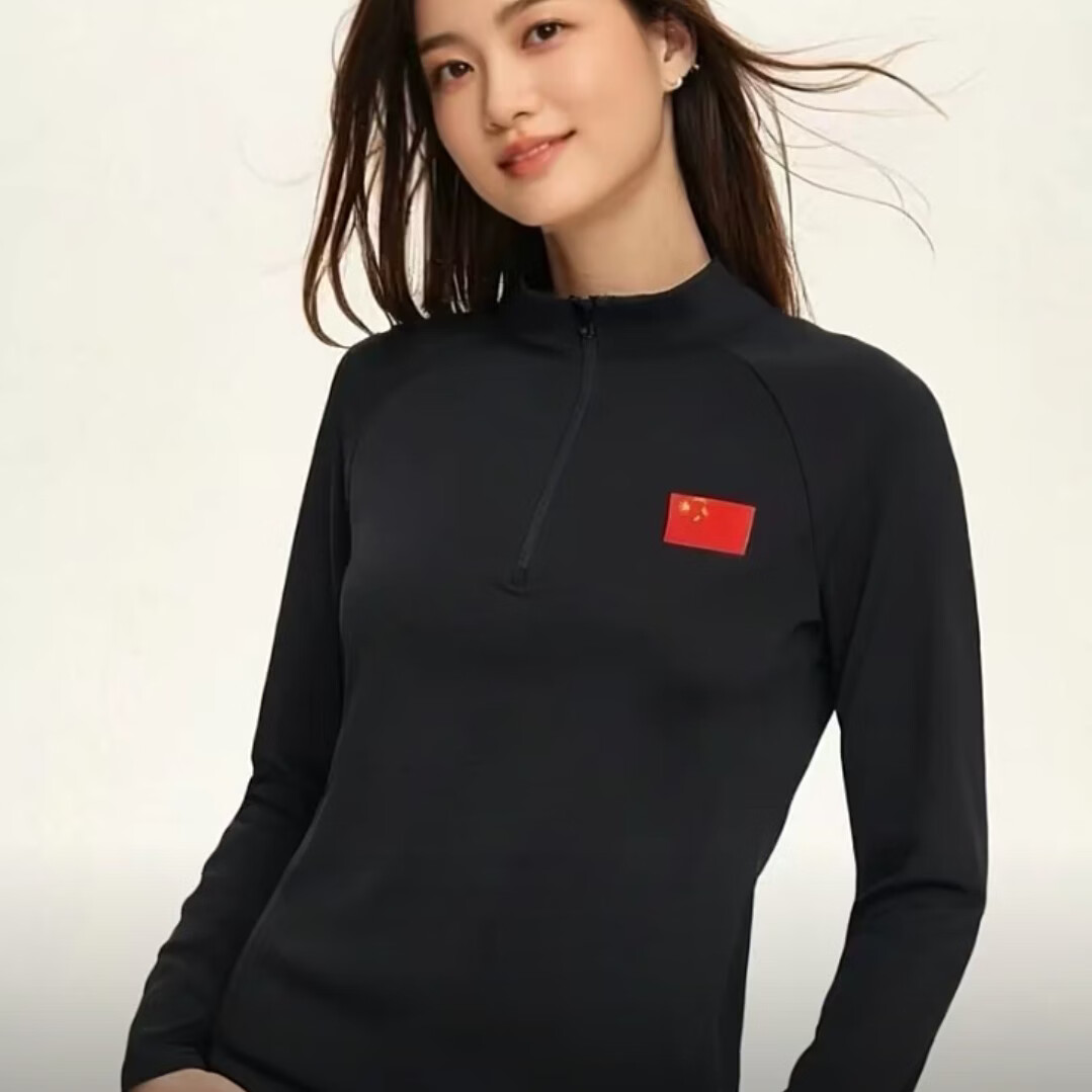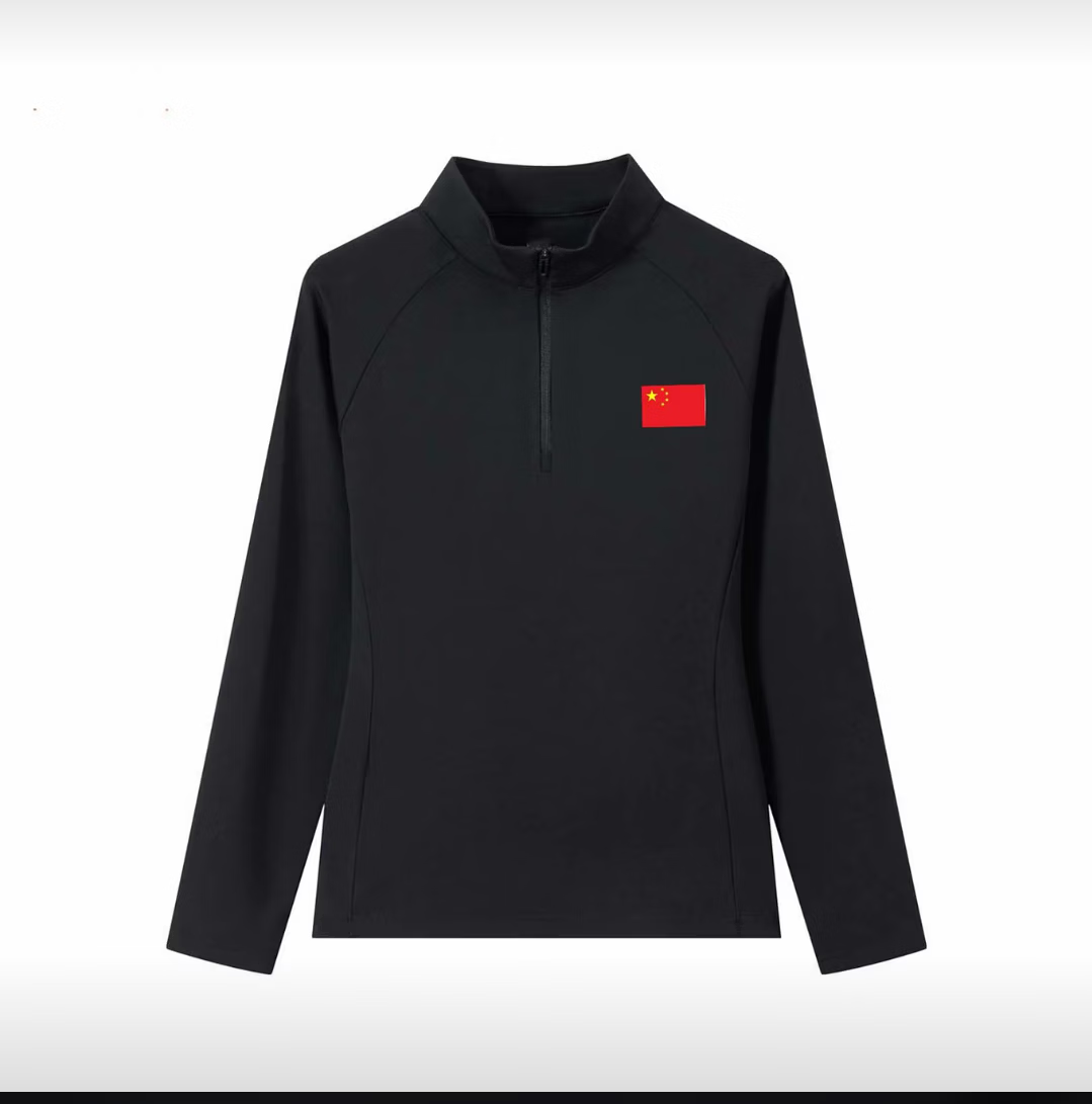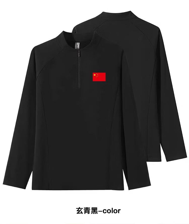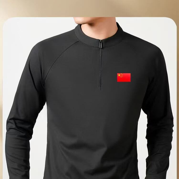 国家队国旗立领磨绒长袖男女运动卫衣时尚打底户外休闲训练T恤 黑色 XL 男款 145-165斤