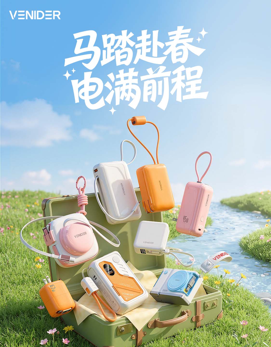 VENIDER【2026年新款丨云朵系列随行充】自带伸缩线可上飞机高铁最新国家3c认证10000毫安闪充折叠插脚 【自带伸缩线+挂绳丨月魄蓝】 【拍立得外观丨自带插头】