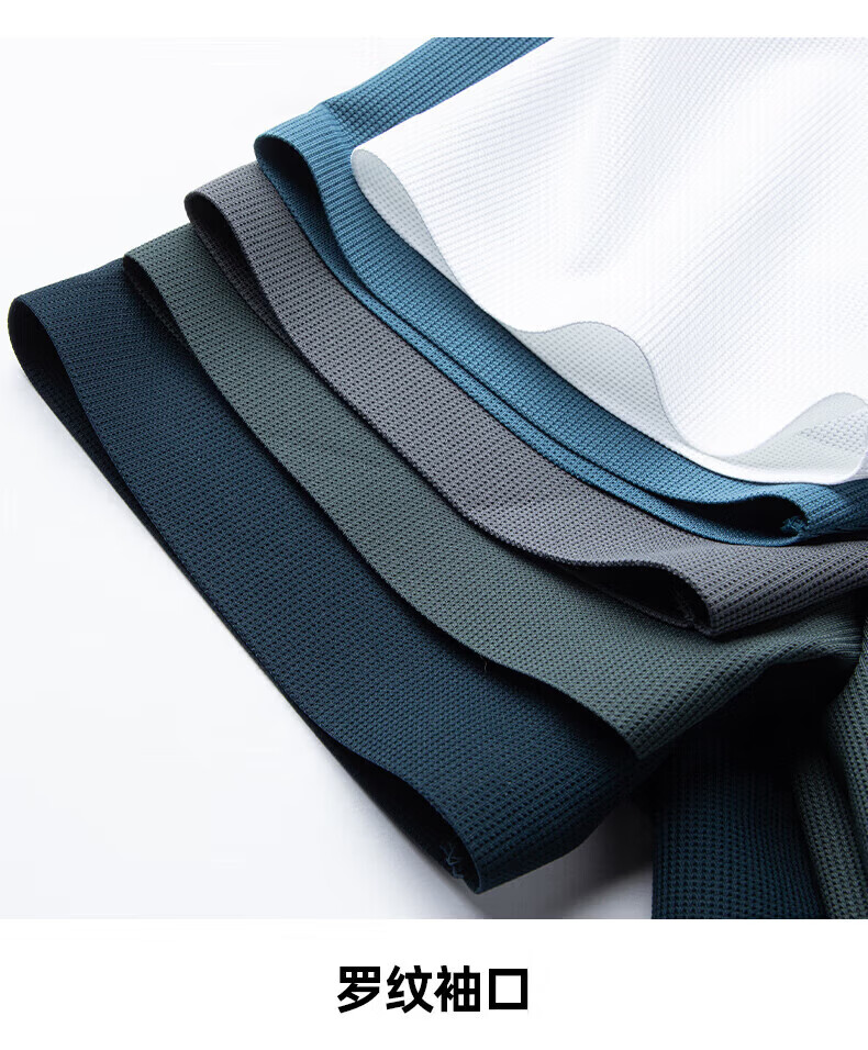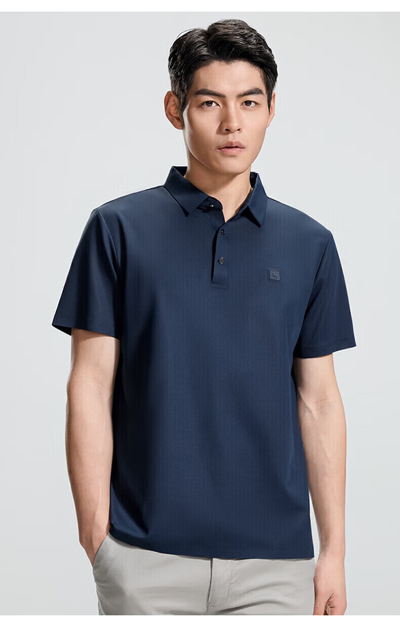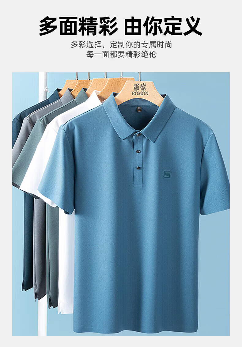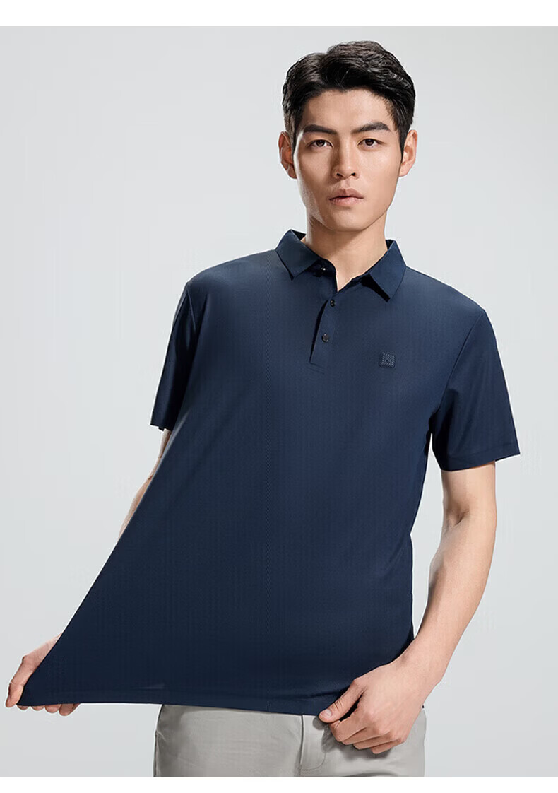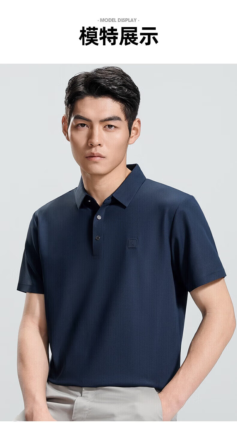 罗蒙(ROMON)华夫格高弹短袖t恤男冰丝弹力T恤中青年男士纯色翻领polo 深蓝 XL (180) (建议135-155斤)