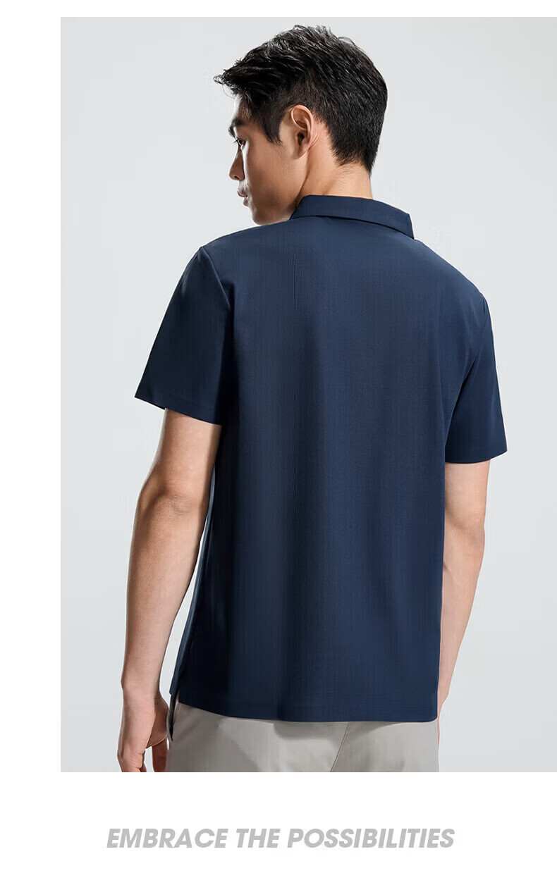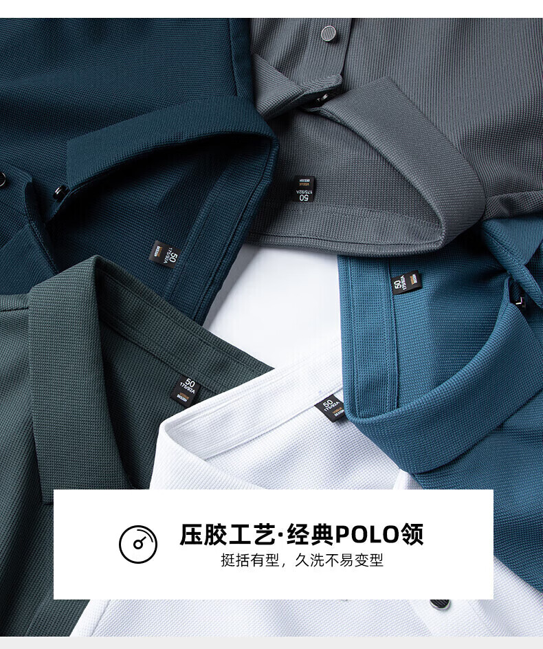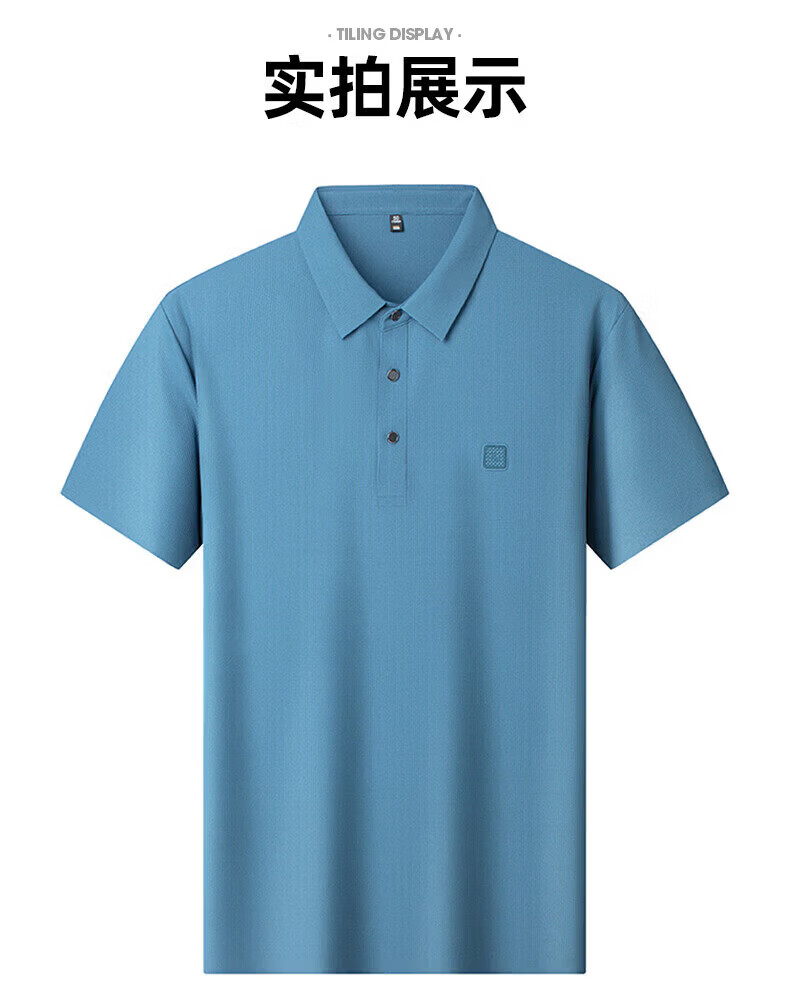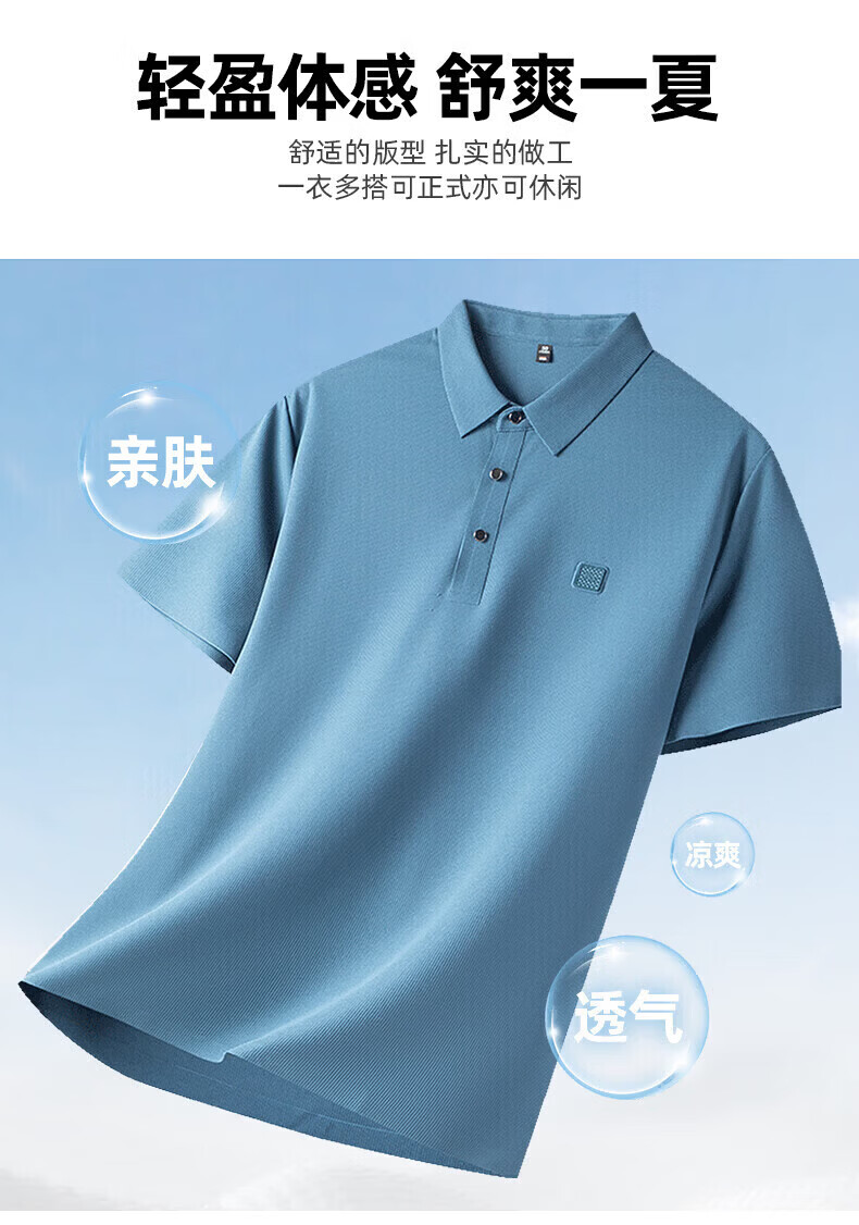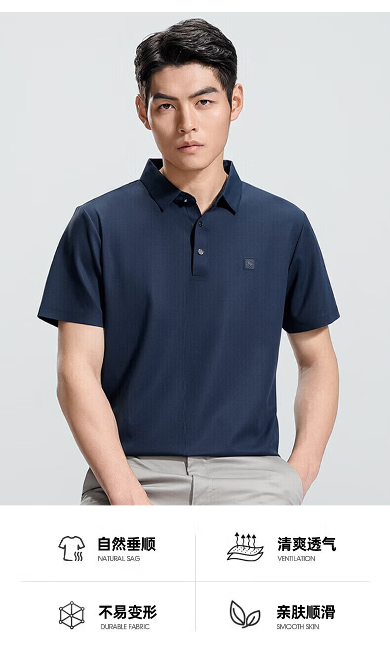 罗蒙(ROMON)华夫格高弹短袖t恤男冰丝弹力T恤中青年男士纯色翻领polo 深蓝 XL (180) (建议135-155斤)