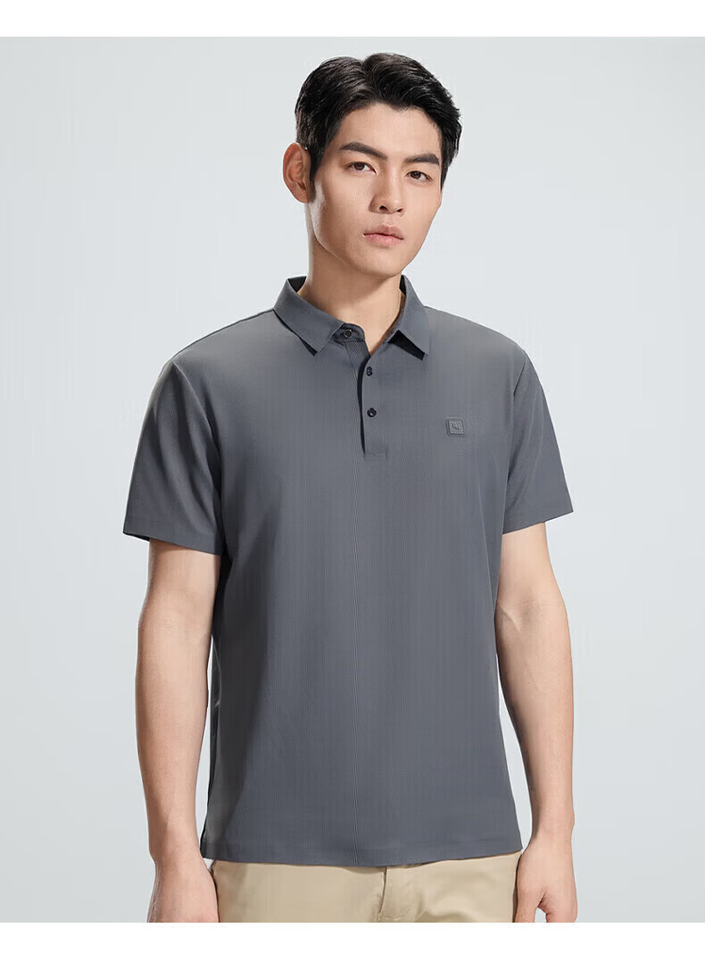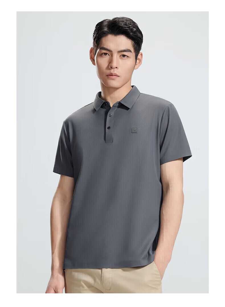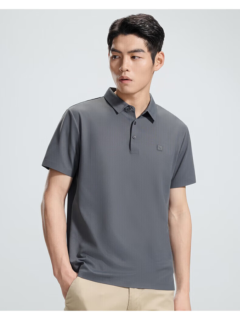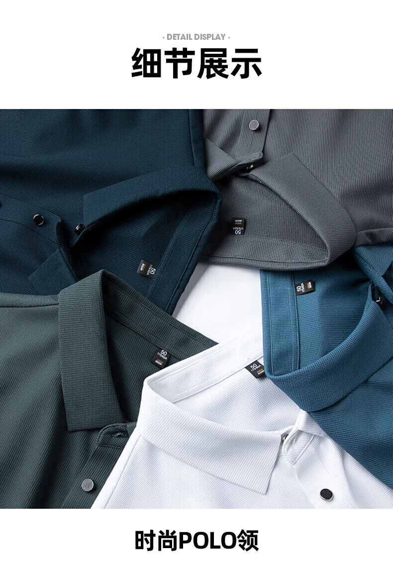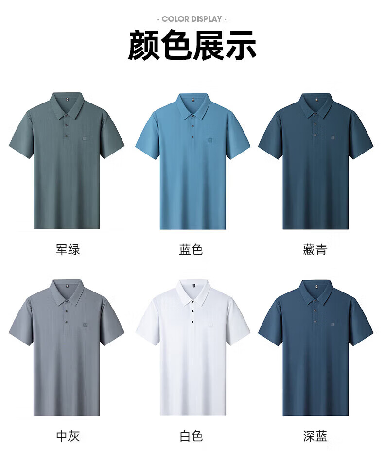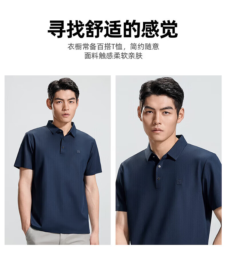 罗蒙(ROMON)华夫格高弹短袖t恤男冰丝弹力T恤中青年男士纯色翻领polo 深蓝 XL (180) (建议135-155斤)