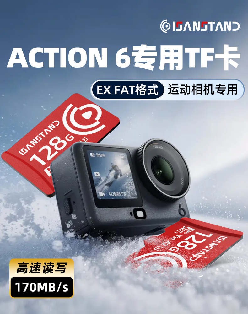 ISANSTAN TF卡适用大疆Action6内存卡运动相机action4/5存储卡A2性能4k录制V30 【EX1TB】Action运动相机专用卡