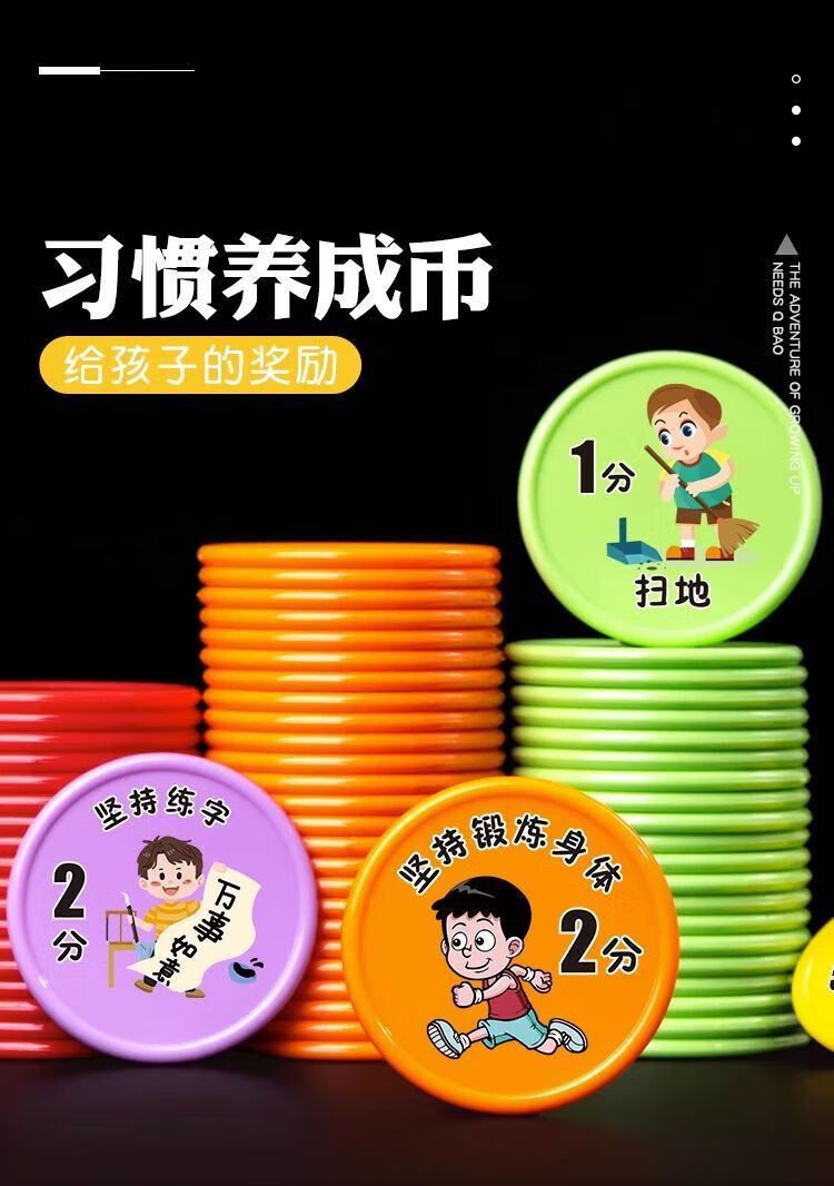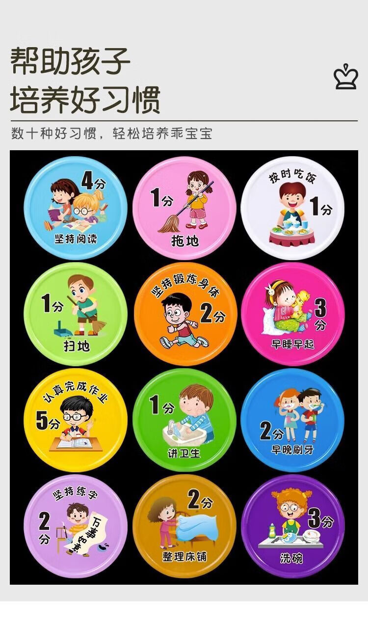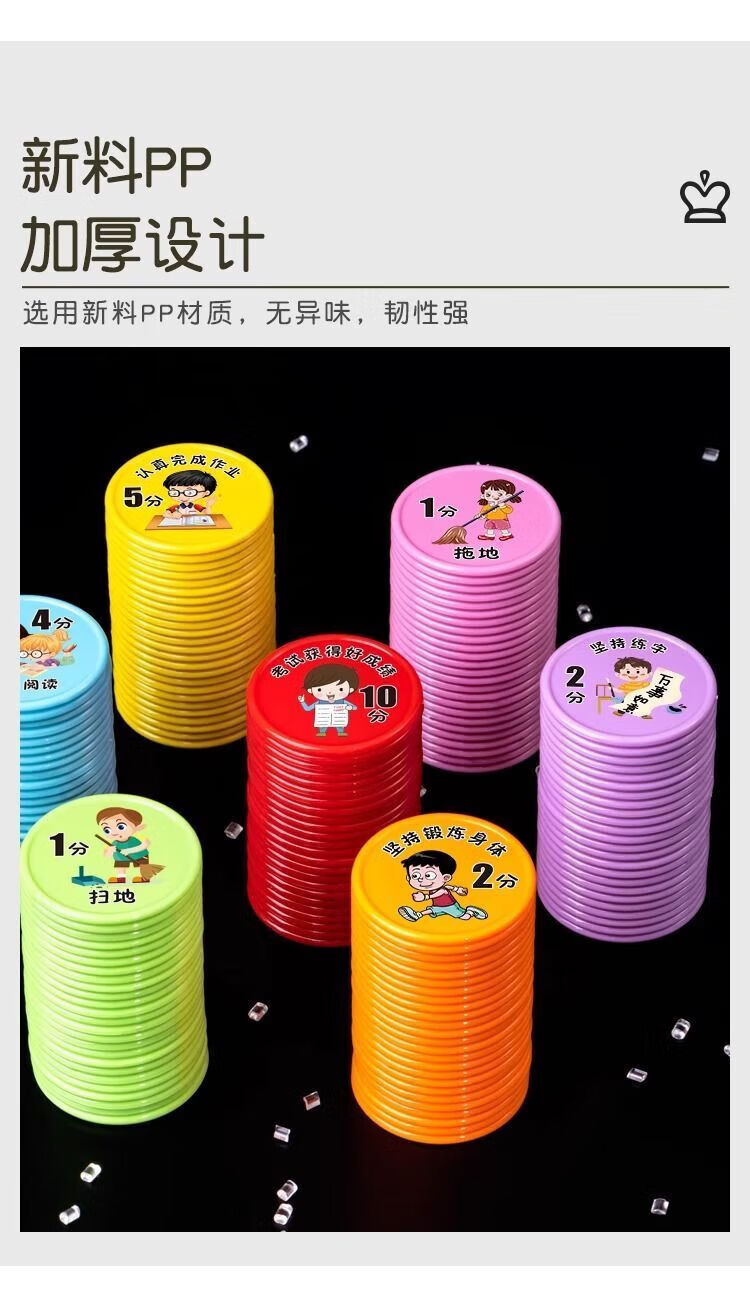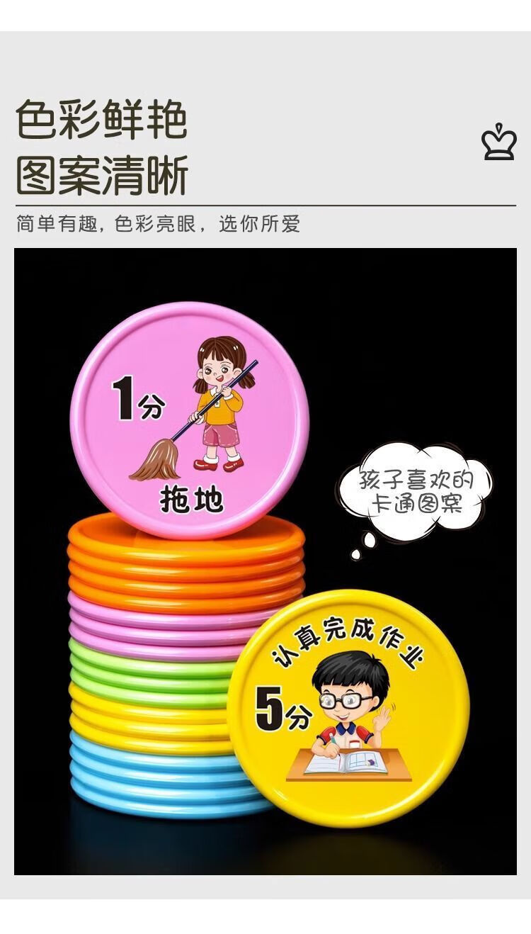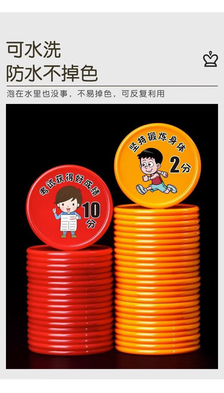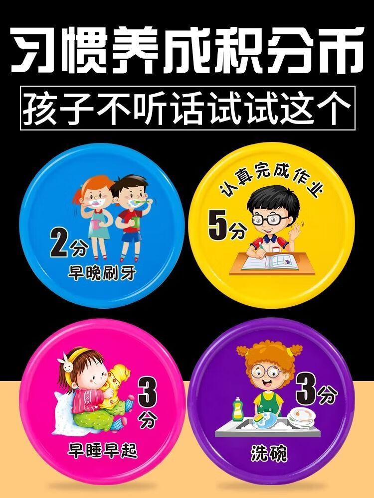 【精选百货】小学生好习惯养成积分币奖励小孩子兑换币儿童学习积 混色-未按时完成-1包(10个)
