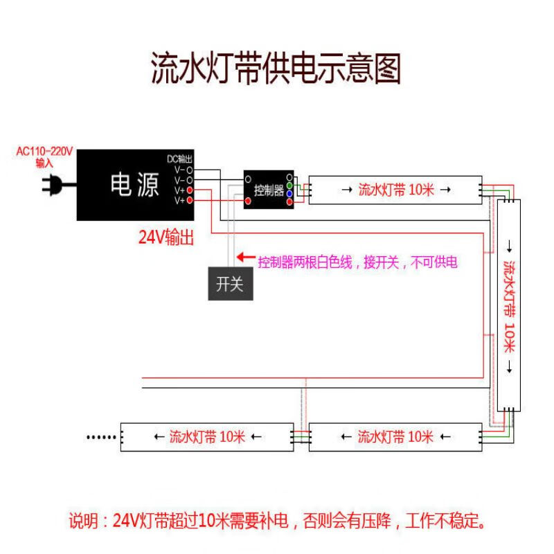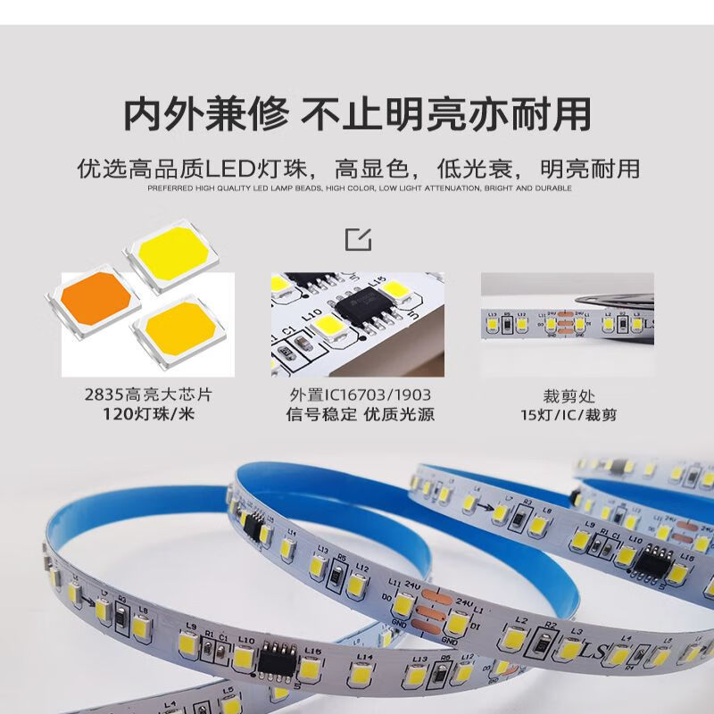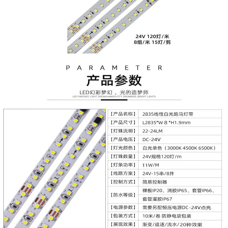 LED追光流水灯带家装线性灯回流跑马灯智能流水线形灯条嵌入式 24V流水灯带【蓝光】 19米灯带+电源+控制器