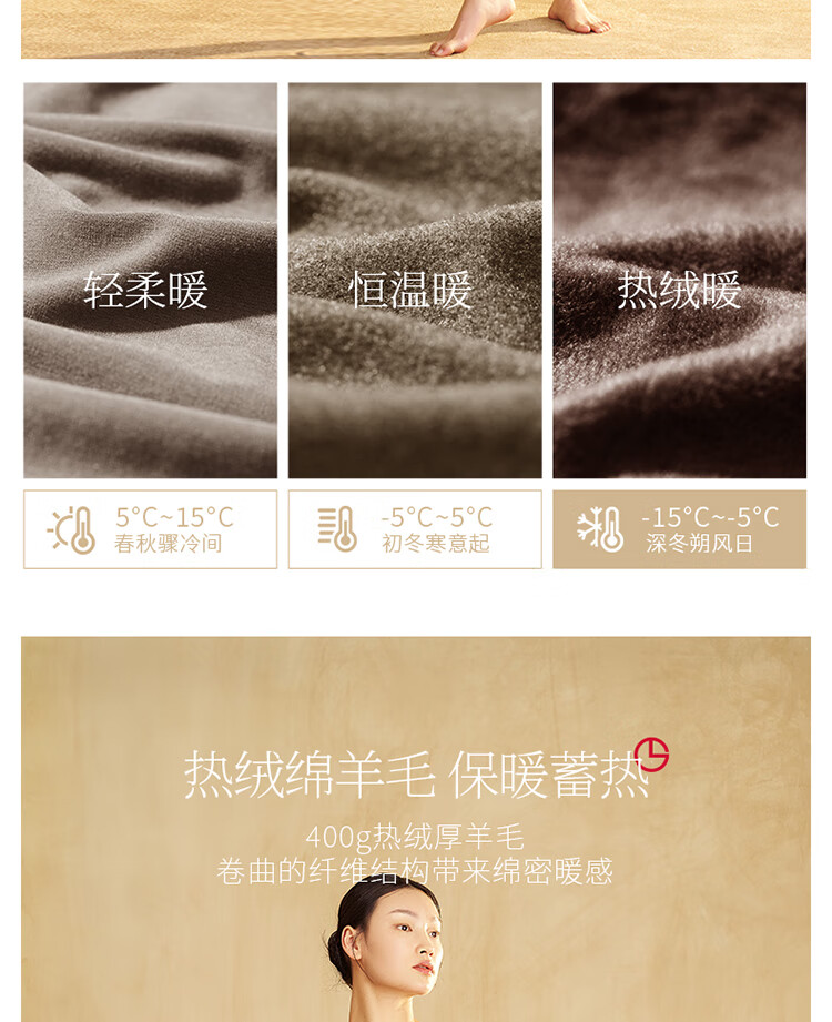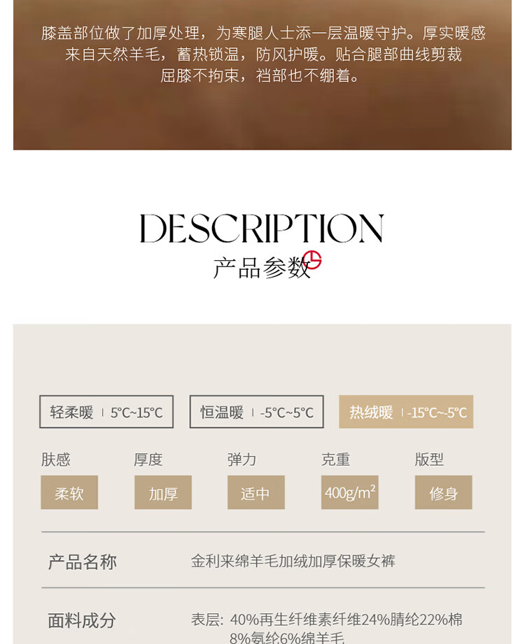 金利来女士保暖裤女羊毛双层护膝秋冬季防风抗寒加绒加厚打底秋裤 松露 2XL