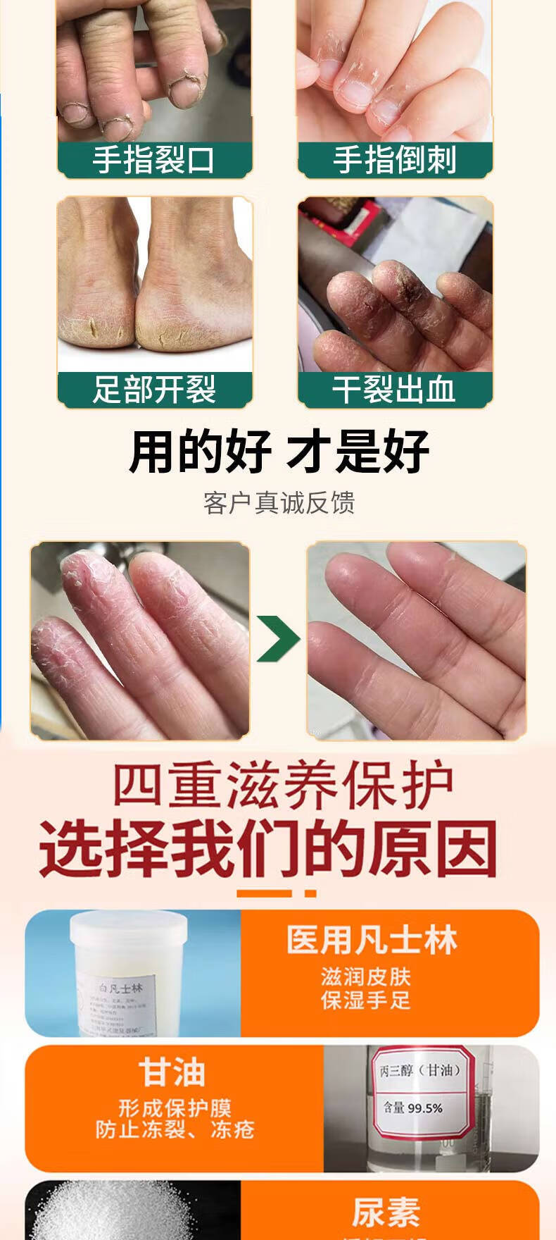 御神堂手裂愈合膏手足皮肤干燥皲裂严重度粗糙修复专用防手指开裂口药膏 特效膏【100%断裉】:买3送2