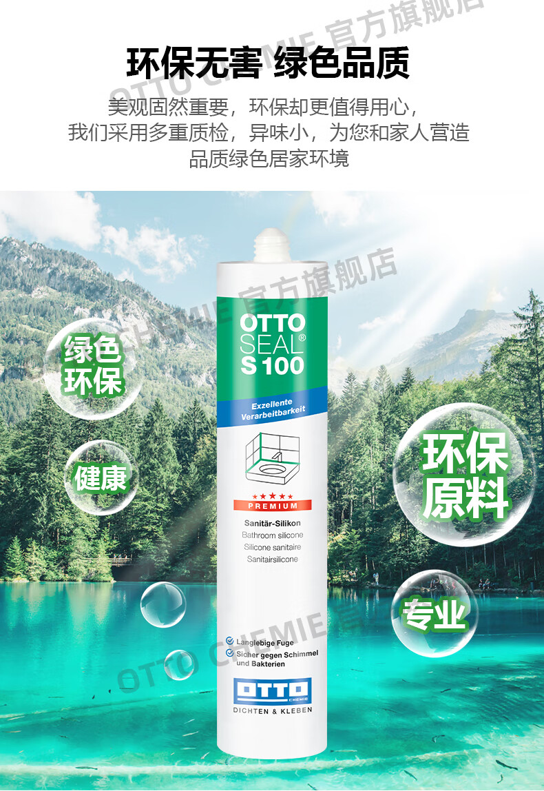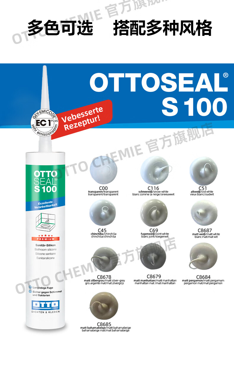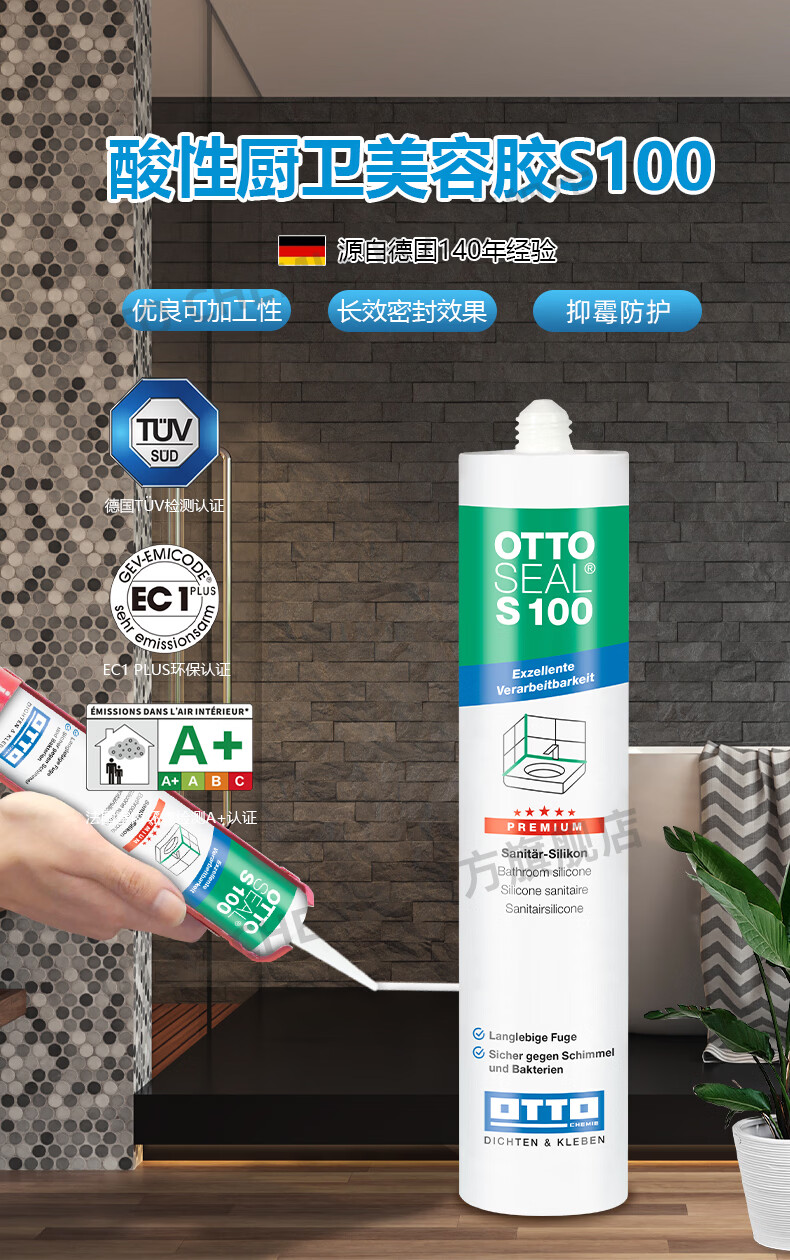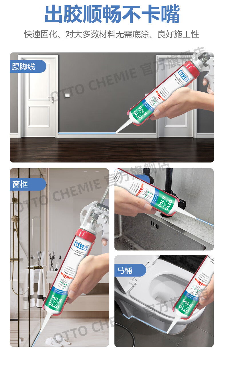 OTTO CHEMIE德国进口otto奥托S100酸性玻璃胶美容胶厨卫防水防霉用哑光收边胶 S100酸性厨卫美容胶-C00(透明)