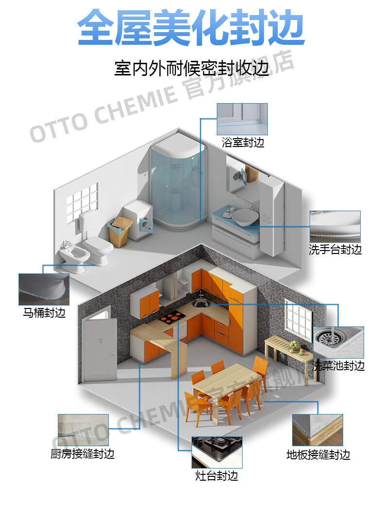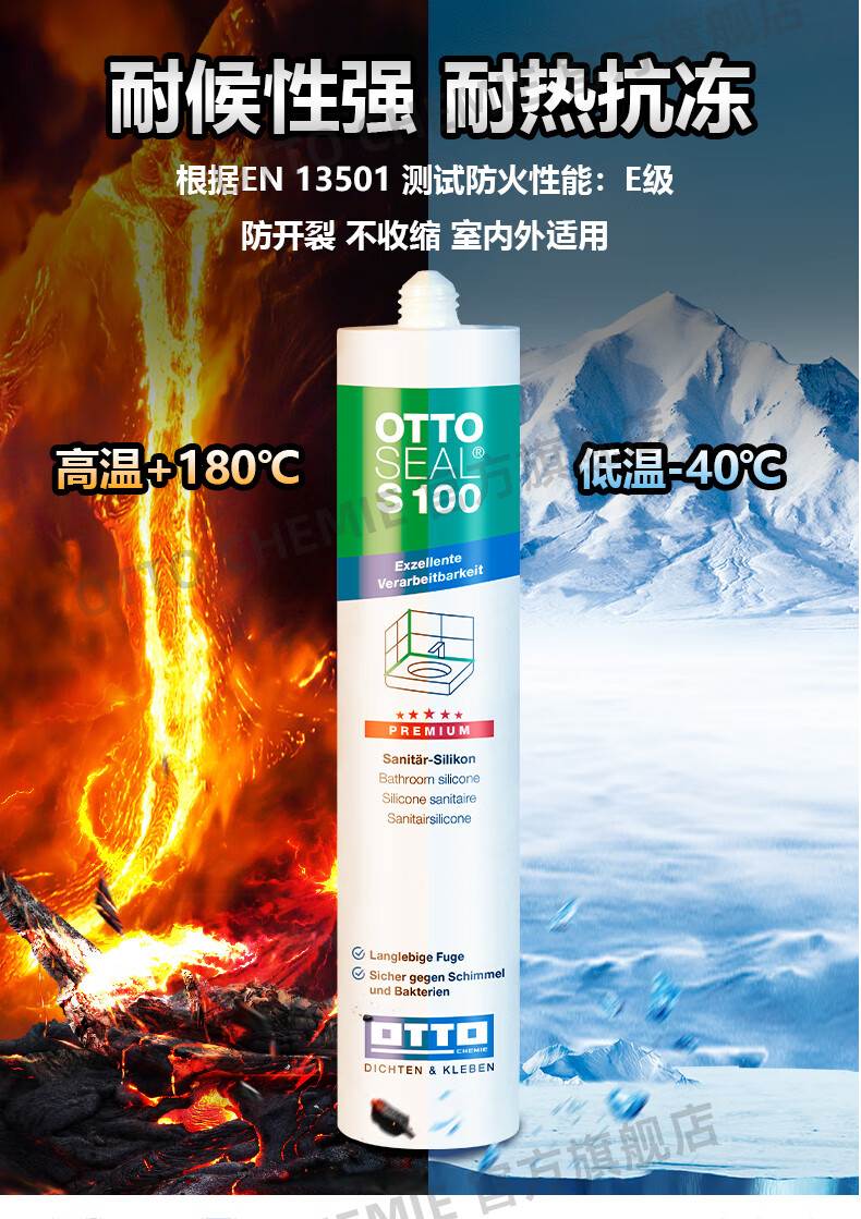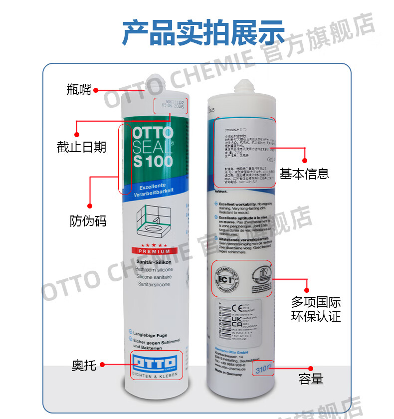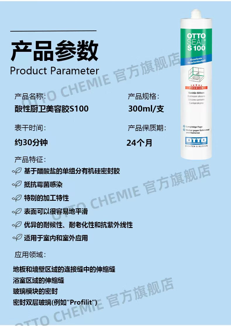 OTTO CHEMIE德国进口otto奥托S100酸性玻璃胶美容胶厨卫防水防霉用哑光收边胶 S100酸性厨卫美容胶-C00(透明)