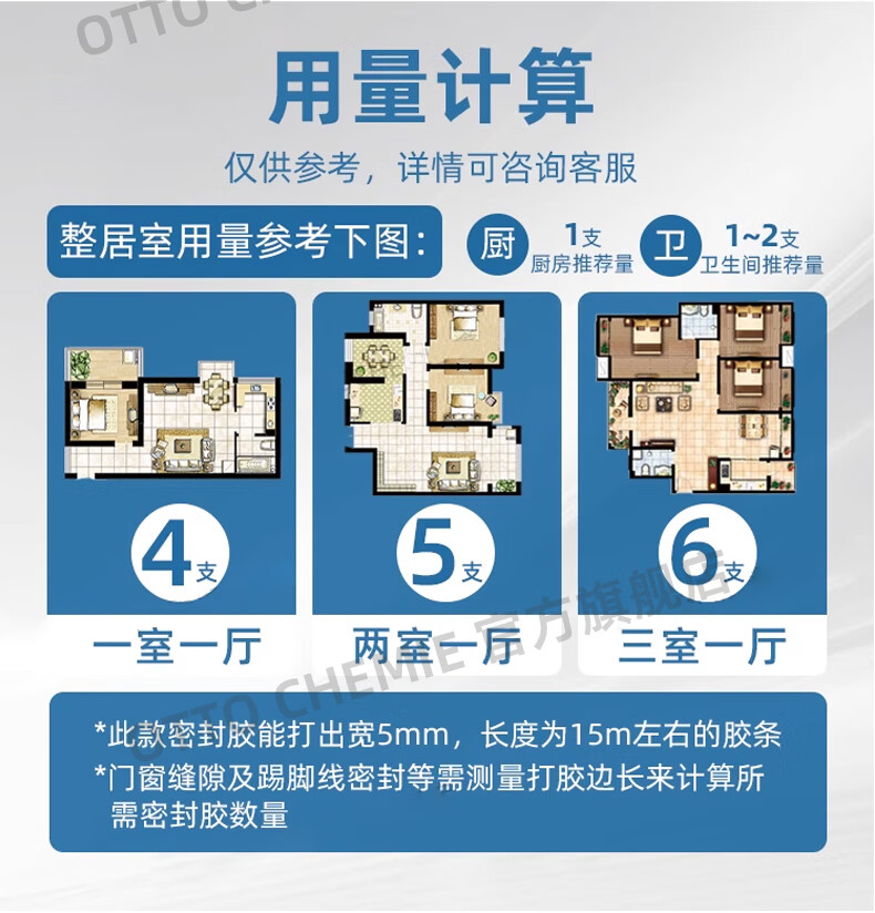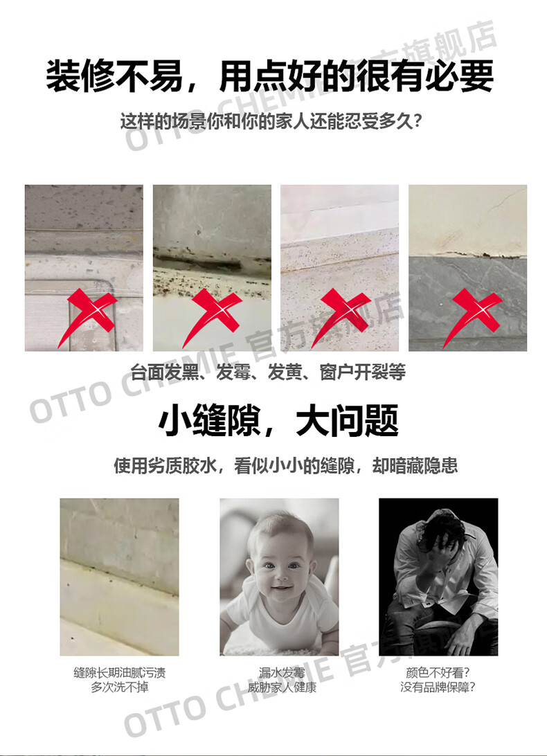 OTTO CHEMIE德国进口otto奥托S125美容胶防水防霉厨卫玻璃胶哑光收边胶密封胶 C8336哑光海茉莉