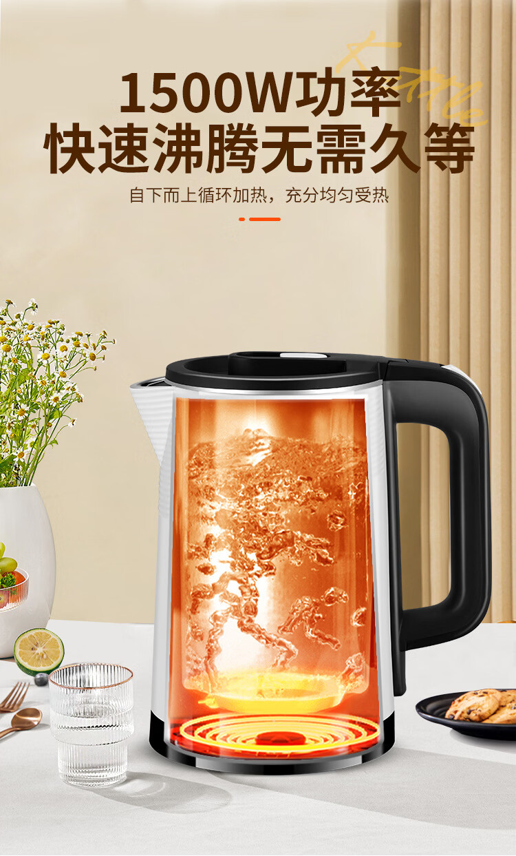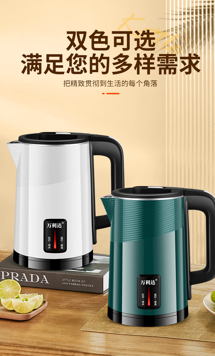 【好物优选】电热水壶保温水壶烧水壶快壶酒店用品礼品 2.3L 防烫【自动断电-烧水款】绿色 定制/代发联系业务