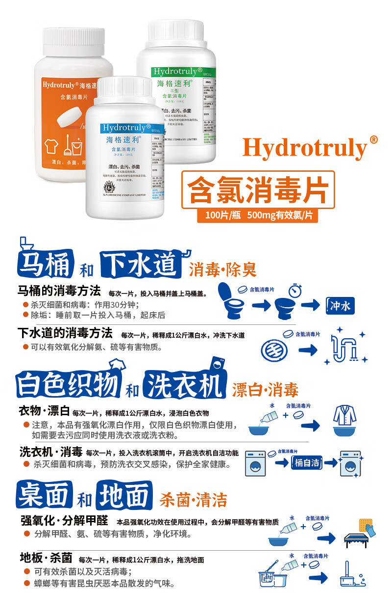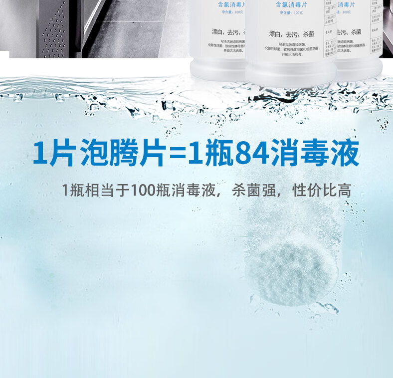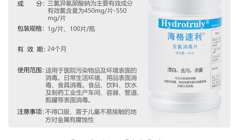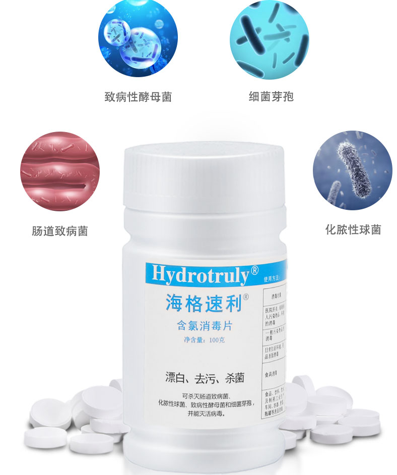 海格速利次氯酸消毒片 漂白杀菌除味医护消毒泡腾片 织物地板桌面器械杀菌 【卫生机构采购】100片/瓶×3瓶