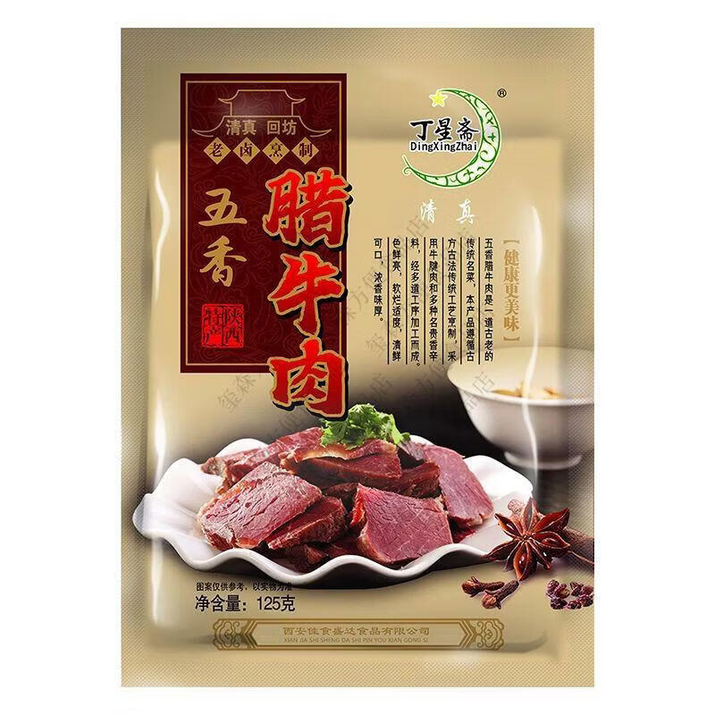 丁星斋陕西西安特产腊牛肉熟食五香牛腱子真空即食 实惠装西安腊牛肉125g*4袋