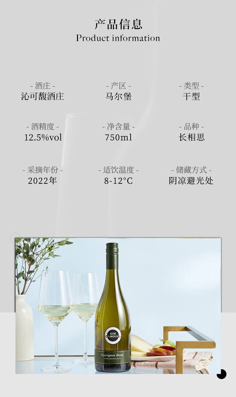 Kim Crawford沁可馥 马尔堡(Marlborough)产区葡萄酒 750ml (原金凯福) 长相思干白葡萄酒750ml
