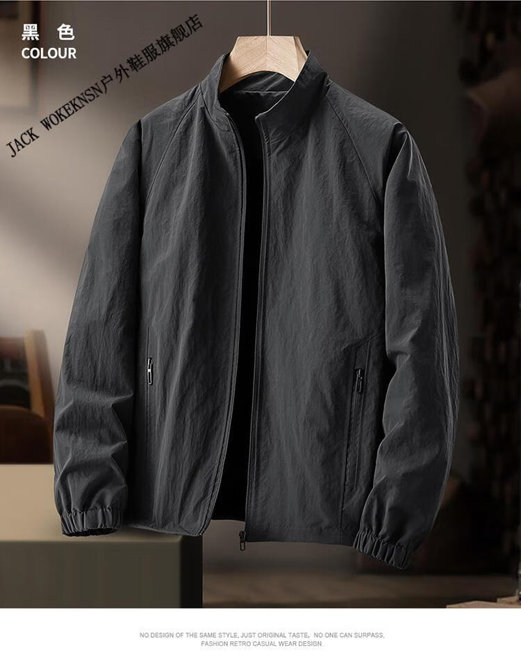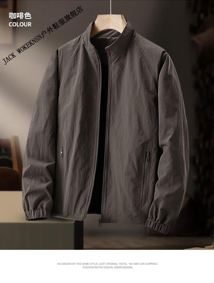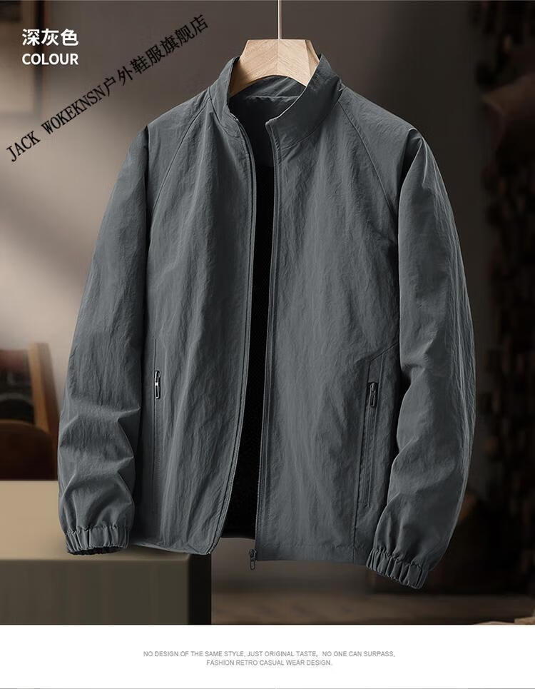 JACK WOKEKNSN狼爪云户外春秋冲锋衣男薄款夹克外套防水大码软壳风衣四季登山服 深灰色 XL 130-145斤