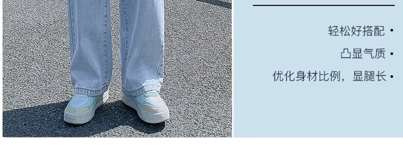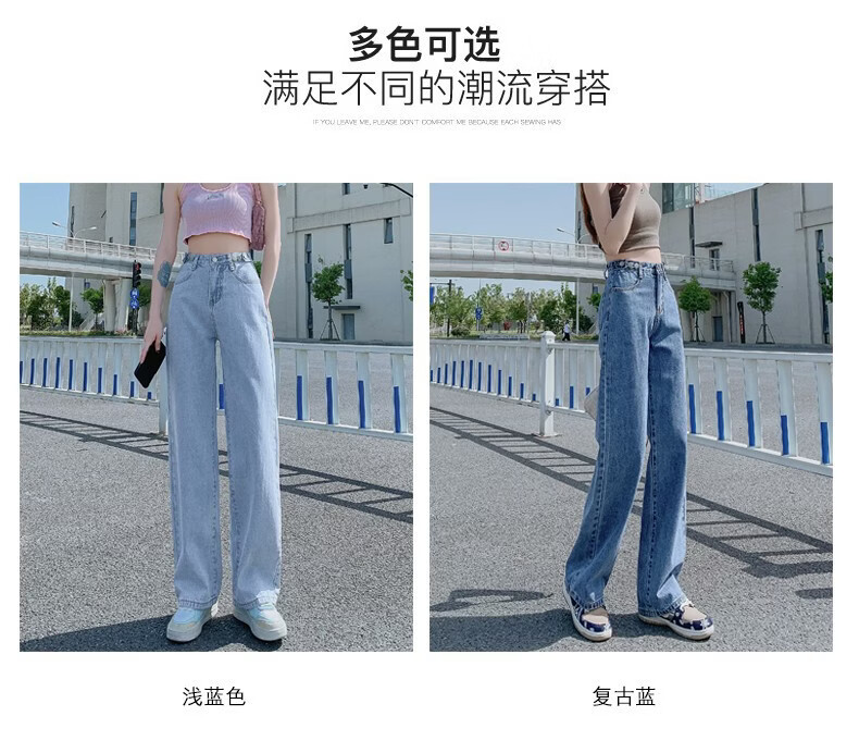 柯诗曼浅蓝色高腰阔腿牛仔裤女2026春秋款宽松显瘦垂感百搭直筒长裤子 复古蓝 XL 【119-129斤】