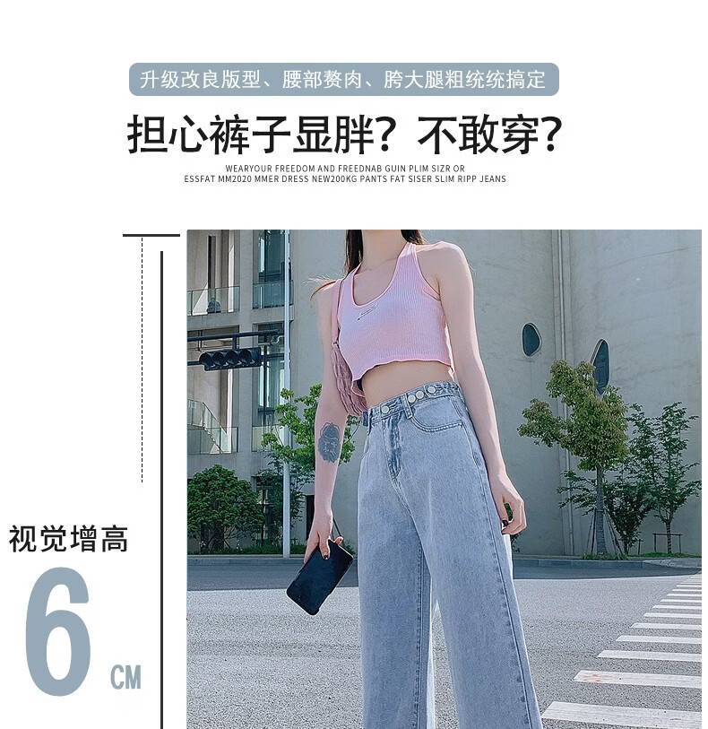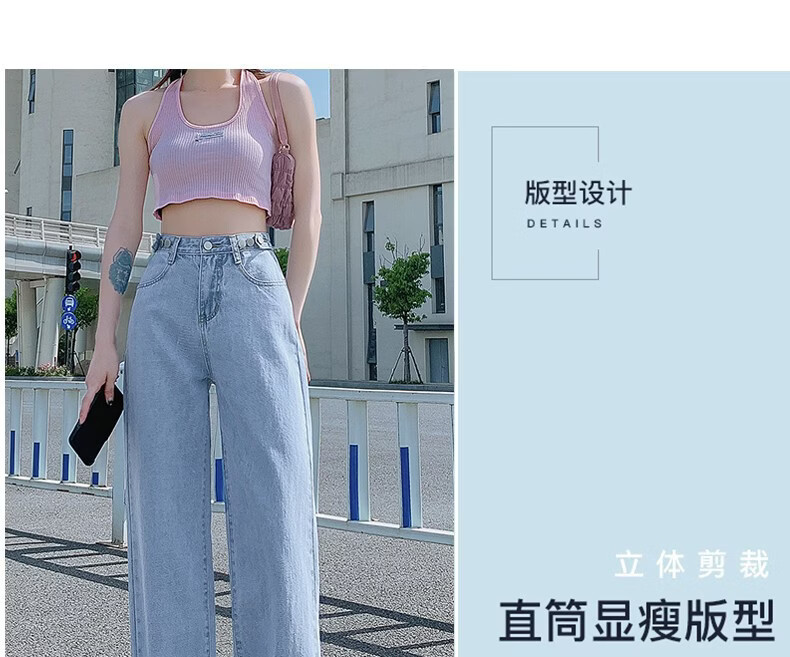 浪莎牛仔裤女阔腿裤春秋新款小个子美式窄版高腰显瘦直筒裤 蓝灰色 【显瘦遮肉】 XL 【适合120-130斤】