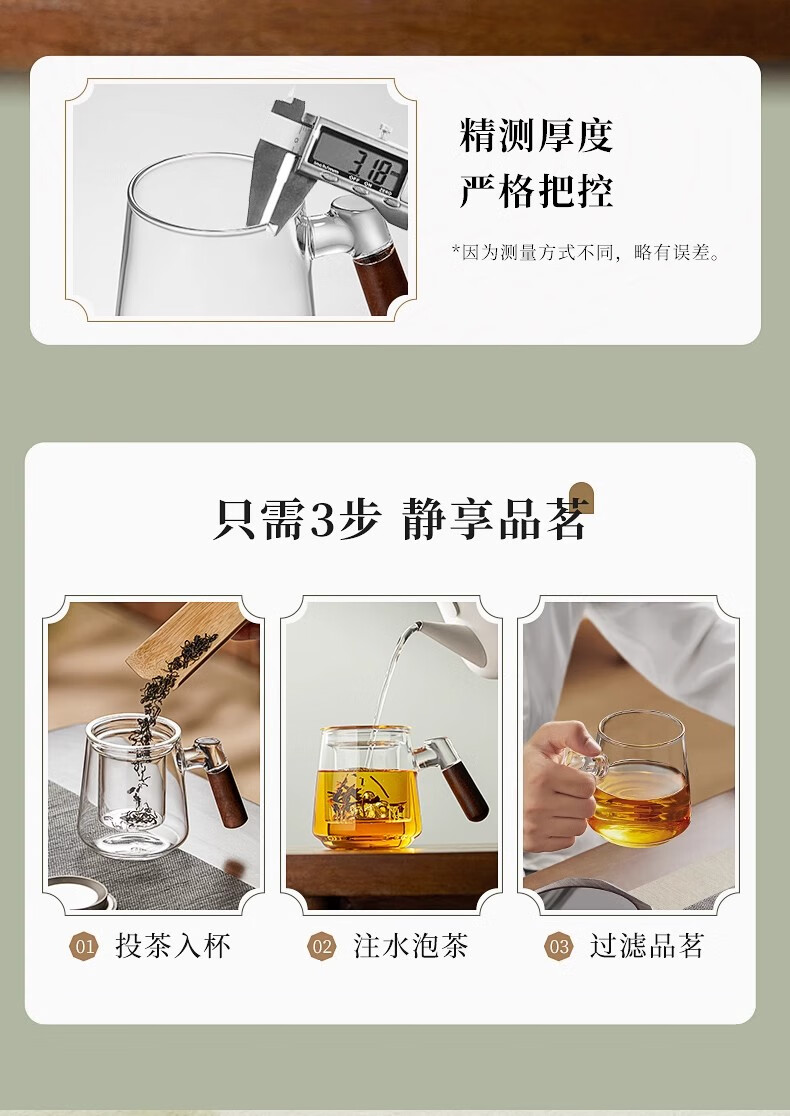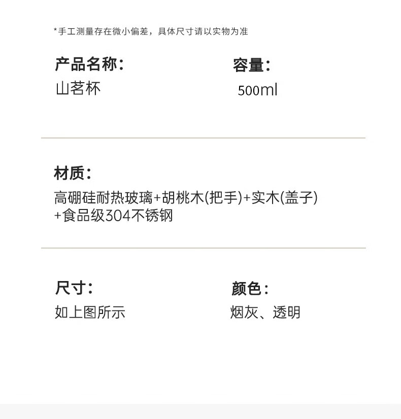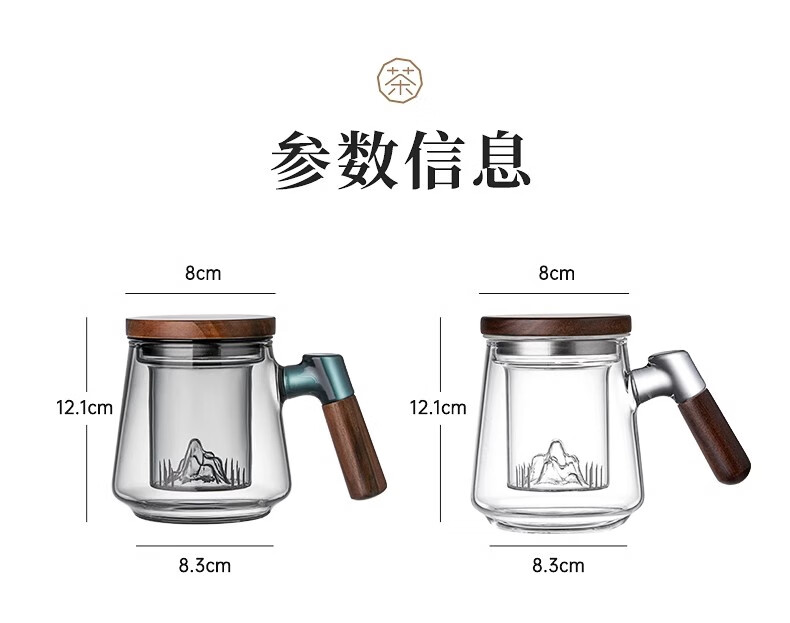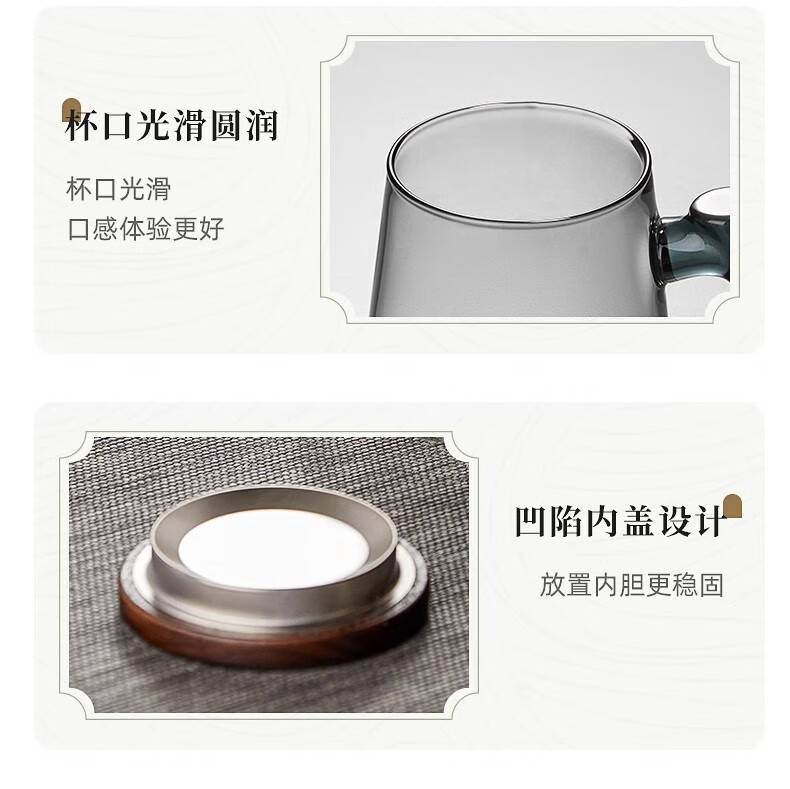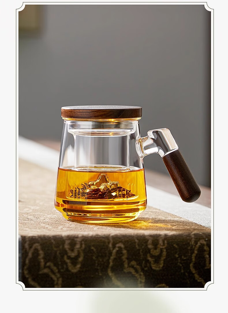 溥畔高硼硅玻璃茶杯带把手茶水分离水杯个性创意观山杯子办公室花茶杯 烟青观山【胡桃木手柄】 500ml