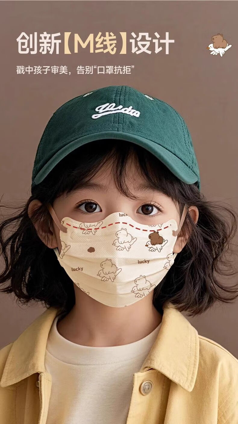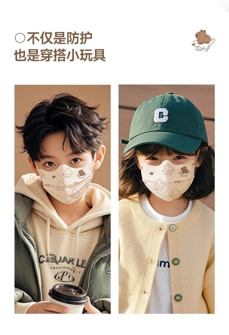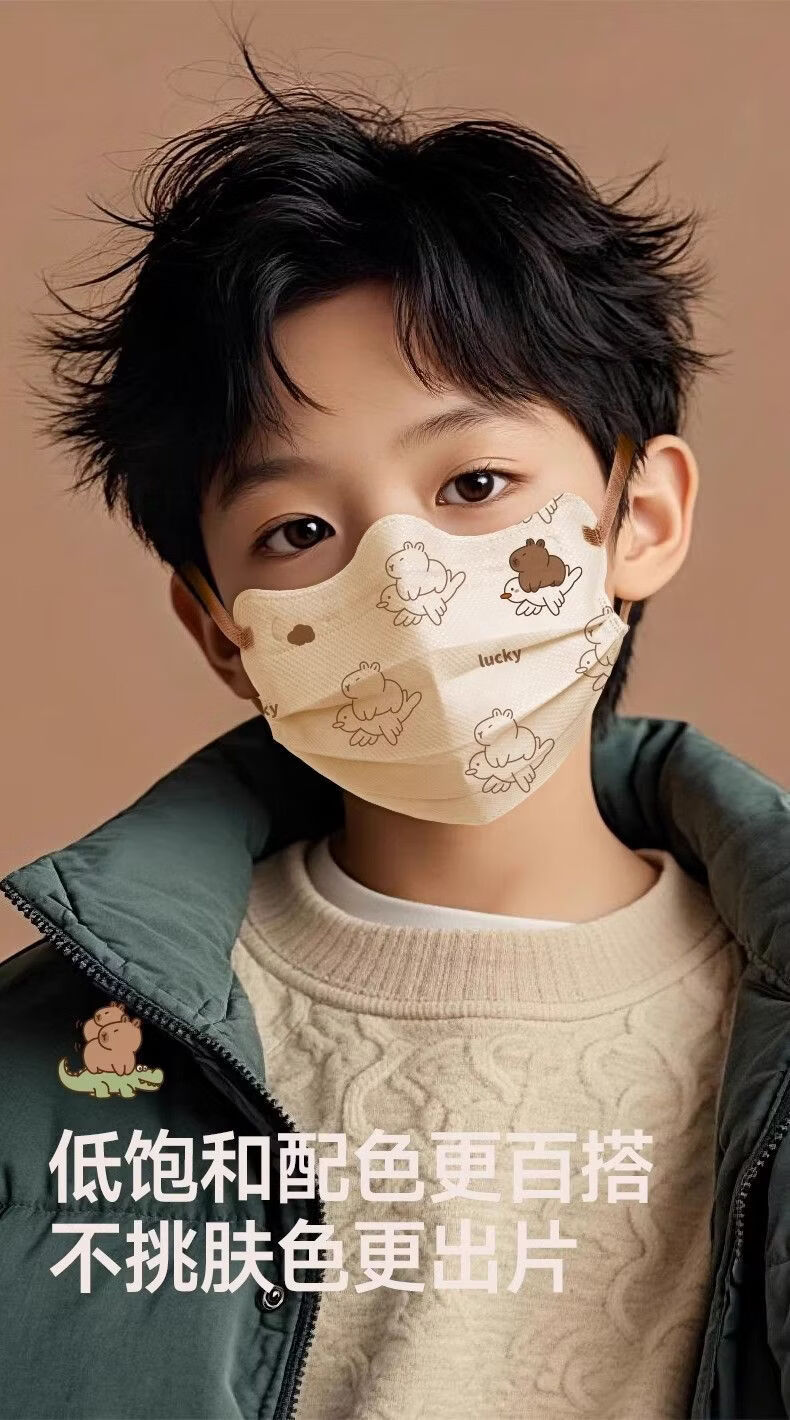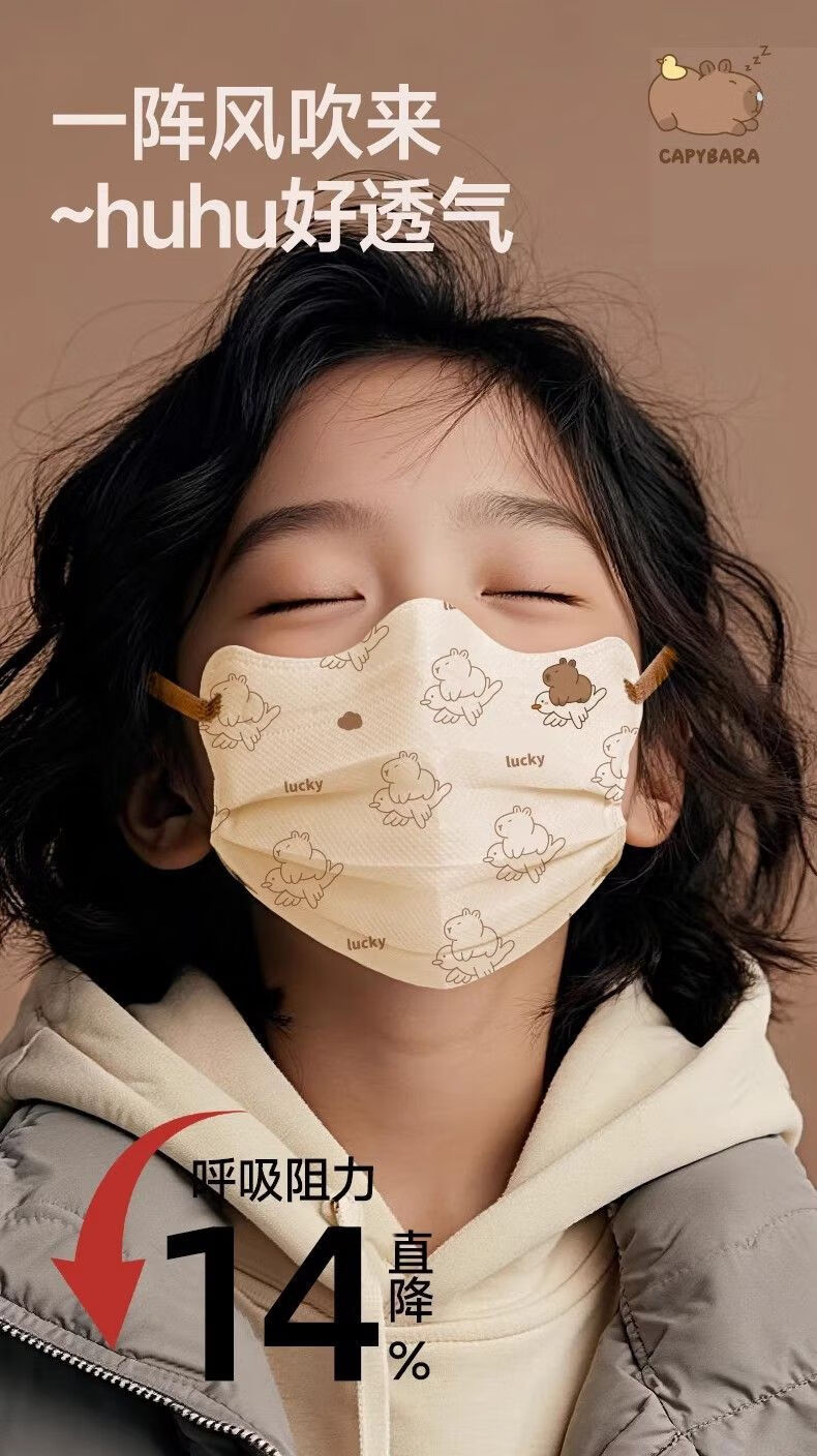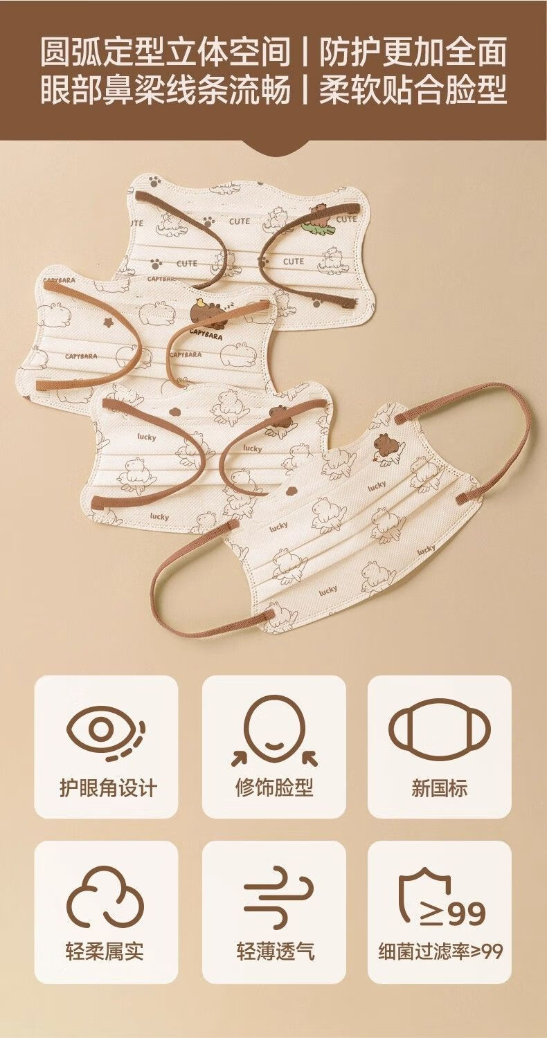 万宝绿儿童一次性口罩宝宝女大童8到12学生3到6岁5专用卡皮巴拉独立包装 【新国标38880-三色混搭款】透气不勒耳 特惠装推荐丨60只 独立包装【3-15岁儿童】