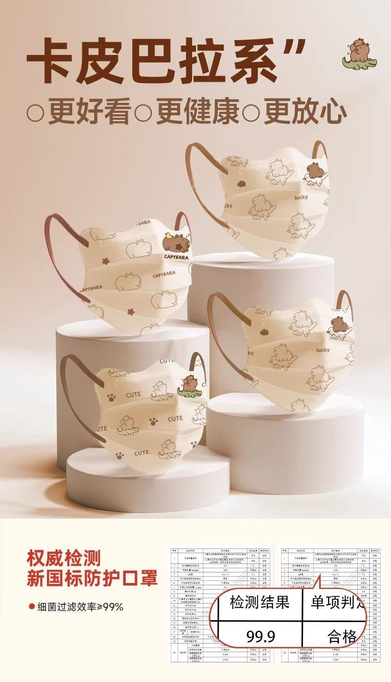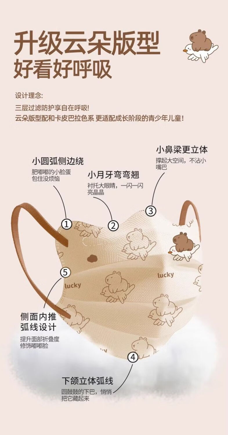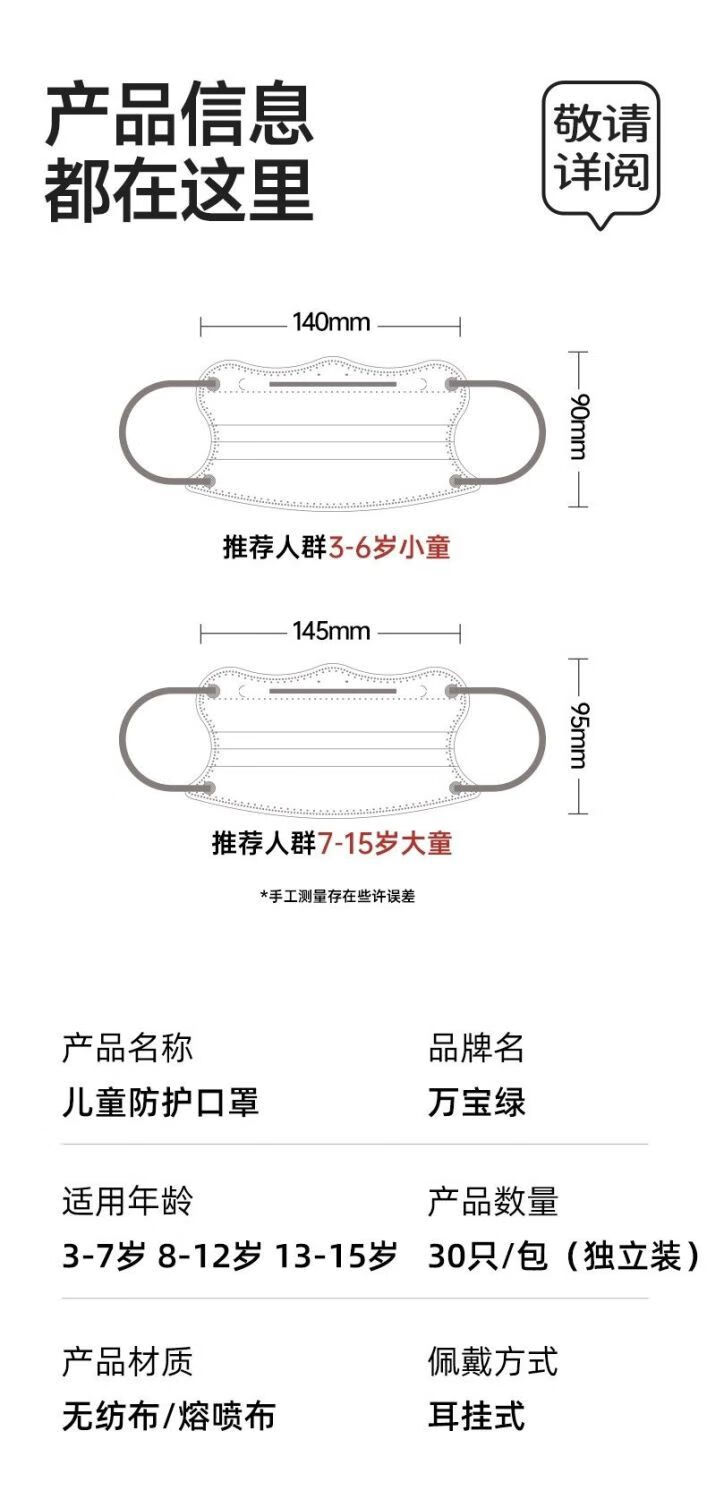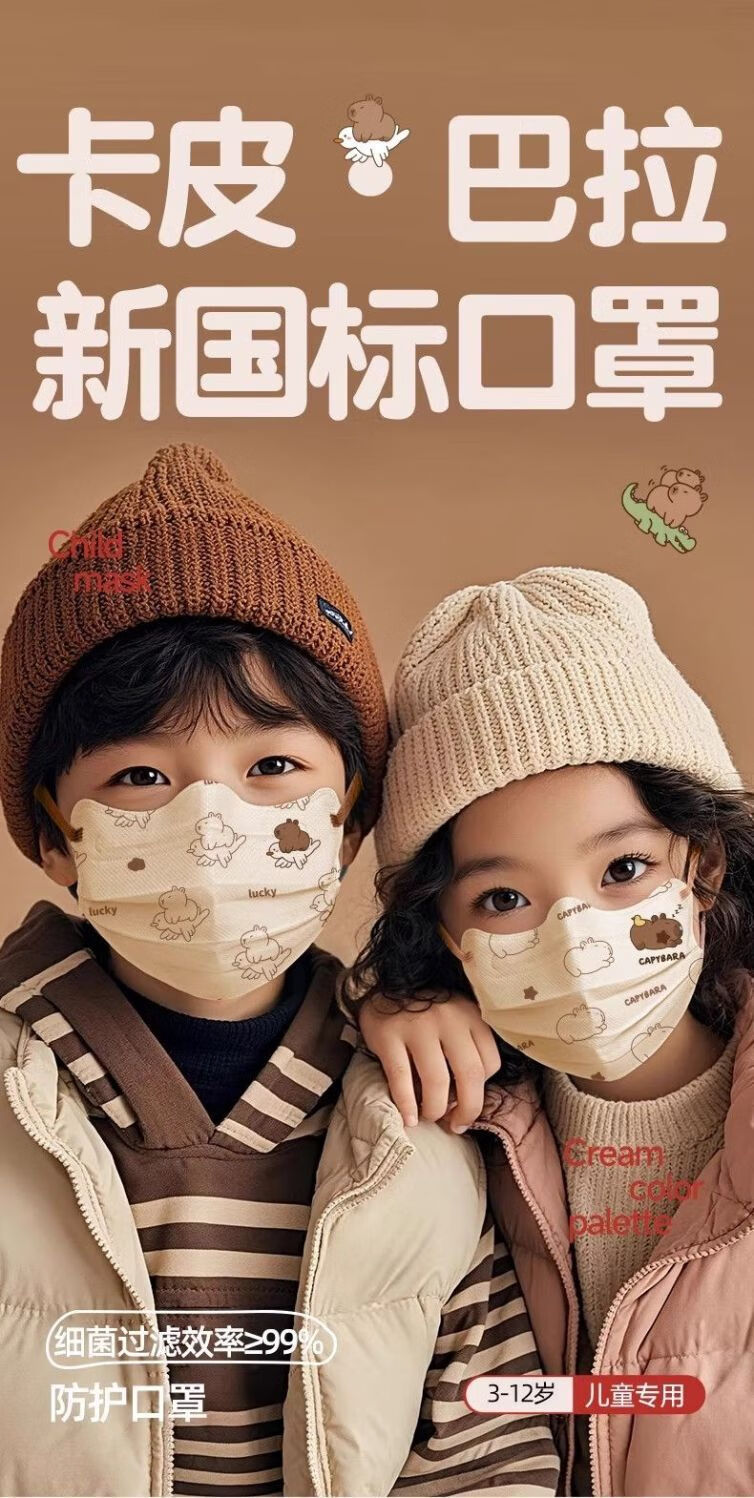 万宝绿儿童一次性口罩宝宝女大童8到12学生3到6岁5专用卡皮巴拉独立包装 【新国标38880-三色混搭款】透气不勒耳 特惠装推荐丨60只 独立包装【3-15岁儿童】