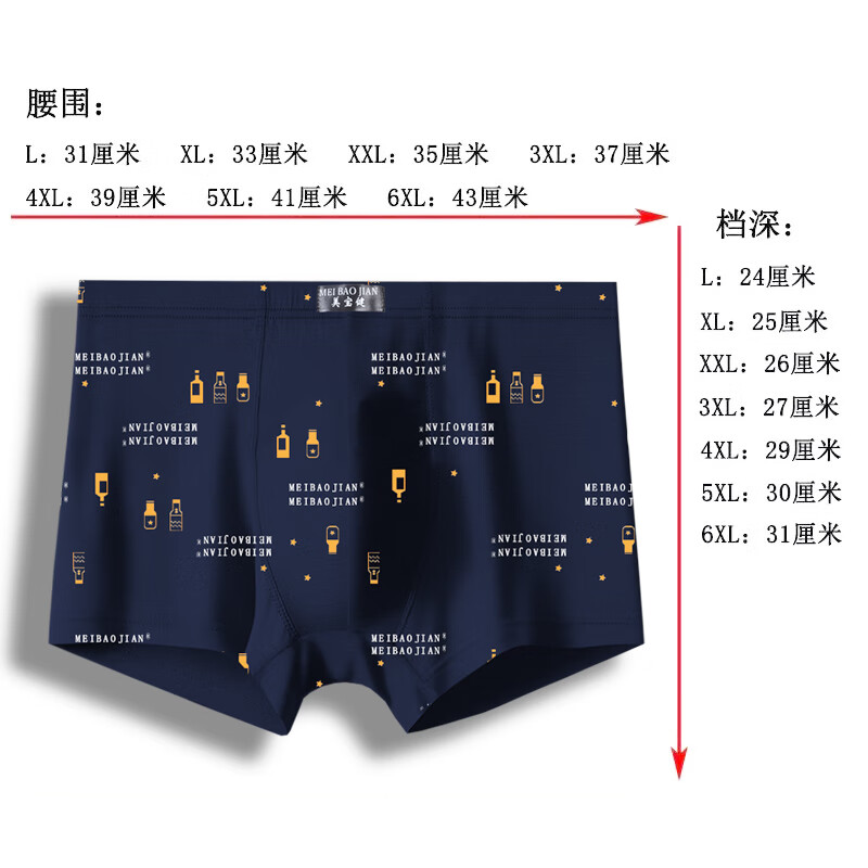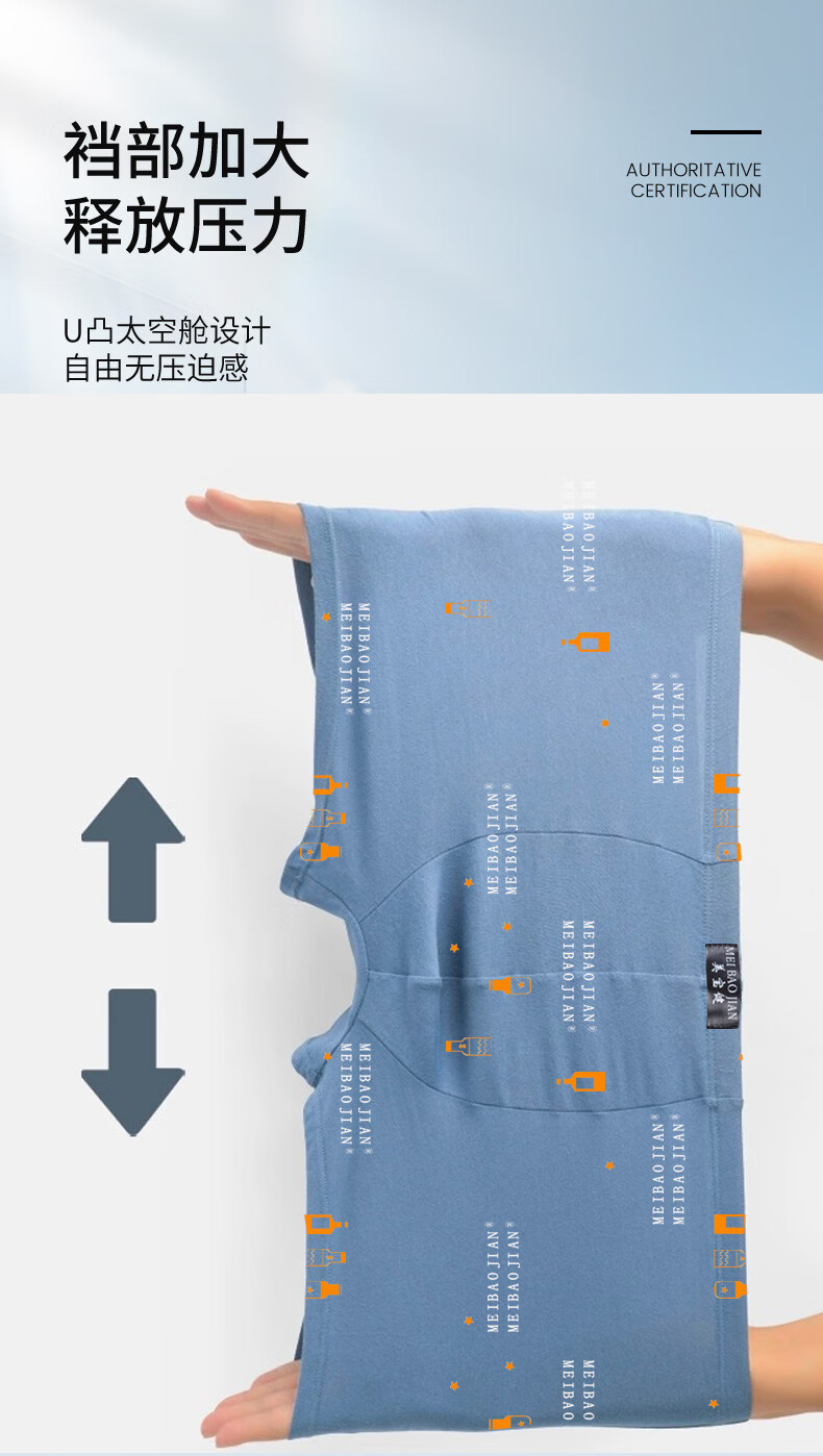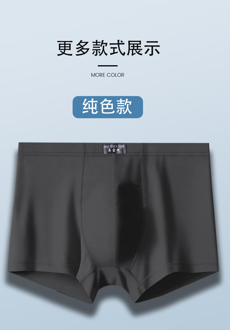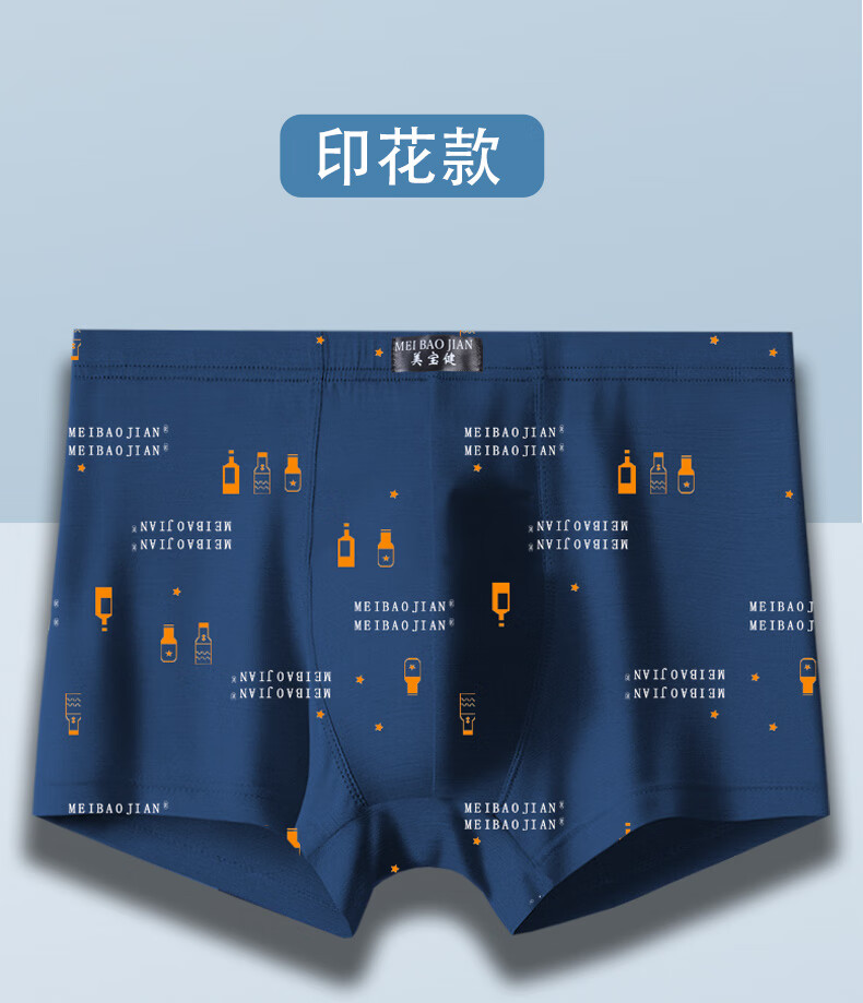 美宝健100%纯棉男式内裤5条平角裤中腰常用型舒适男生运动吸汗透气底裤 3条装(100%纯棉)明筋简约款 3条 XL (体重90-110斤)纯棉