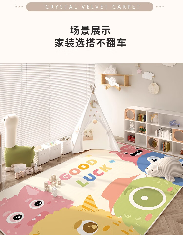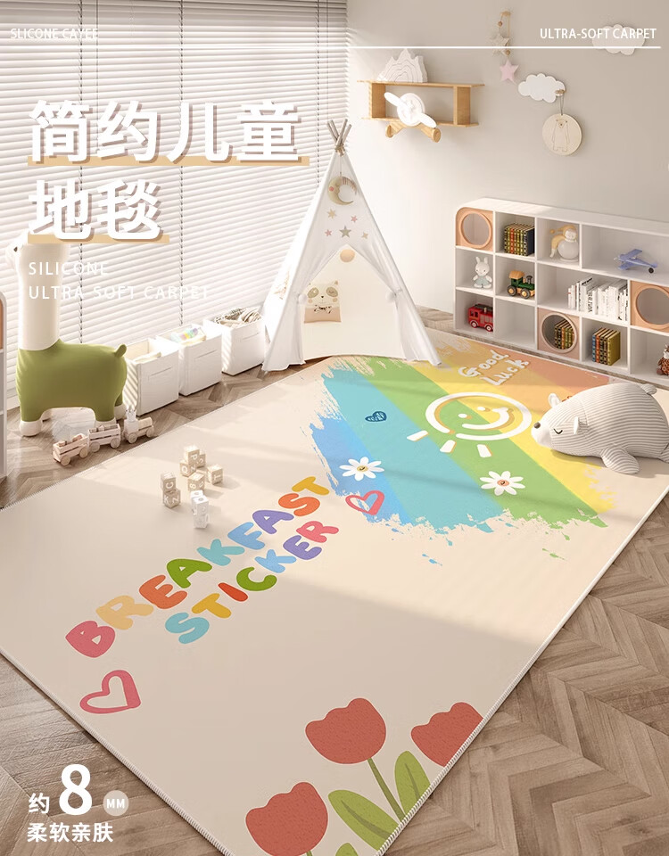 季象儿童房地毯客厅沙发茶几免洗幼儿园爬行垫子书房阅读区卧室床边毯 SJR-熊猫好朋友 80X160cm