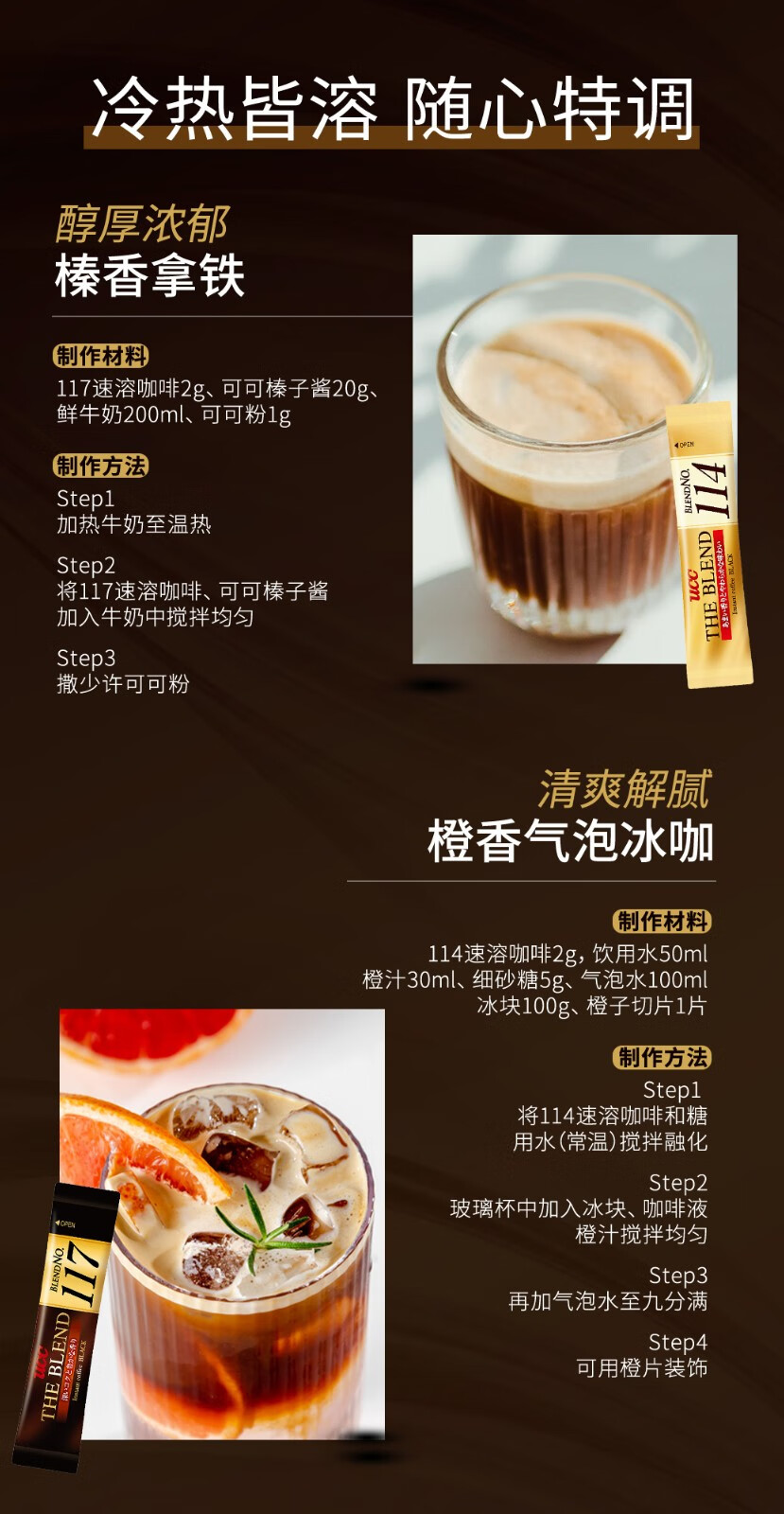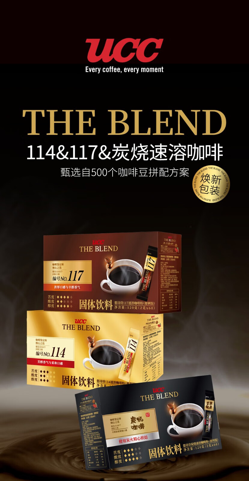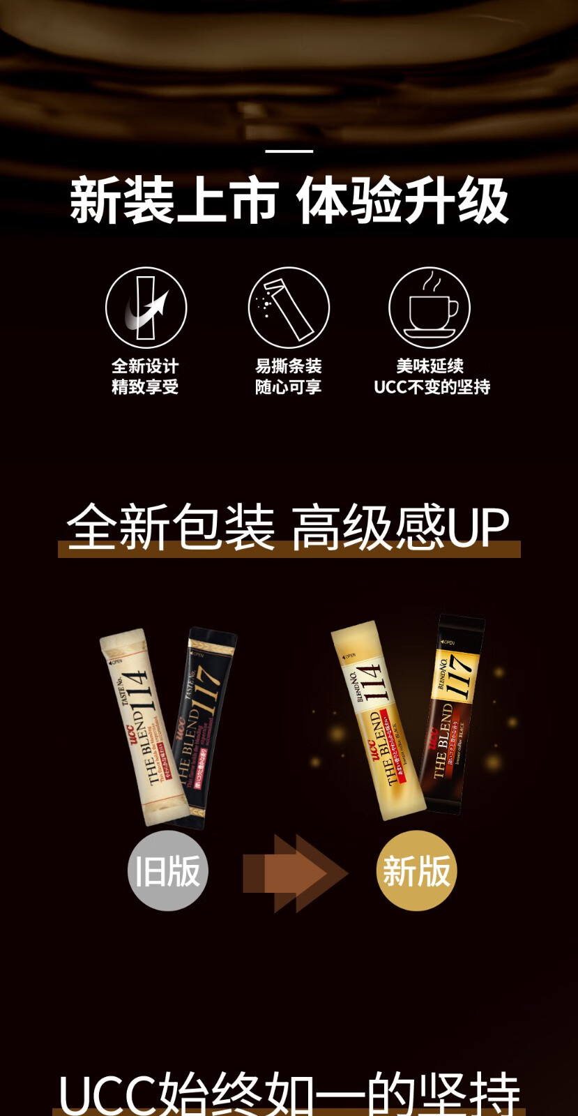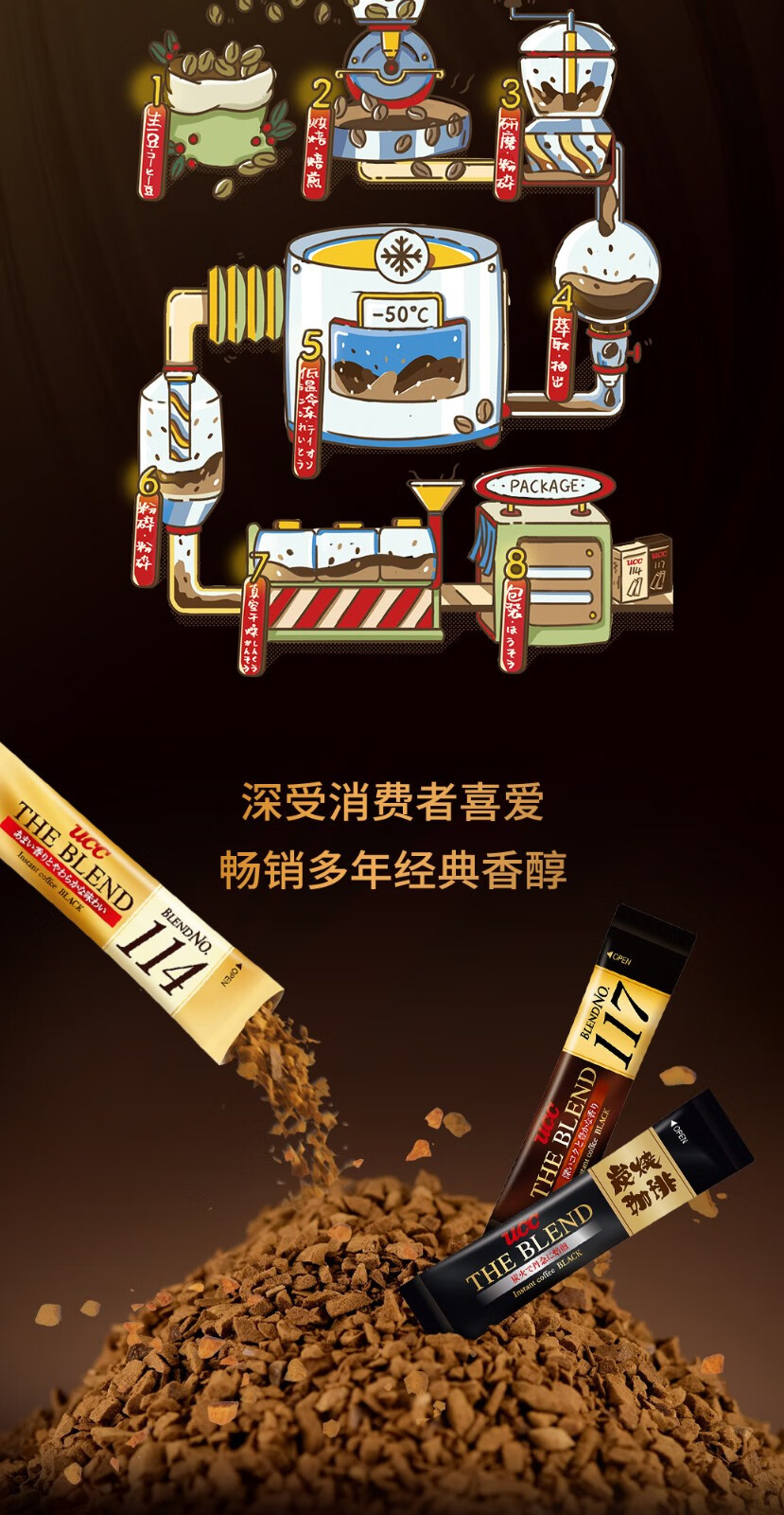 悠诗诗(UCC)117冻干咖啡进口冷热速溶美式黑咖啡0添加糖健身咖啡颗粒便携条装 114便携装100p