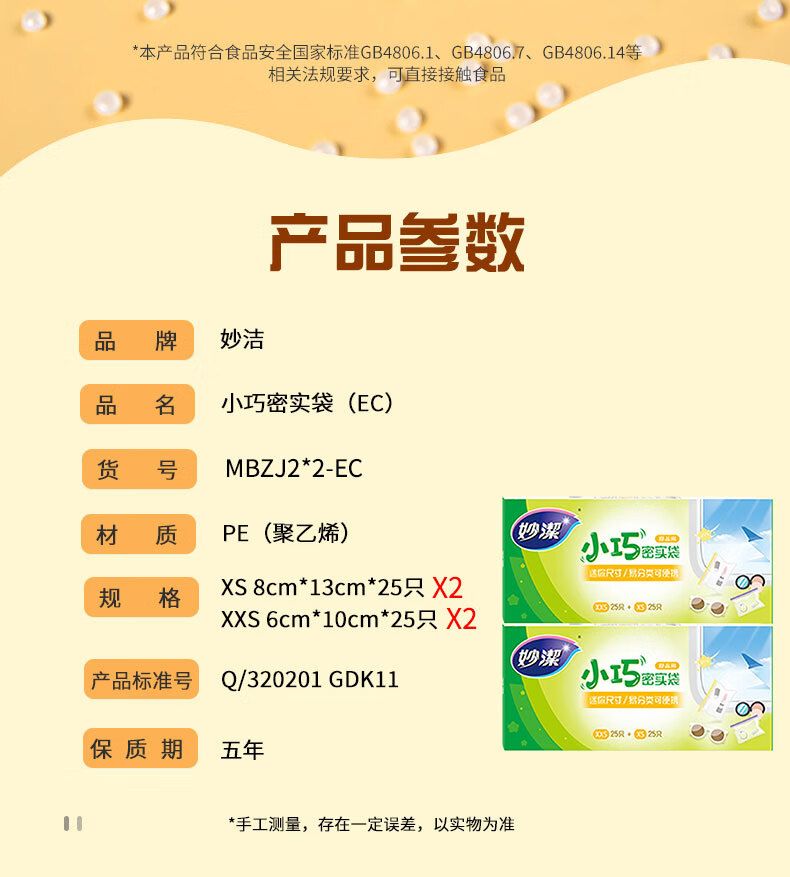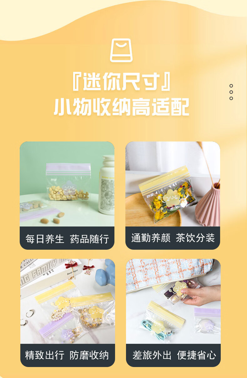妙洁 小巧密封袋 2盒共100只 迷你小物收纳 食品药品首饰自封保鲜袋