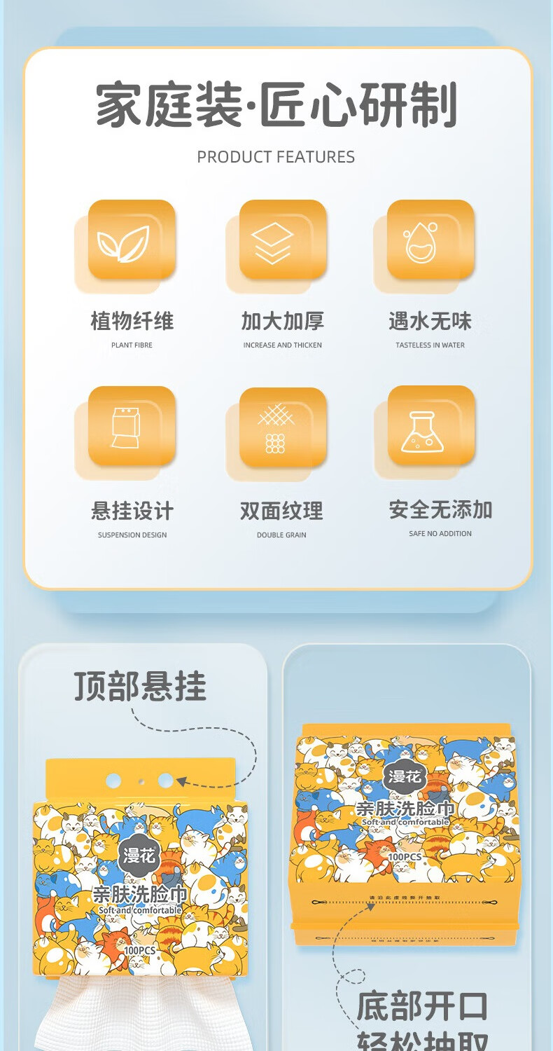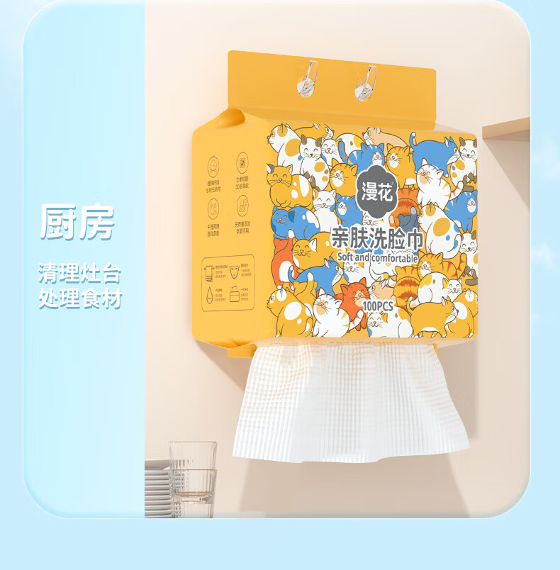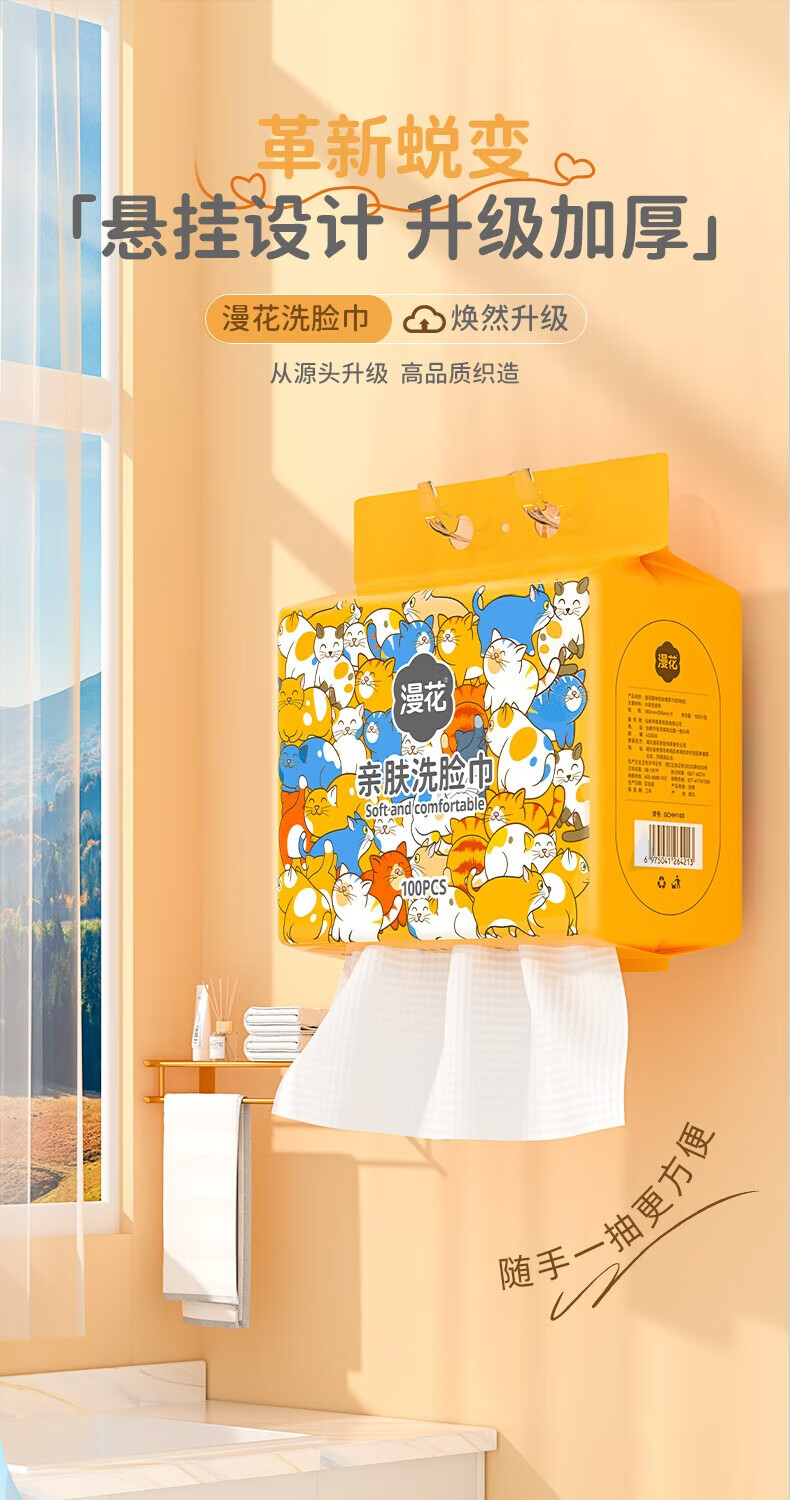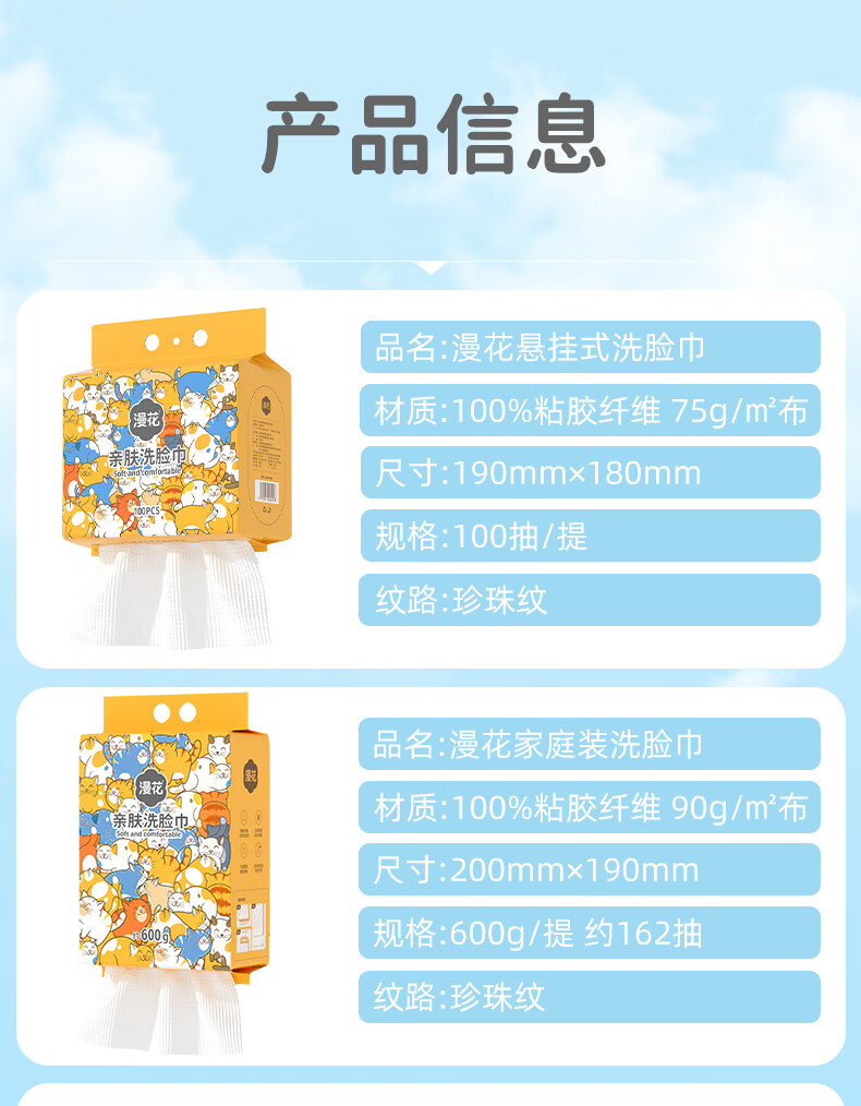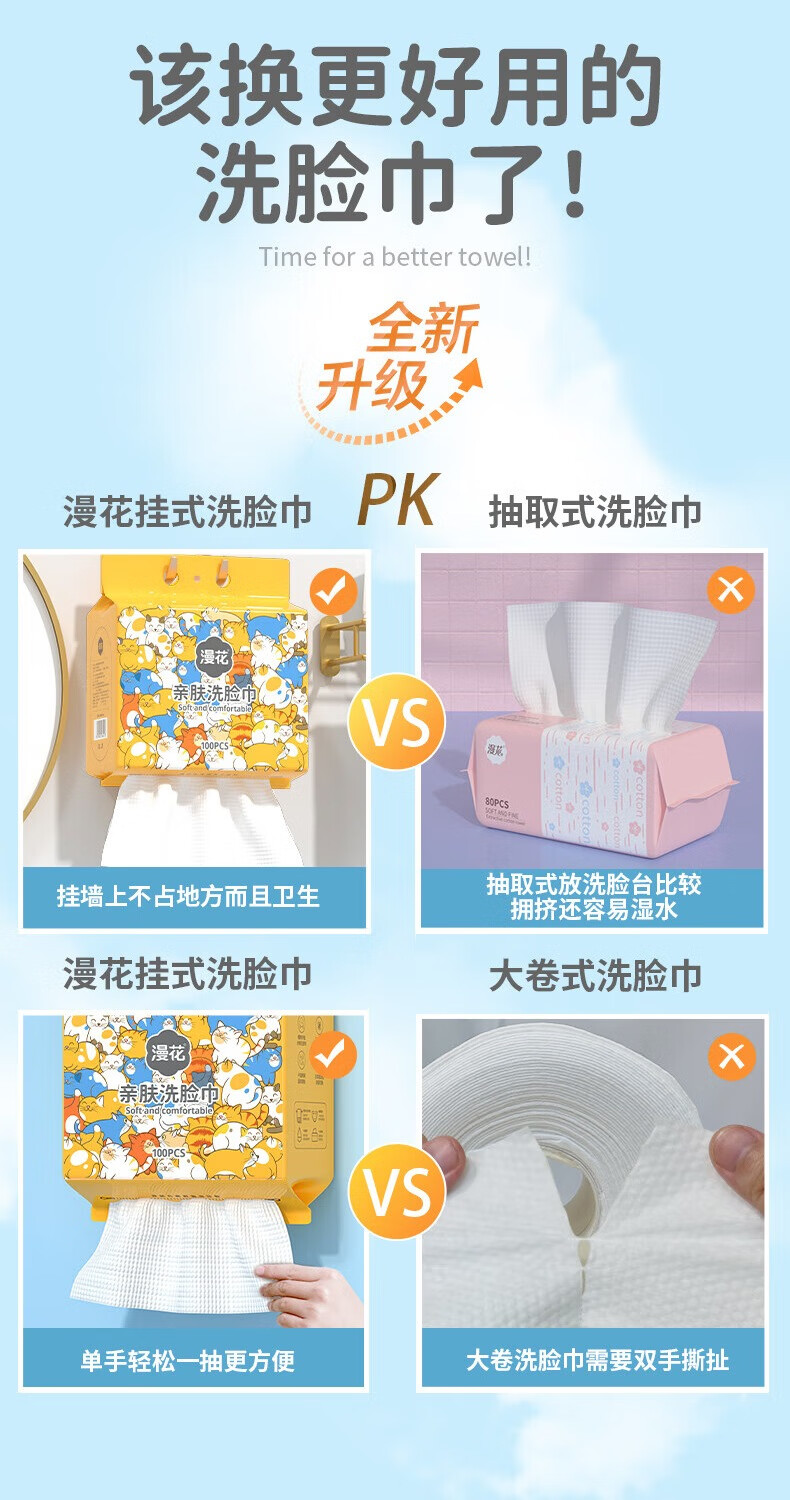 漫花加大加厚一次性洗脸巾干湿两用擦脸居家悬挂式绵柔巾100抽/包 1提/100抽送挂钩【加量加厚】