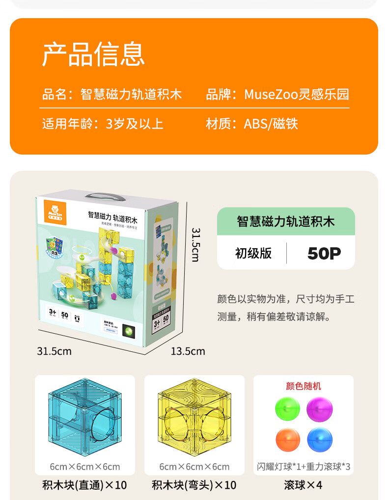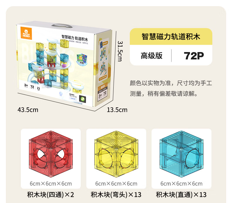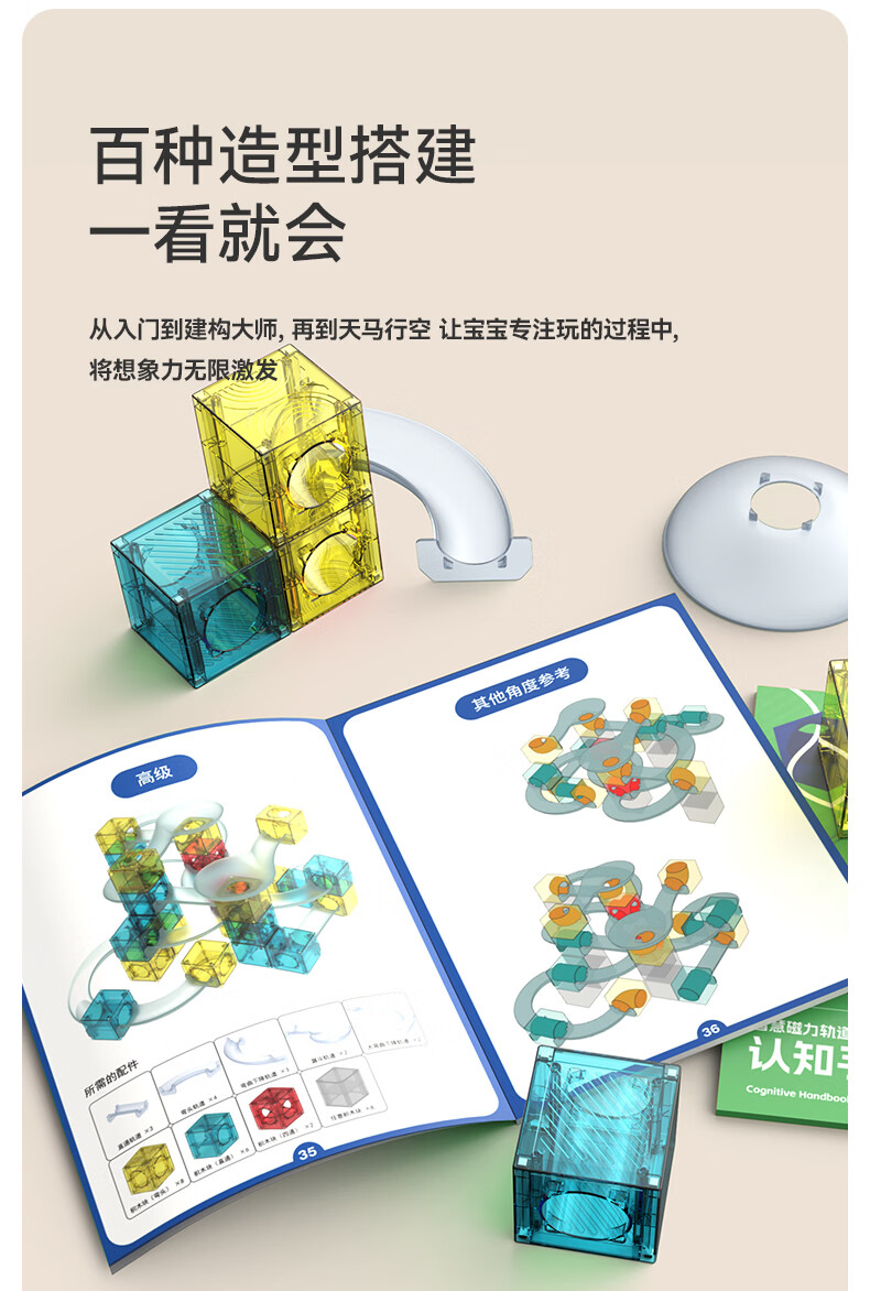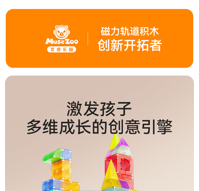MUSEZOO灵感乐园儿童磁力块轨道积木益智拼装玩具六一礼物大尺寸磁力片 72p智慧磁力轨道积木-高级版