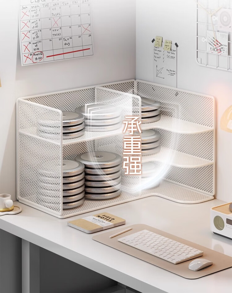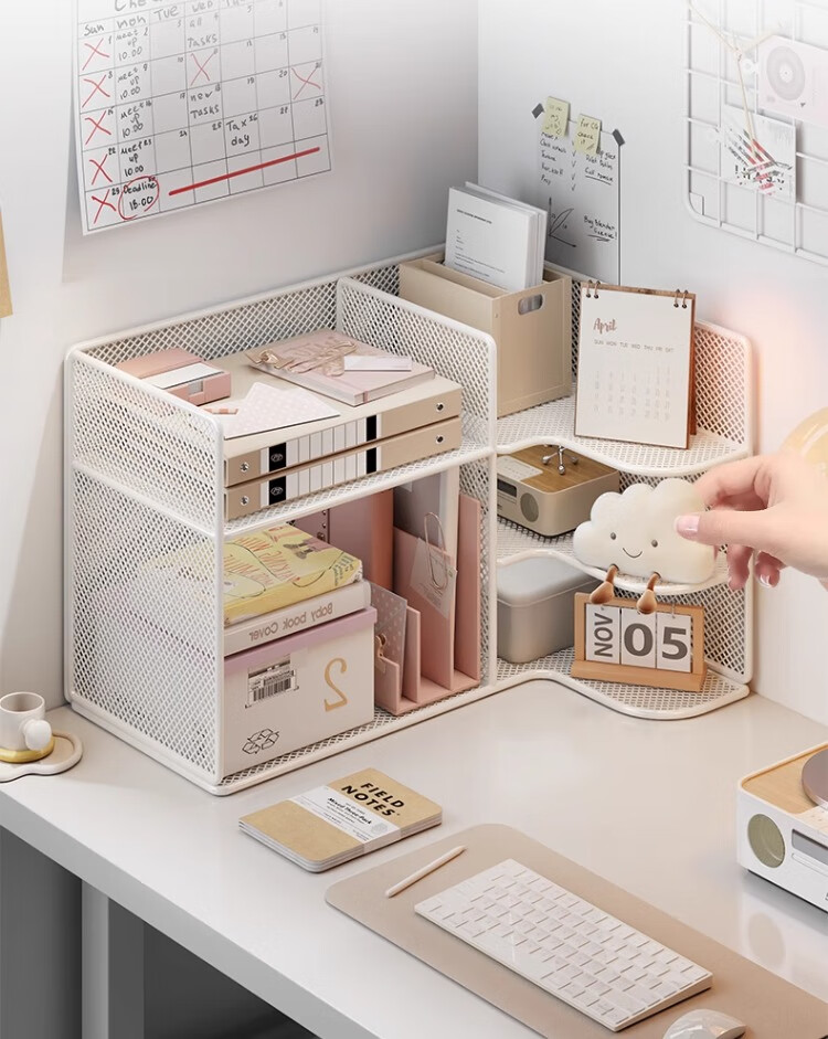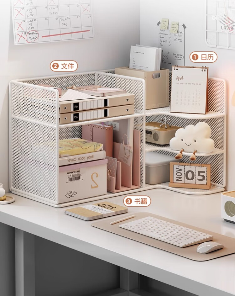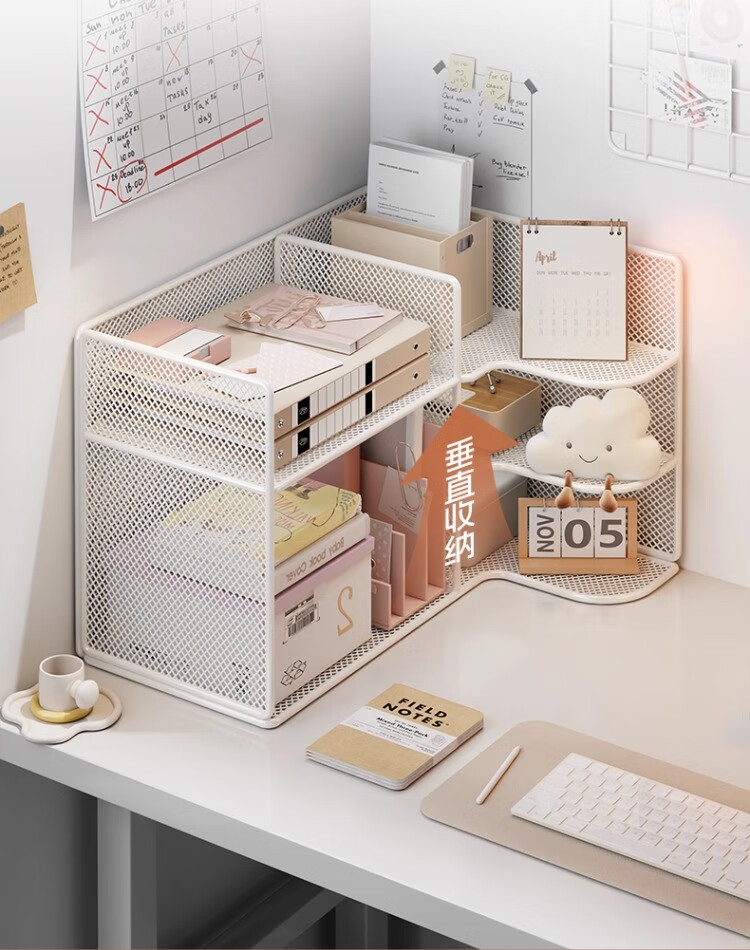 尔思家桌面置物架转角书架书本收纳工位拐角简易办公室桌上书桌小型书柜 白色(右)