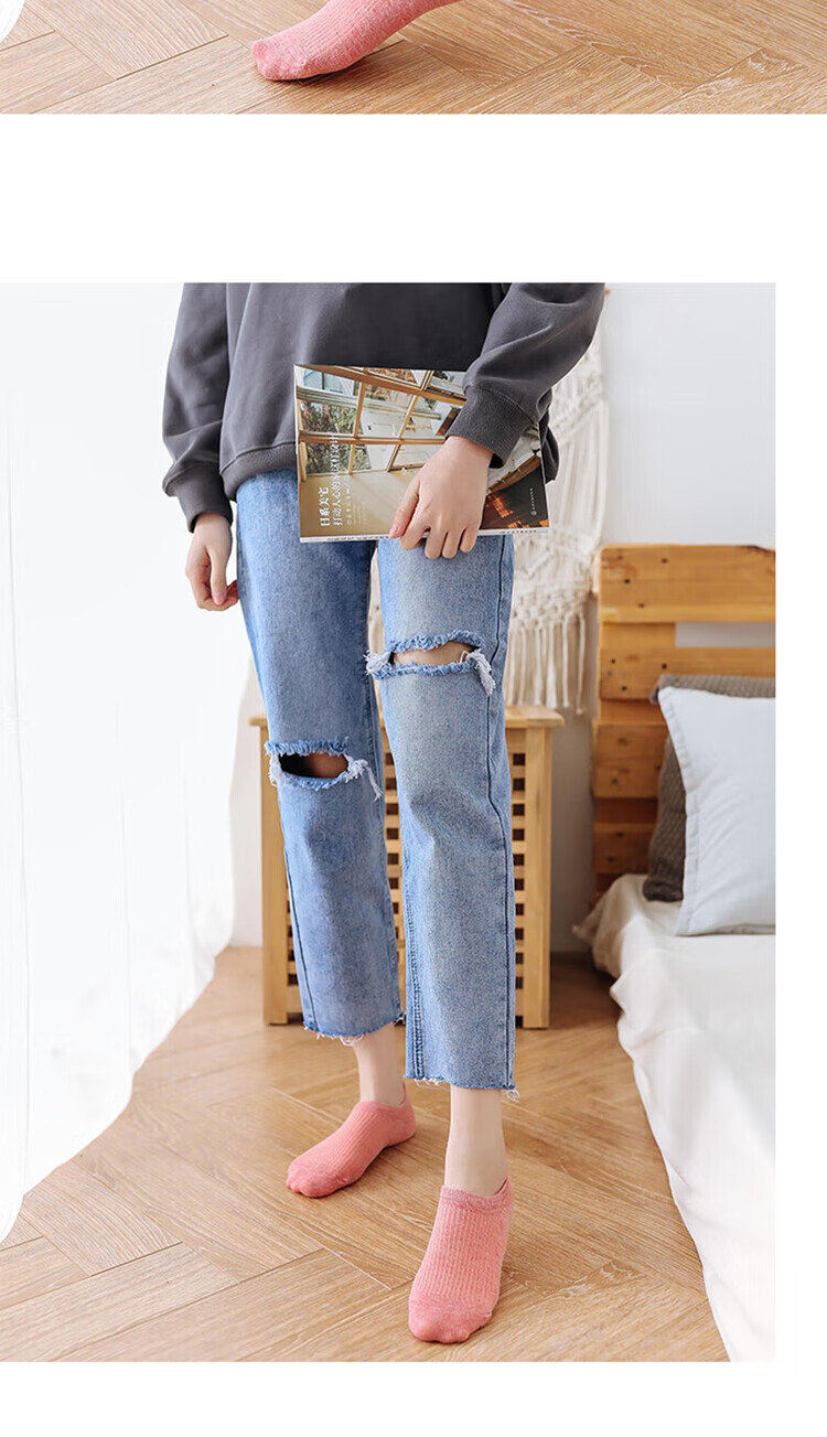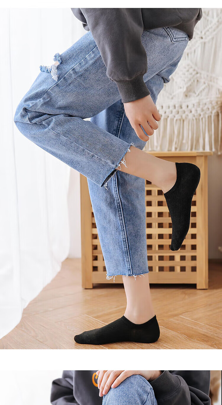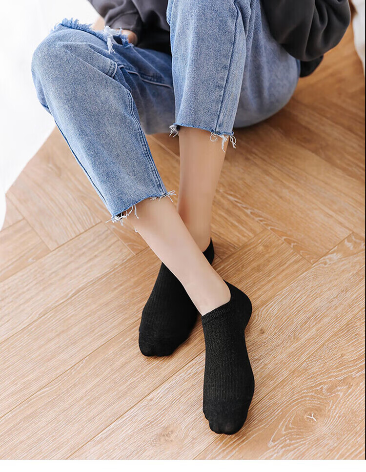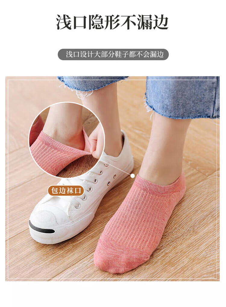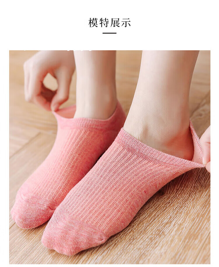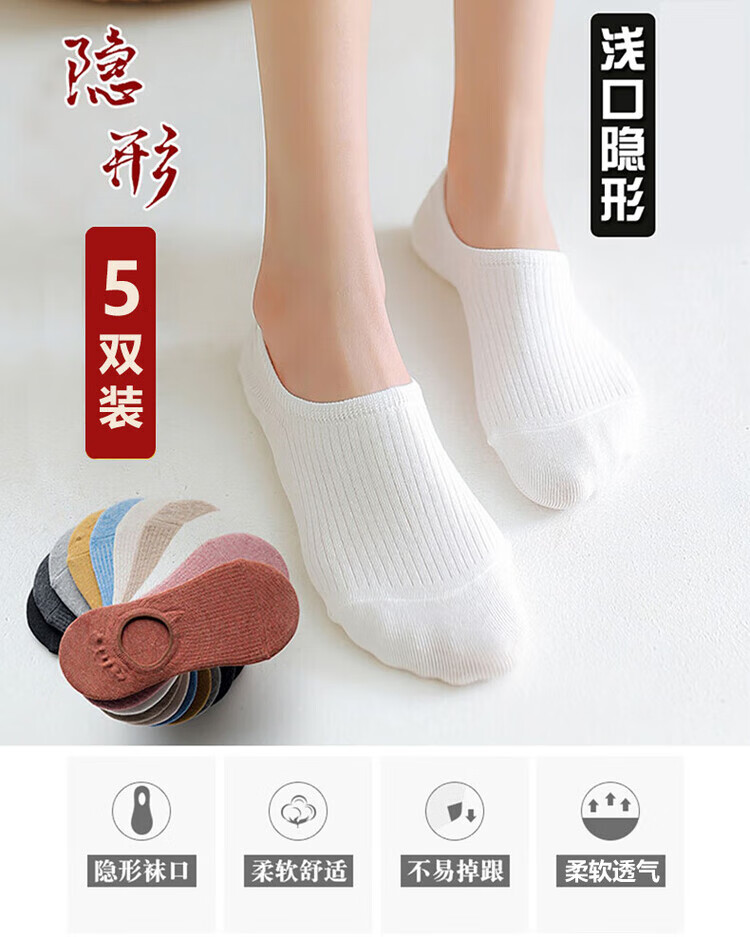 极烁【5双装】袜子女短袜浅口船袜女四季款袜底防滑不掉跟纯色隐形袜 【5双装】颜色随机 均码
