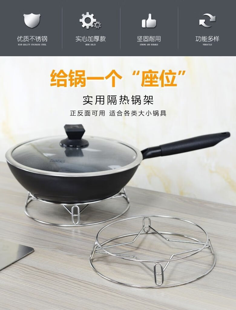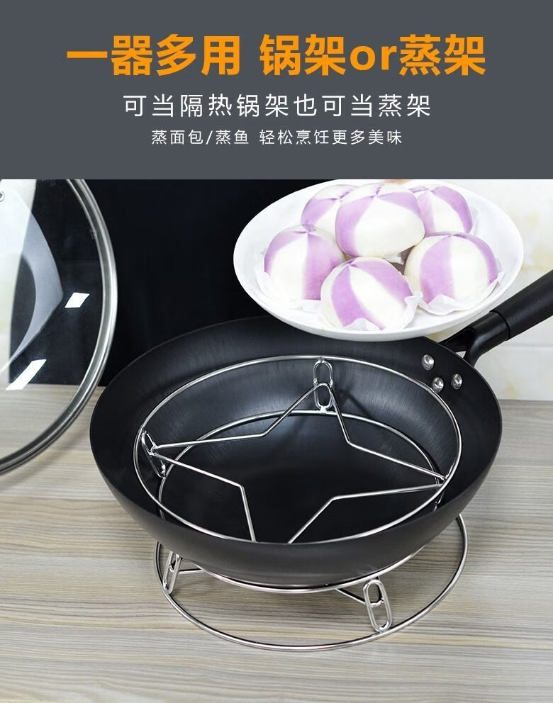 京东物流 不锈钢锅架厨房家用置物锅盖隔热防烫锅具锅垫支架蒸架 【1个装】加粗不锈钢锅架/蒸架