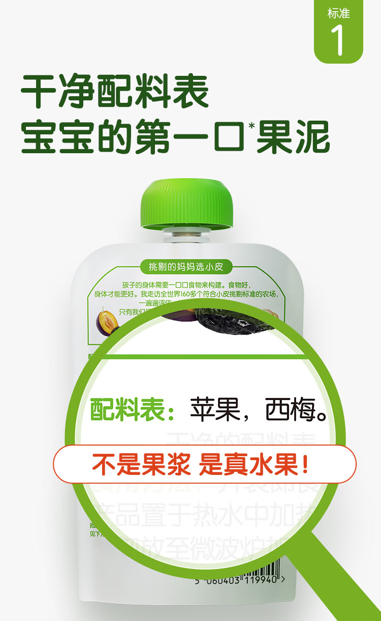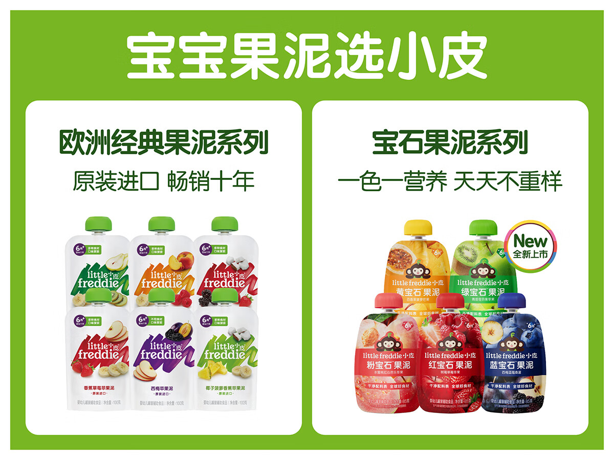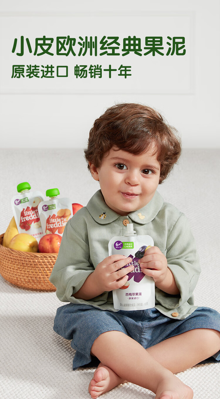 小皮(Little Freddie)西梅苹果泥100g*6袋 婴儿水果泥6月+宝宝辅食泥 欧洲进口西梅泥