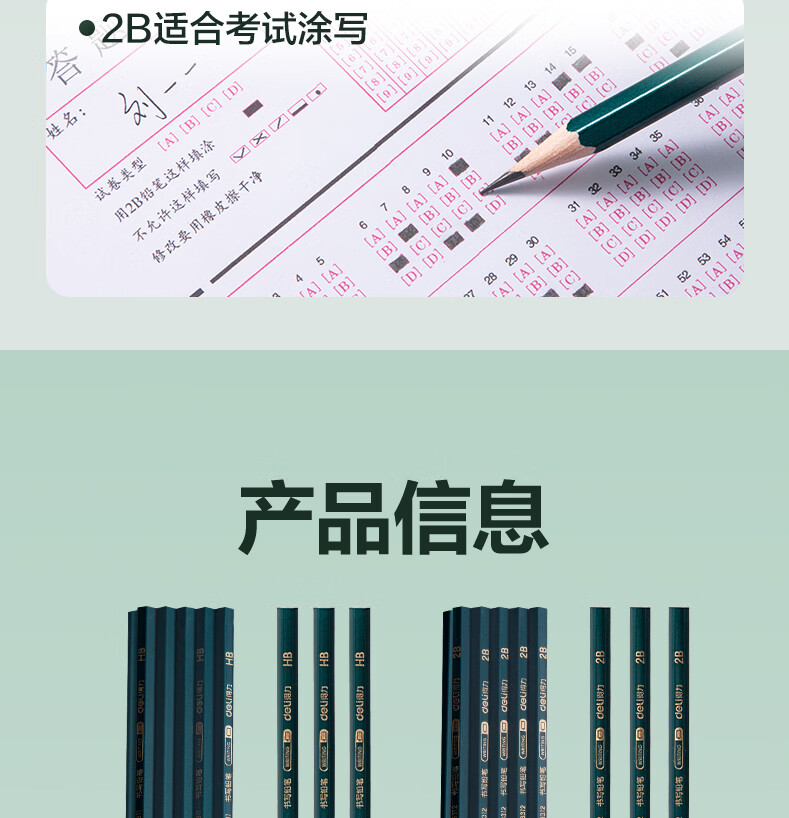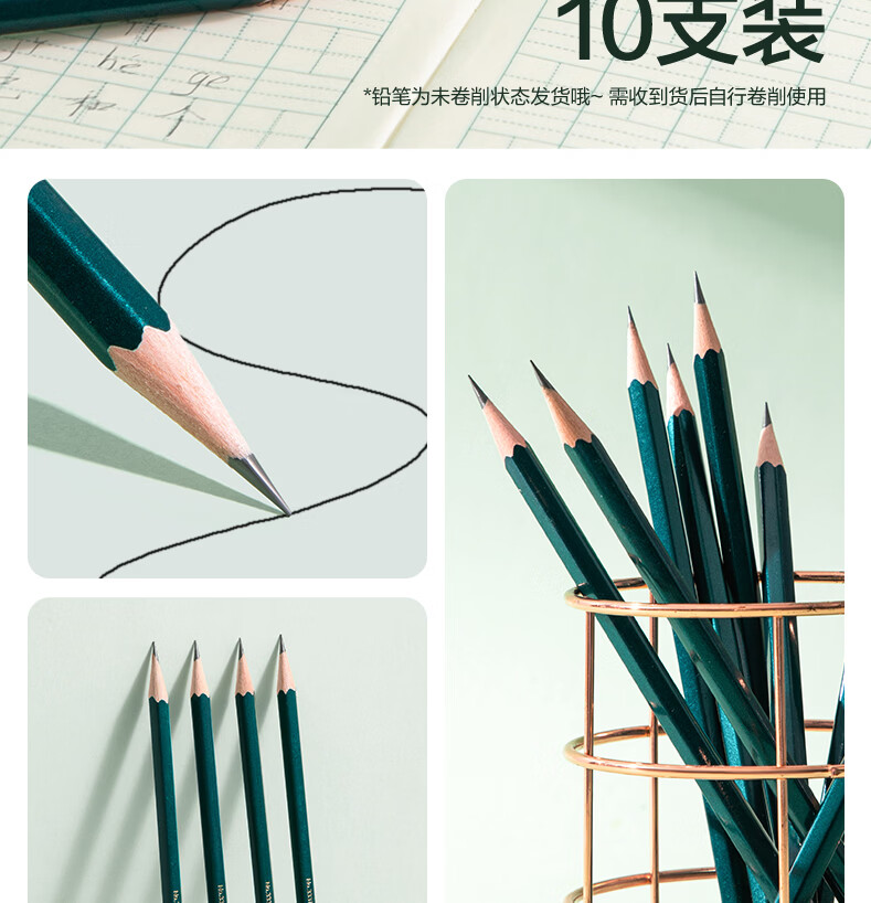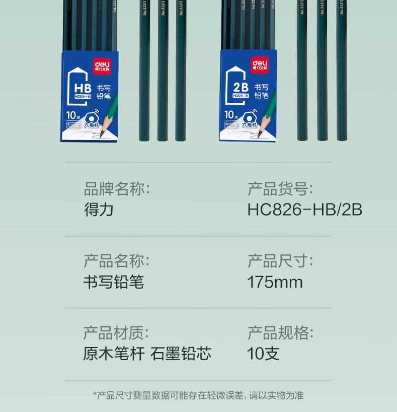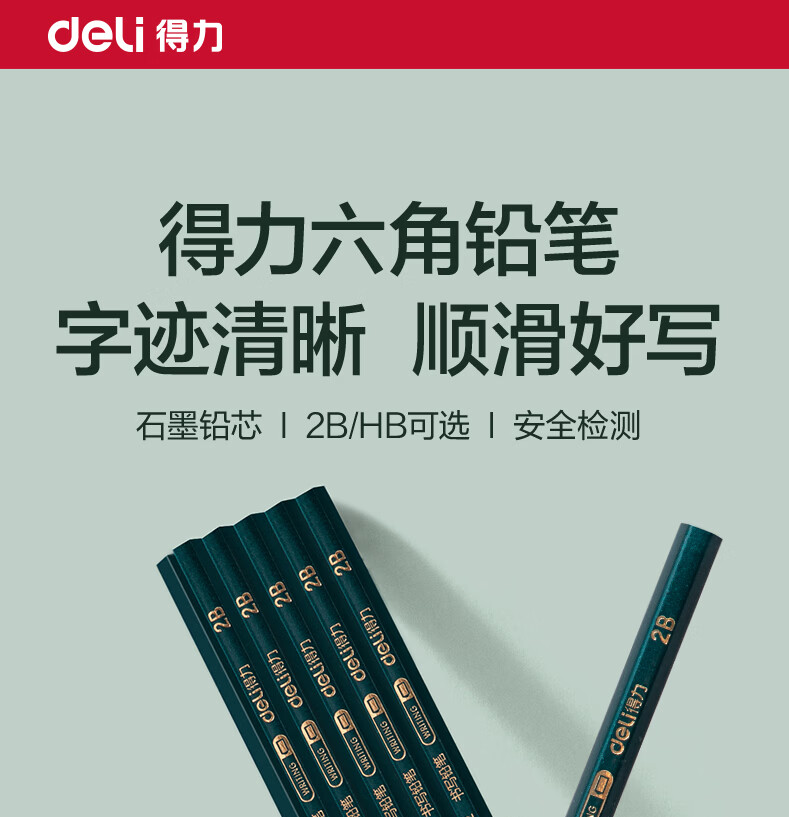 得力(deli)经典绿杆10支2B铅笔原木六角笔杆学生考试素描绘图铅笔写字练字书写学生开学新年礼物