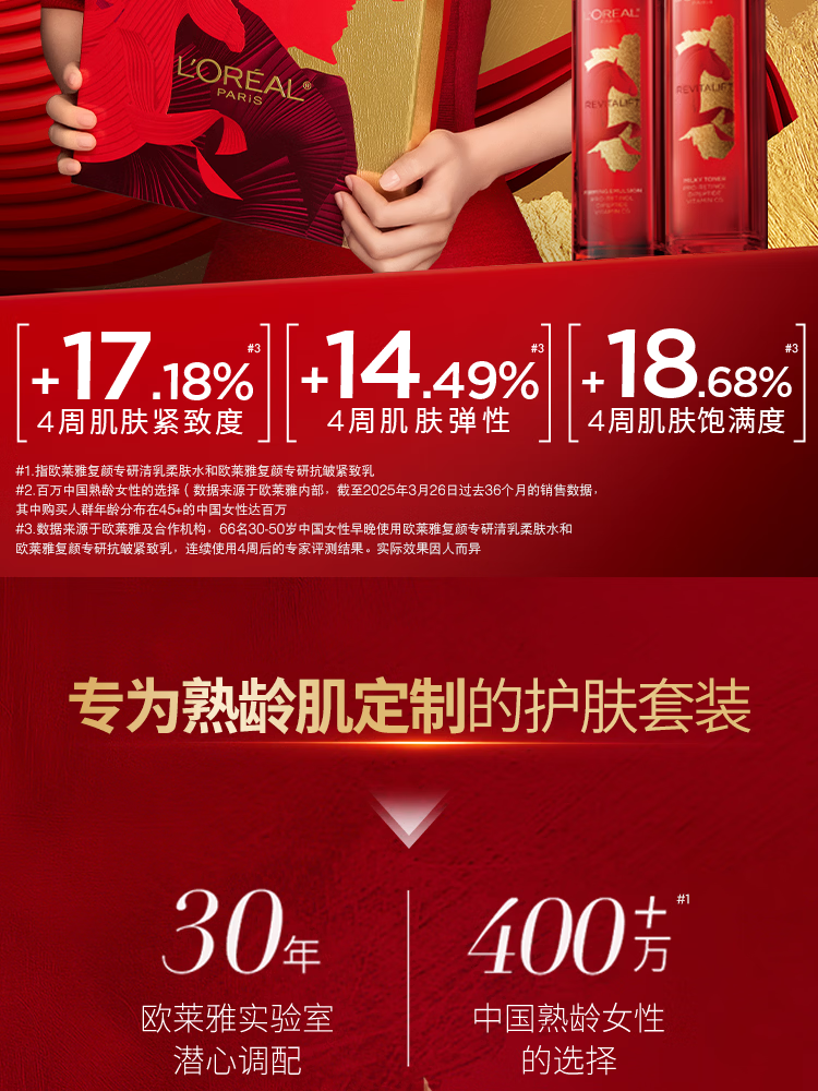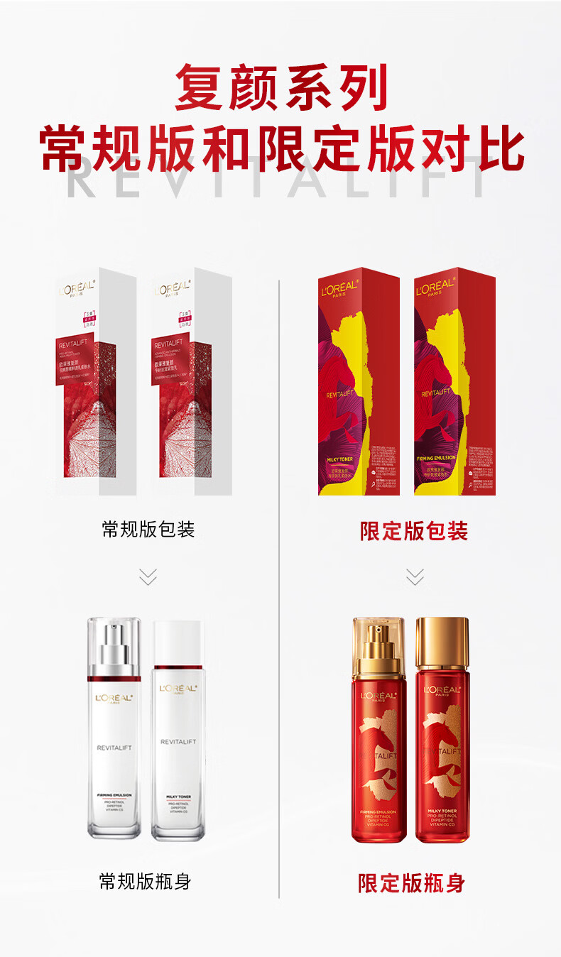 欧莱雅复颜水乳限量礼盒套装抗皱补水护肤品化妆品生日女神节礼物