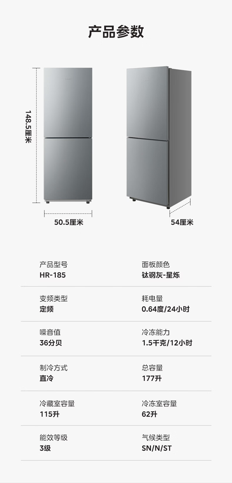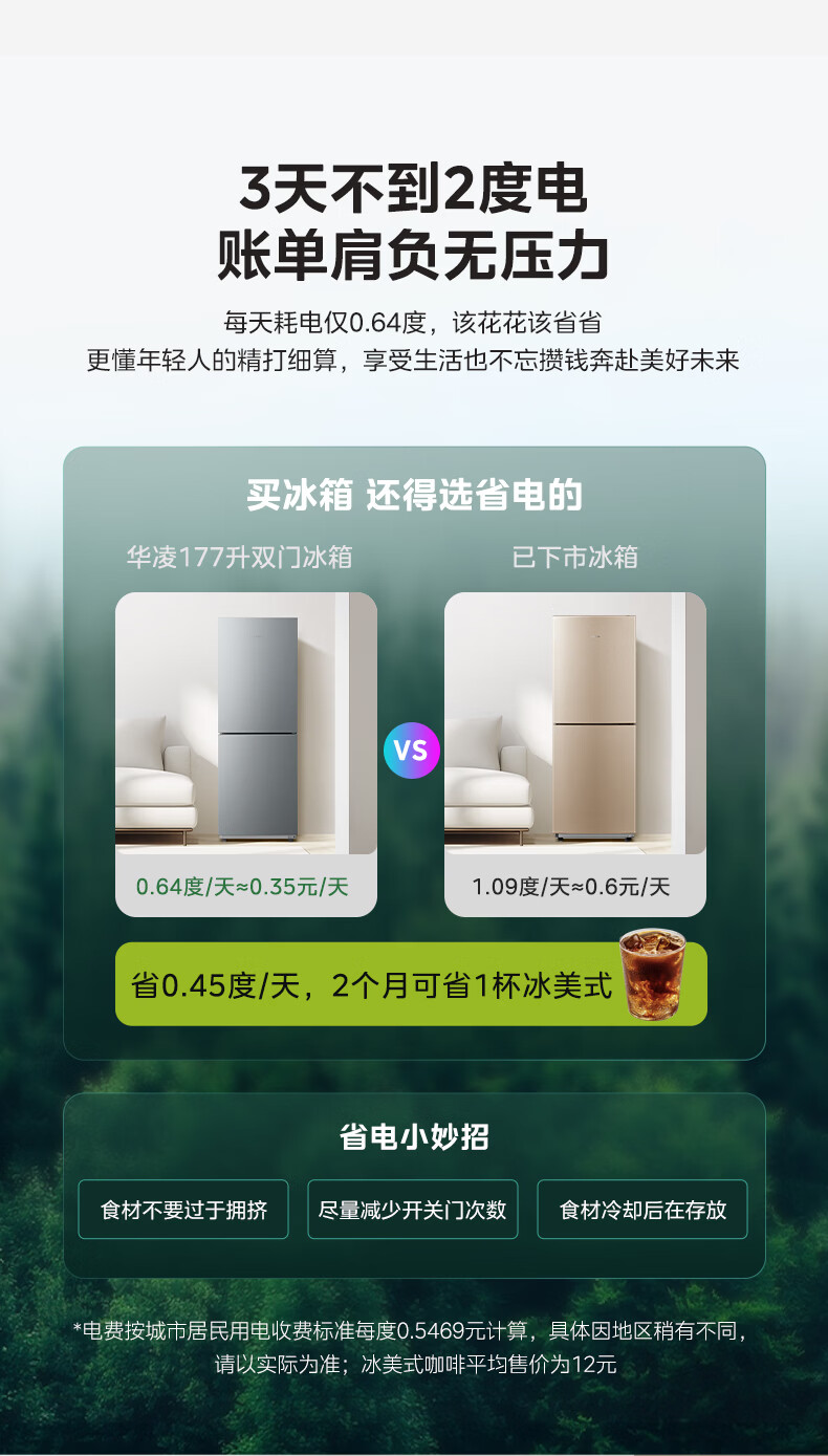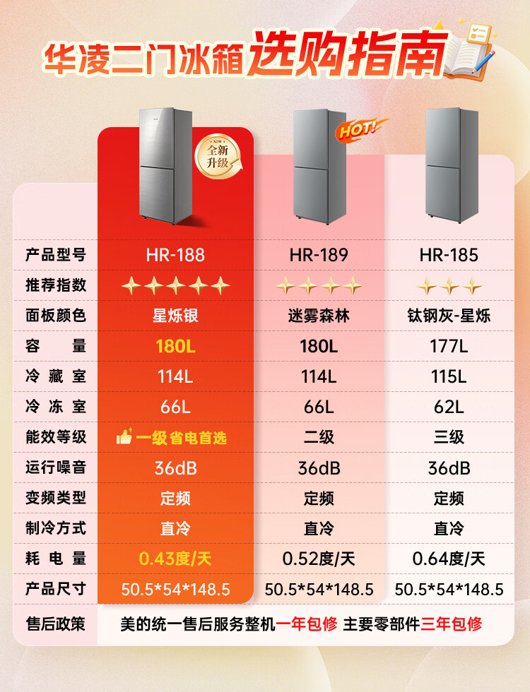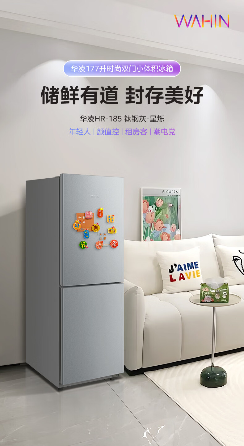 华凌177L美的冰箱出品两门双开门小户型电冰箱低音节能省电家用宿舍出租房可冷藏冷冻不占地HR-185