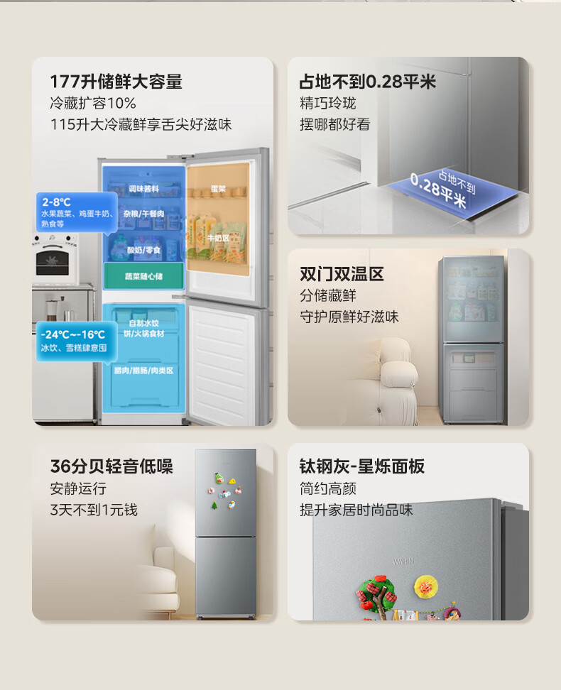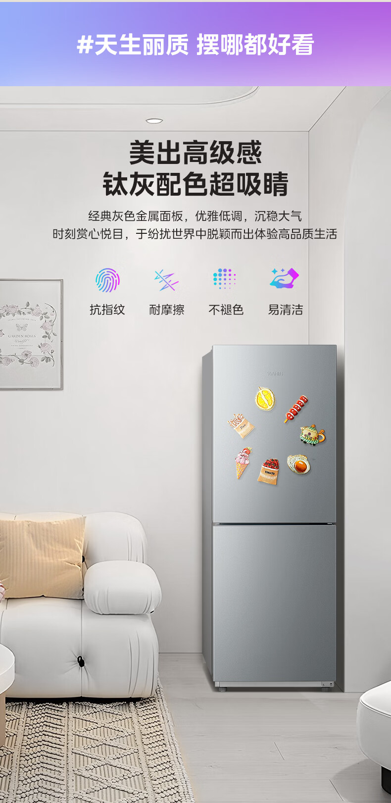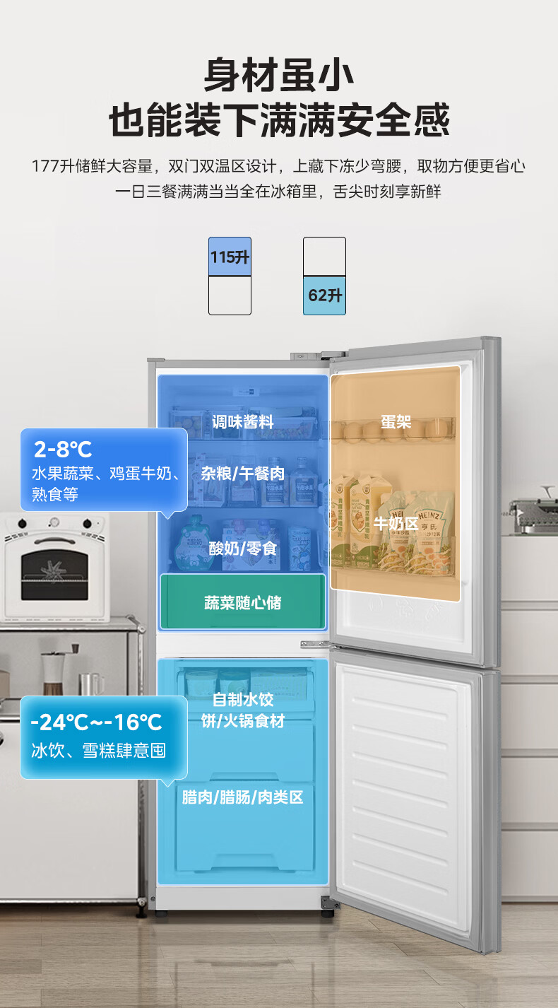 华凌177L美的冰箱出品两门双开门小户型电冰箱低音节能省电家用宿舍出租房可冷藏冷冻不占地HR-185