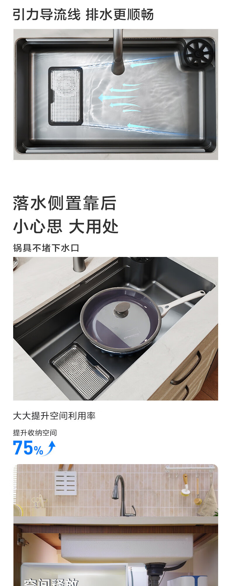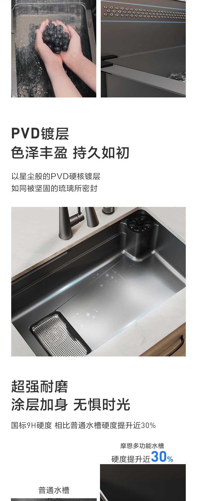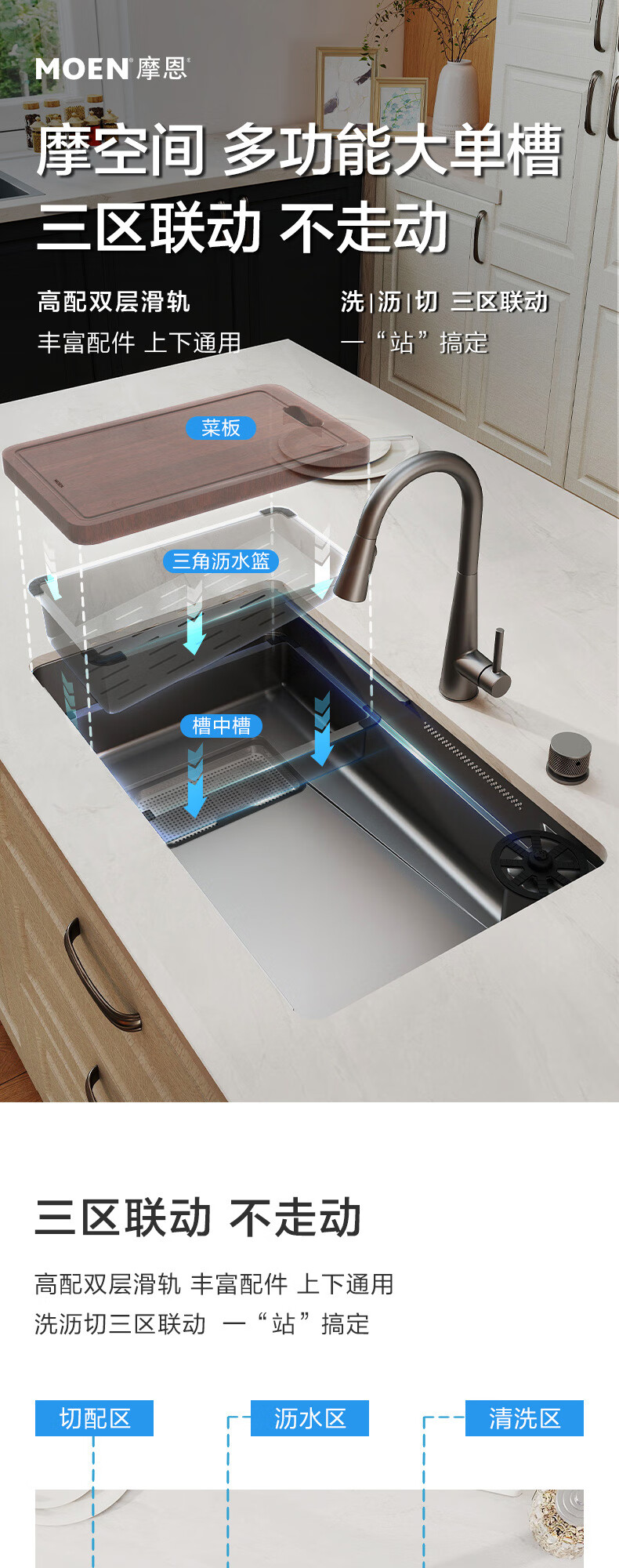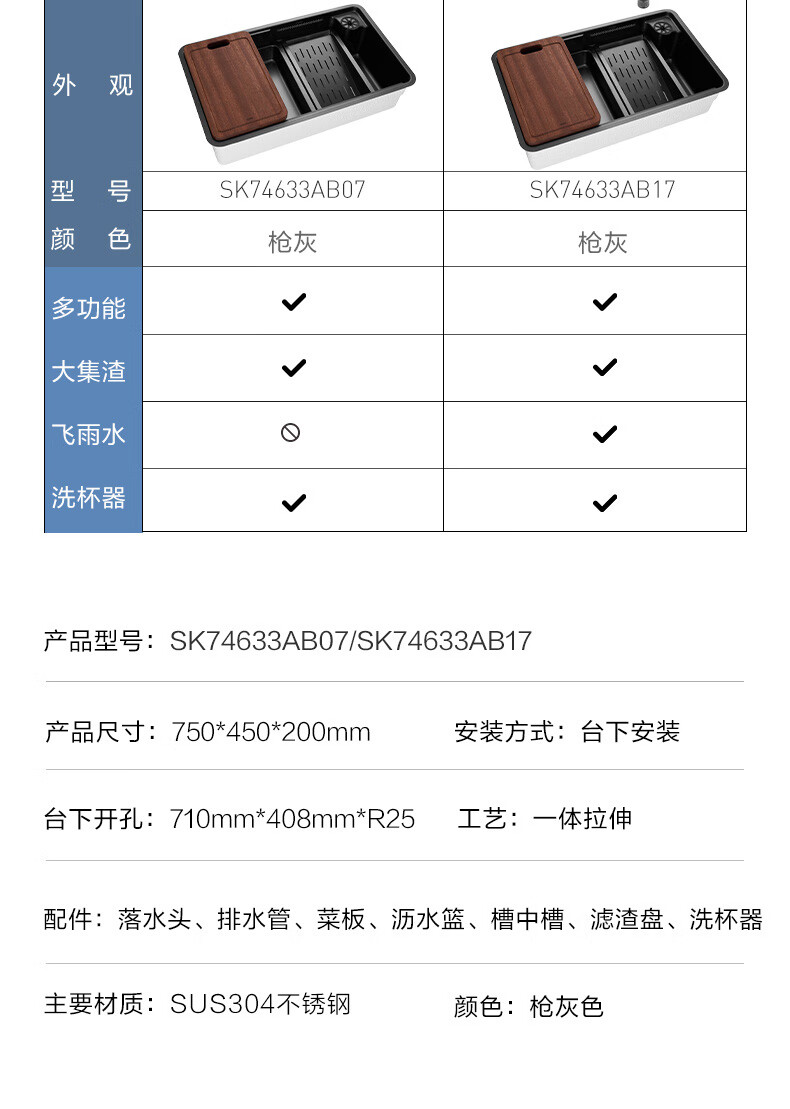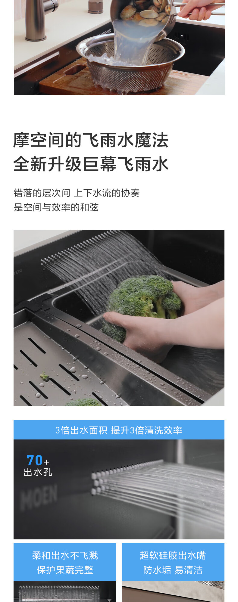 摩恩(MOEN)【迷住专属】新品枪灰色多功能飞雨水复式水槽套装大单槽 750多功能槽飞雨水AB17水光能枪灰色龙头