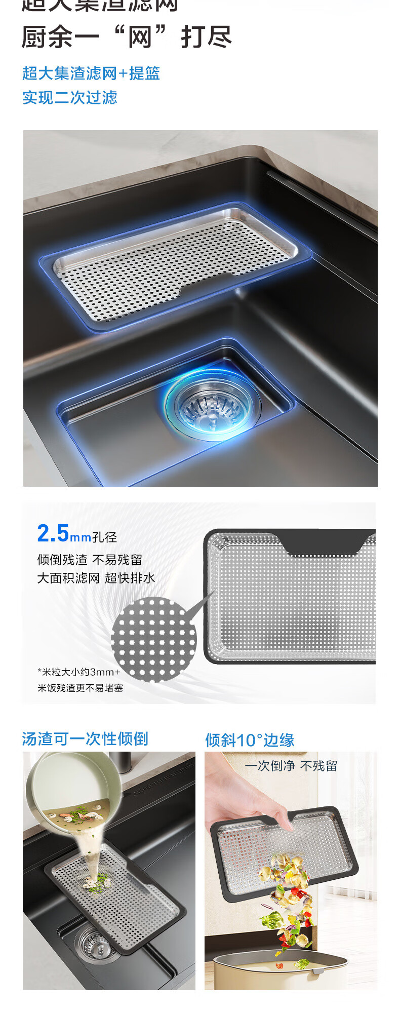 苏泊尔厨房SUS304不锈钢水槽加厚大单槽小米粒压纹防刮洗菜盆台上台下盆 304拉丝米粒压纹手工槽套装|60*45CM+冷热龙头