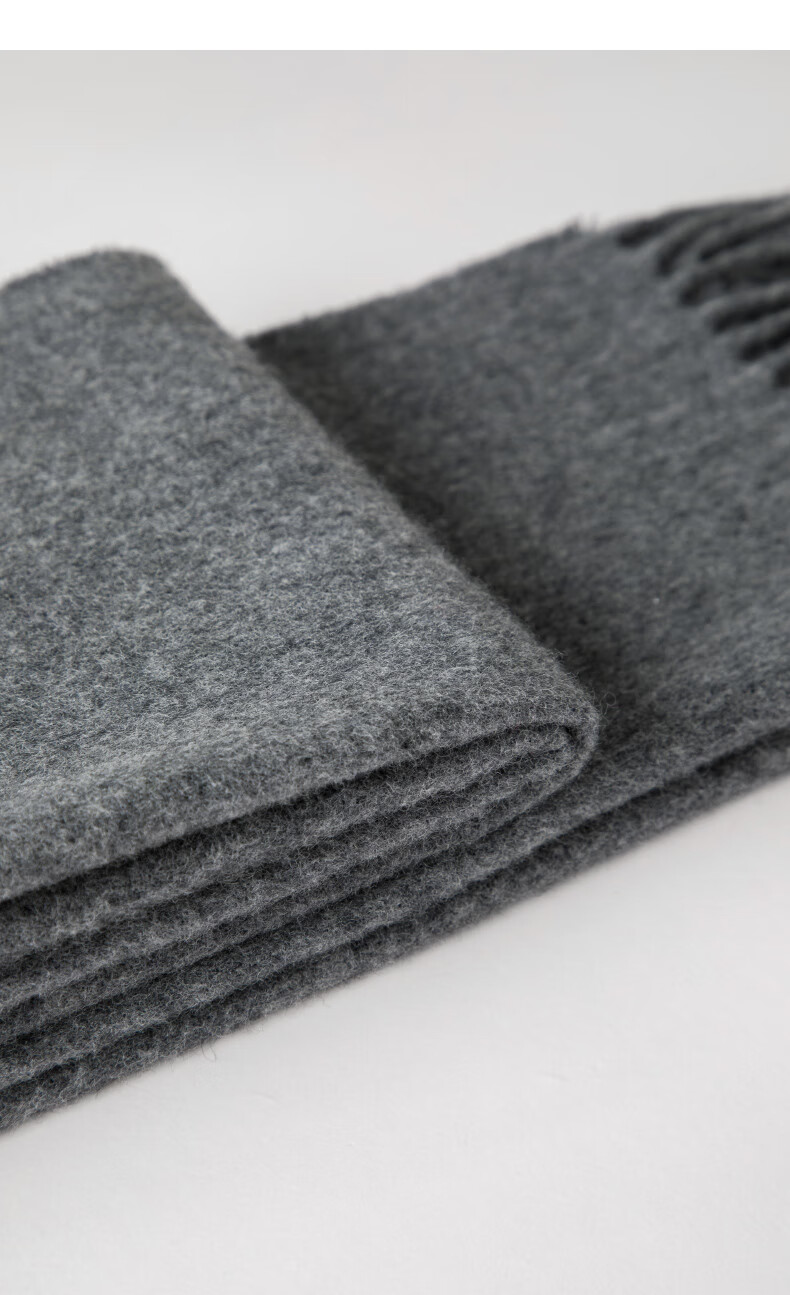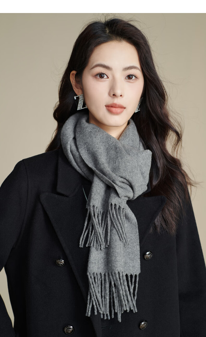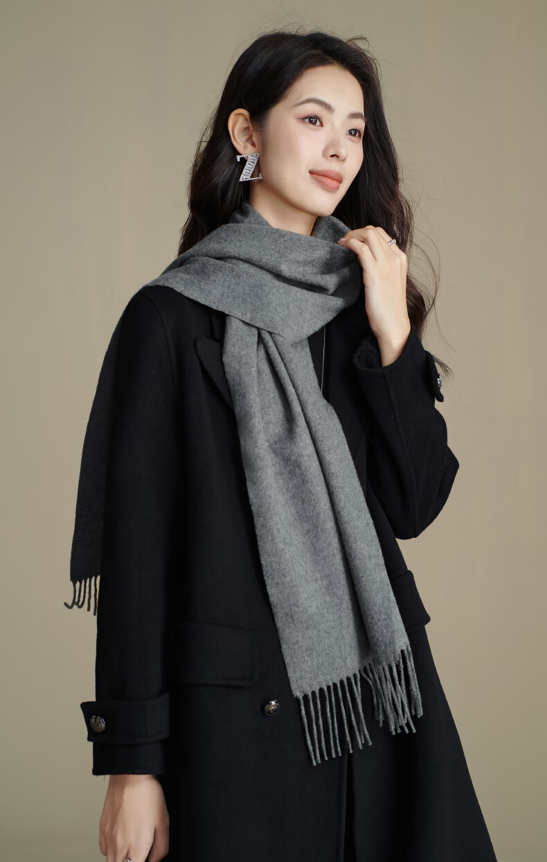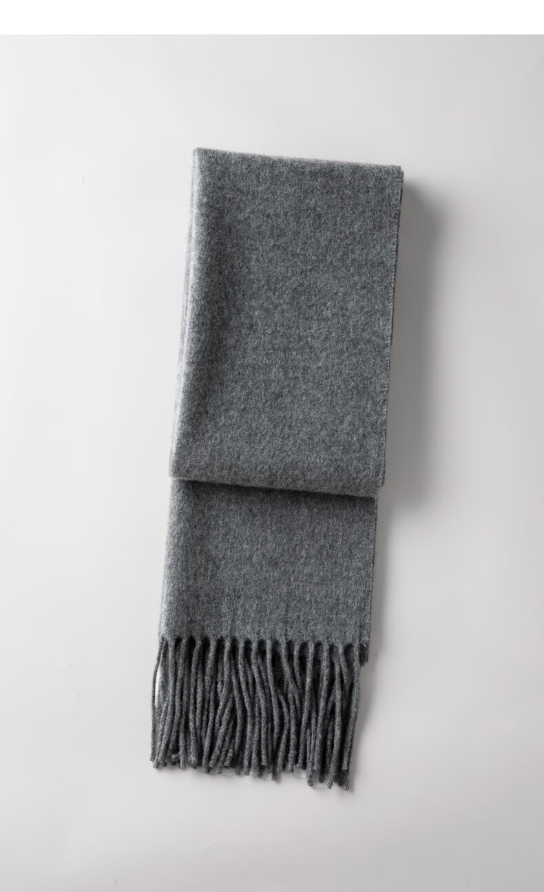 晚白【90绵羊毛+10骆驼绒】高级感经典格雷灰百搭含流苏气质围巾 云烟灰 180cm*30cm