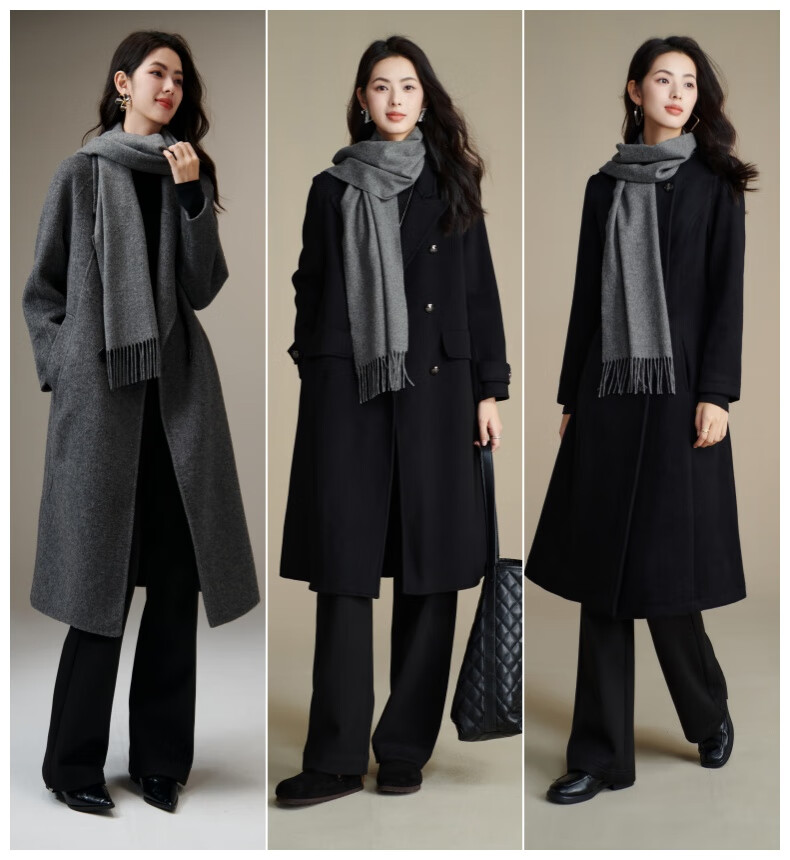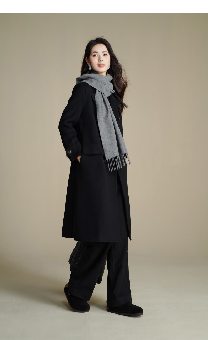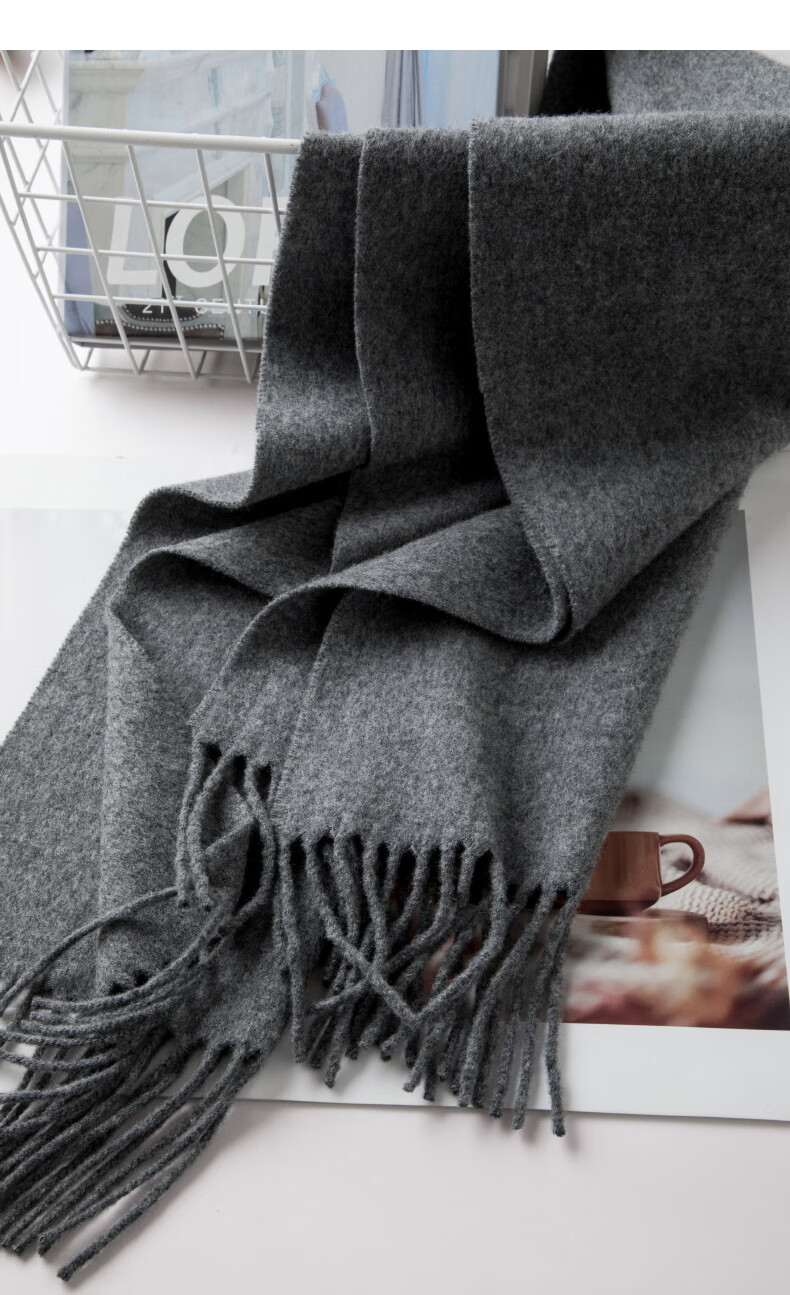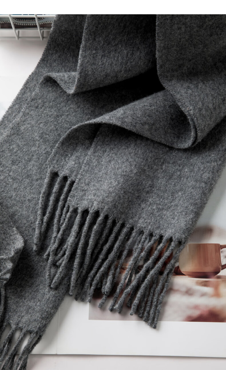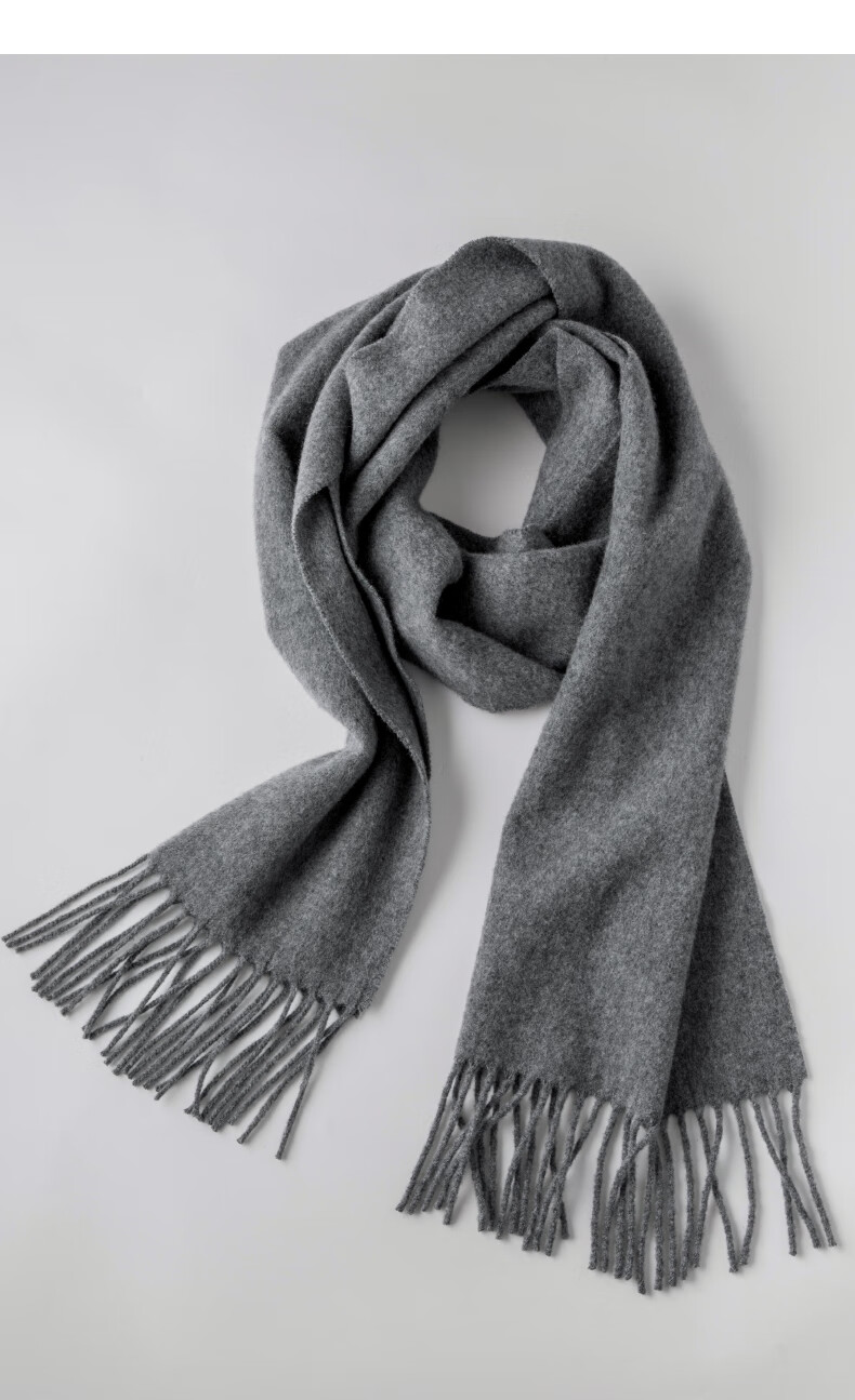 晚白【90绵羊毛+10骆驼绒】高级感经典格雷灰百搭含流苏气质围巾 云烟灰 180cm*30cm