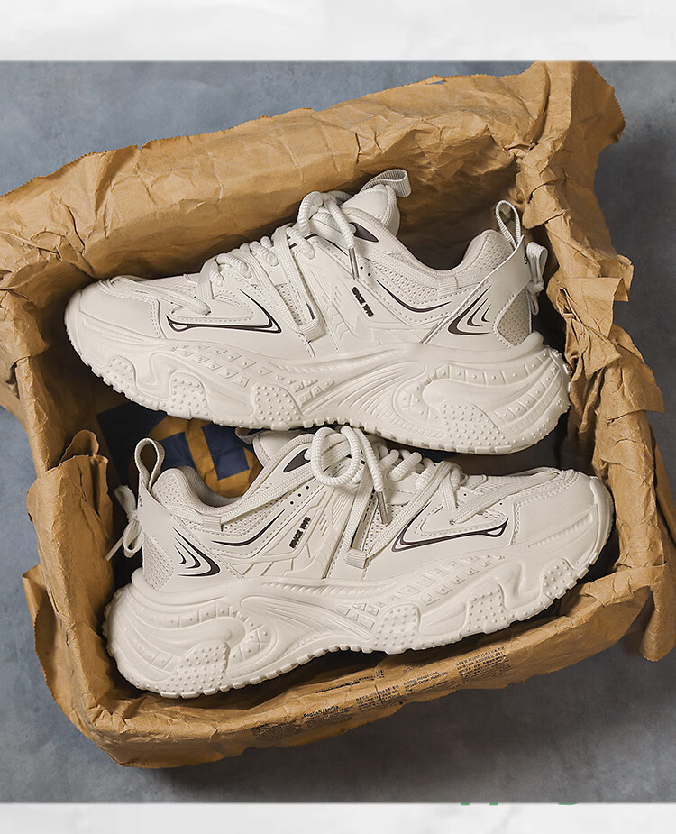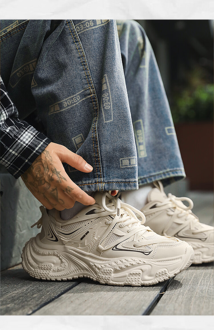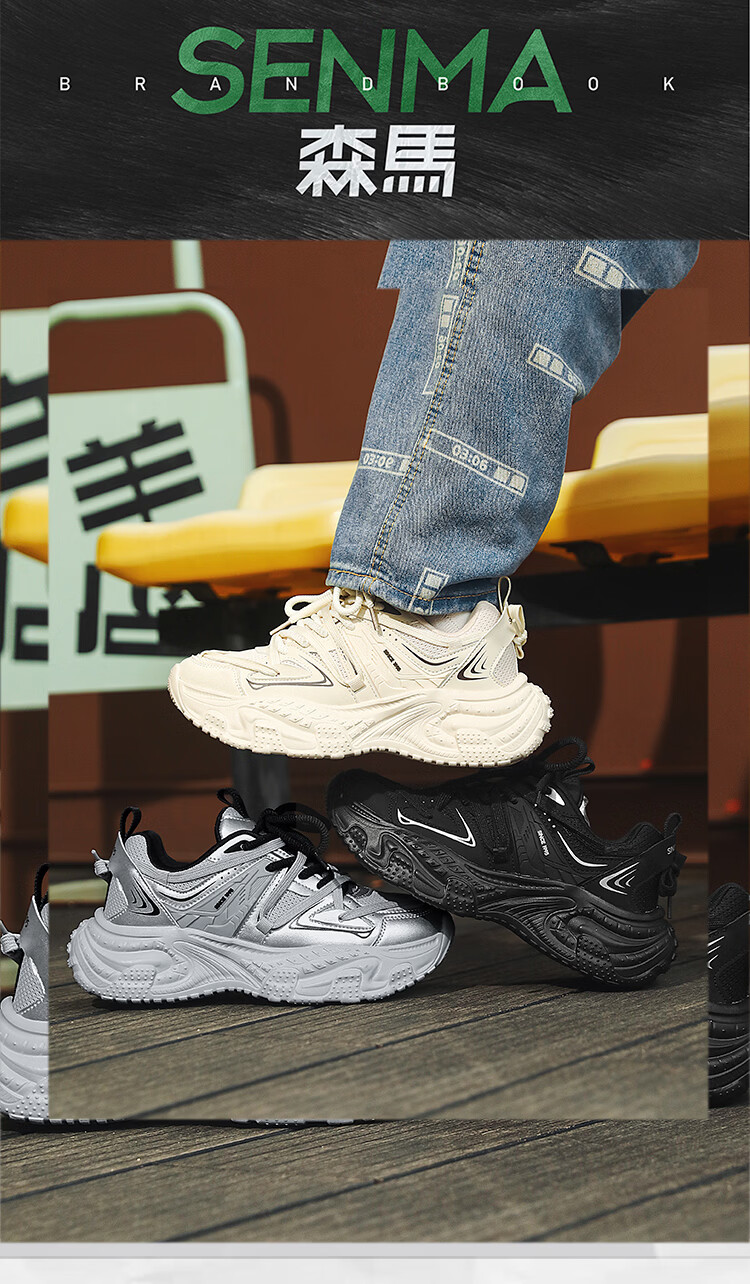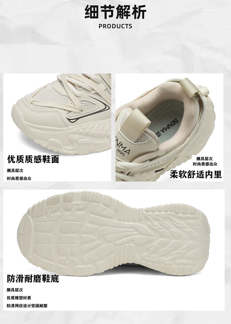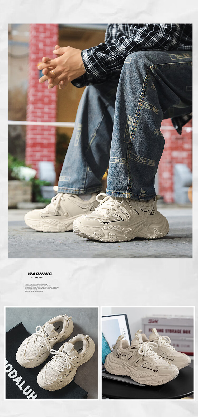 森馬男鞋2026新款春季小众原创厚底防滑运动鞋男士户外耐磨休闲老爹鞋 米色【基础款】 39 标准码数/现货秒发