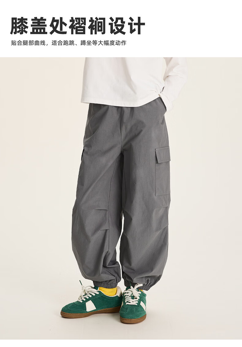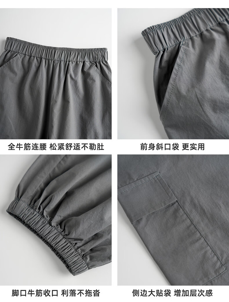 棉叔叔【2.3收脚口工装裤】男童春季新品牛筋腰侧贴袋褶裥束脚裤2026 铅灰色 120 120