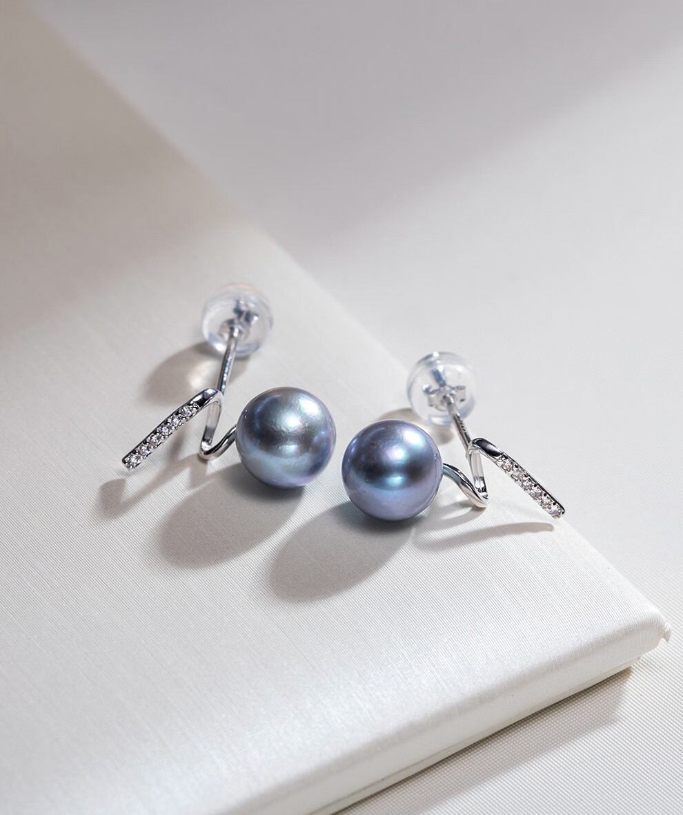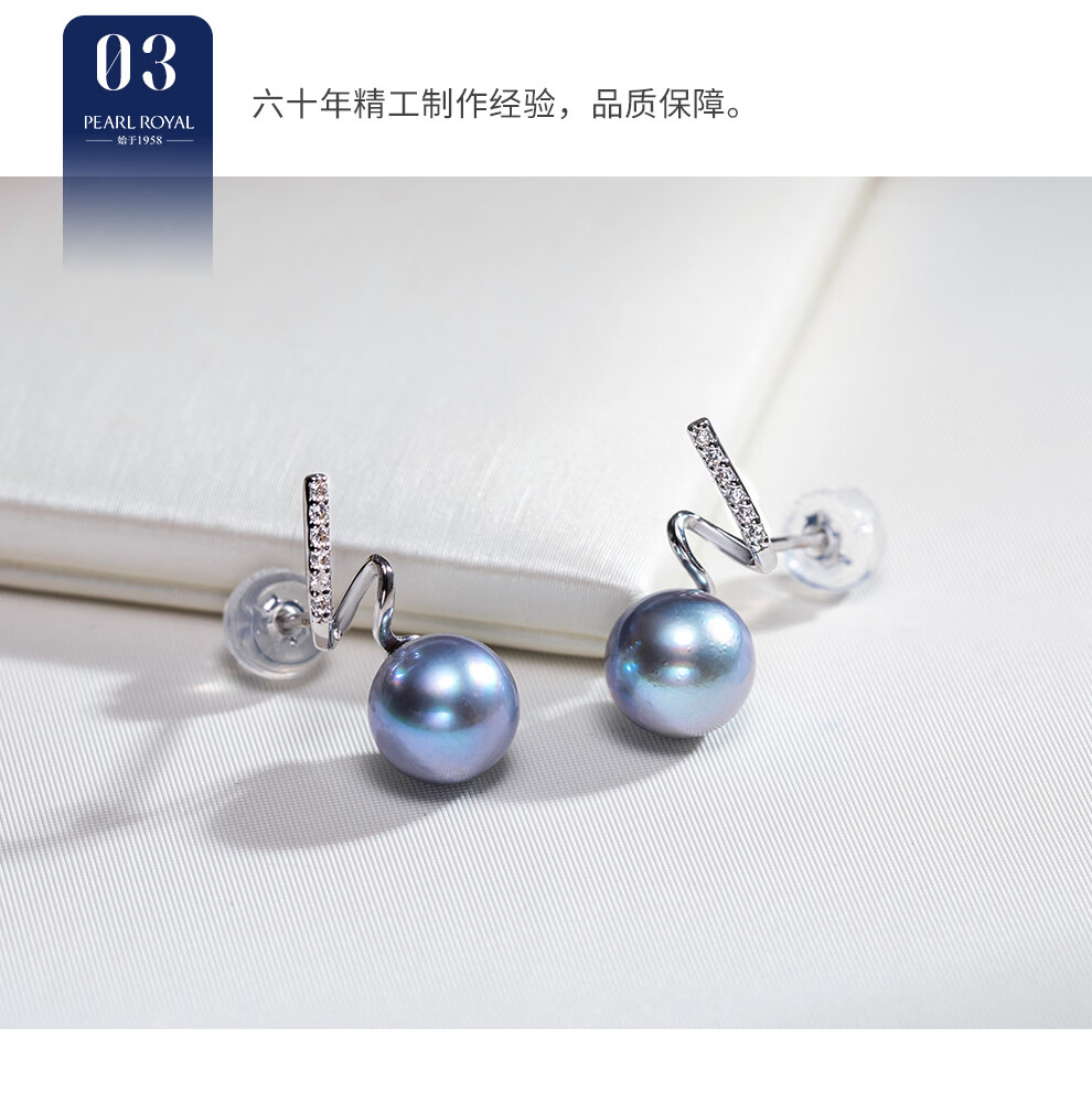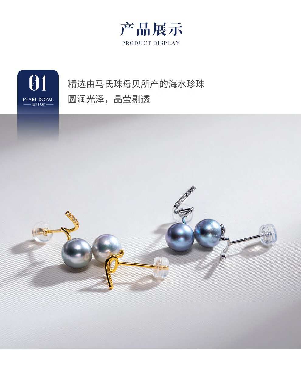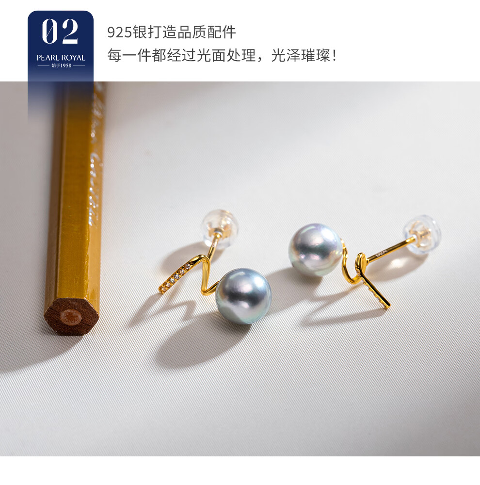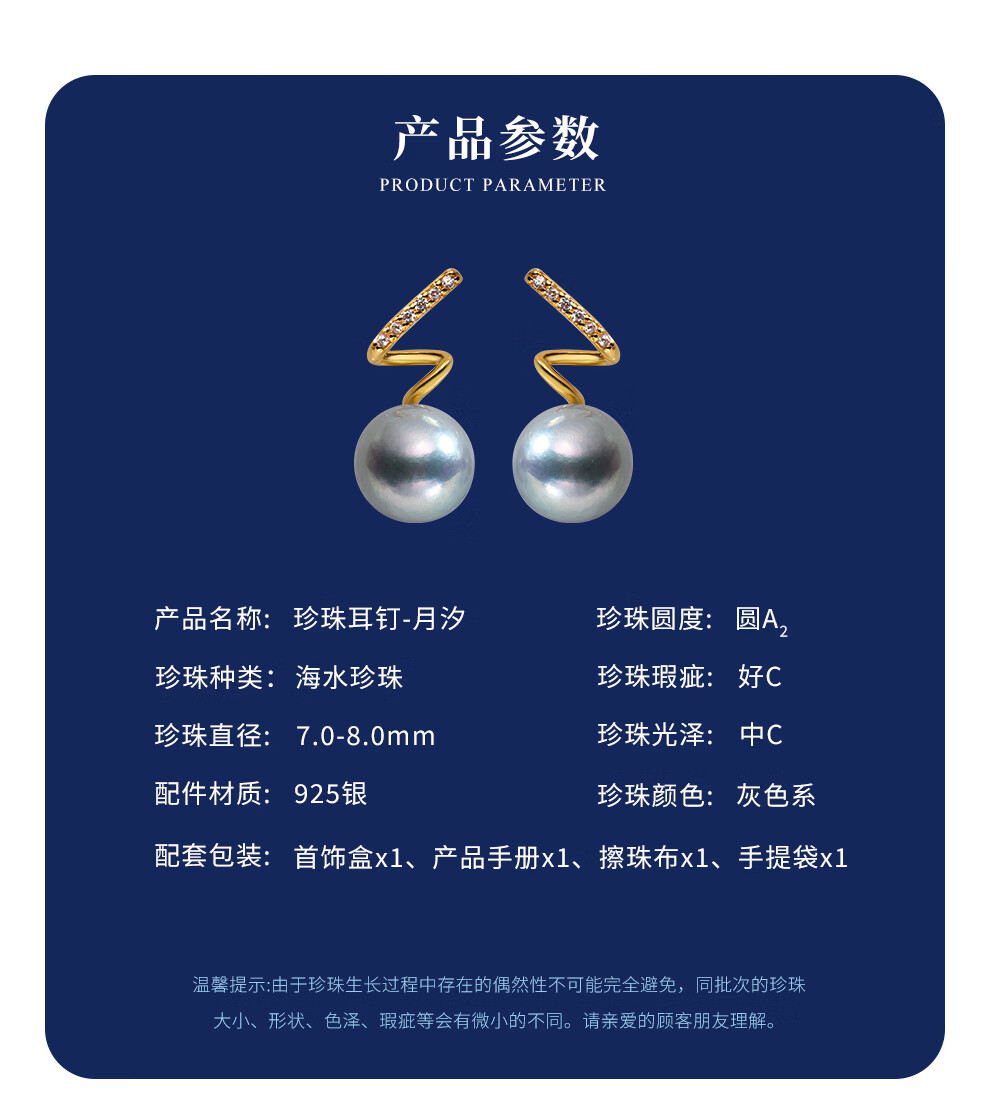 南珠宫月汐925银海水珍珠耳环镜面强光圆形真多麻耳钉轻奢送女友 金色款 7.0-8.0mm