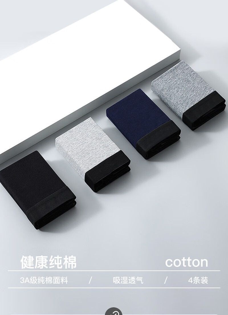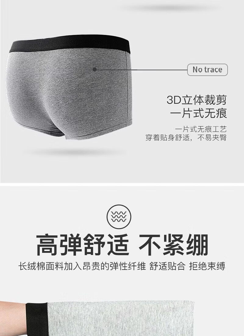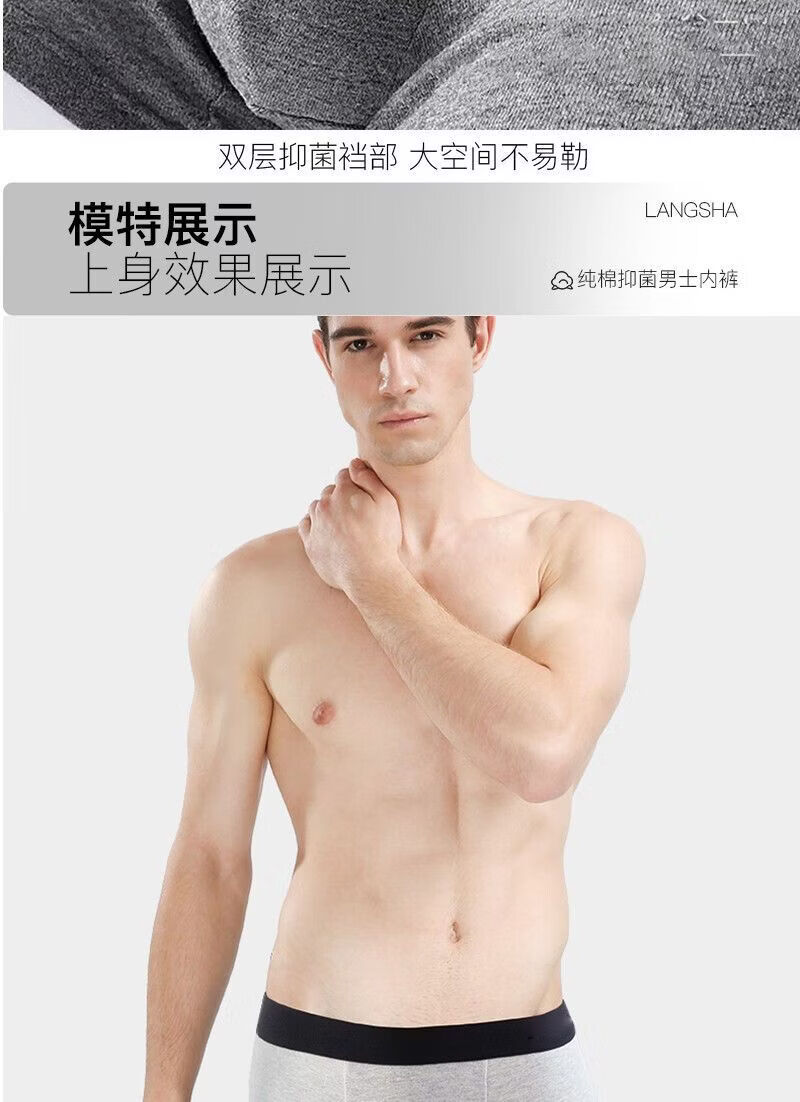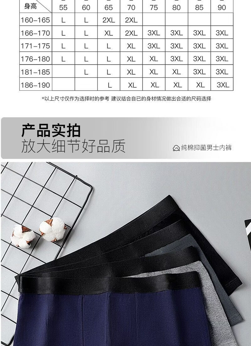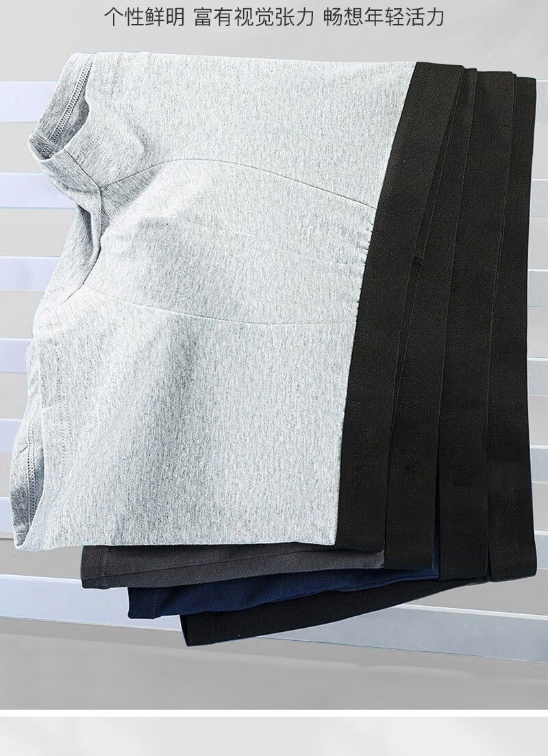 宜而爽男士纯棉内裤抗菌短裤纯色宽松大码四角裤冰丝无痕式平角裤透气 (新疆长绒棉纯棉)黑色+浅灰+宝蓝+深灰 4条 5XL 【建议180-200斤】